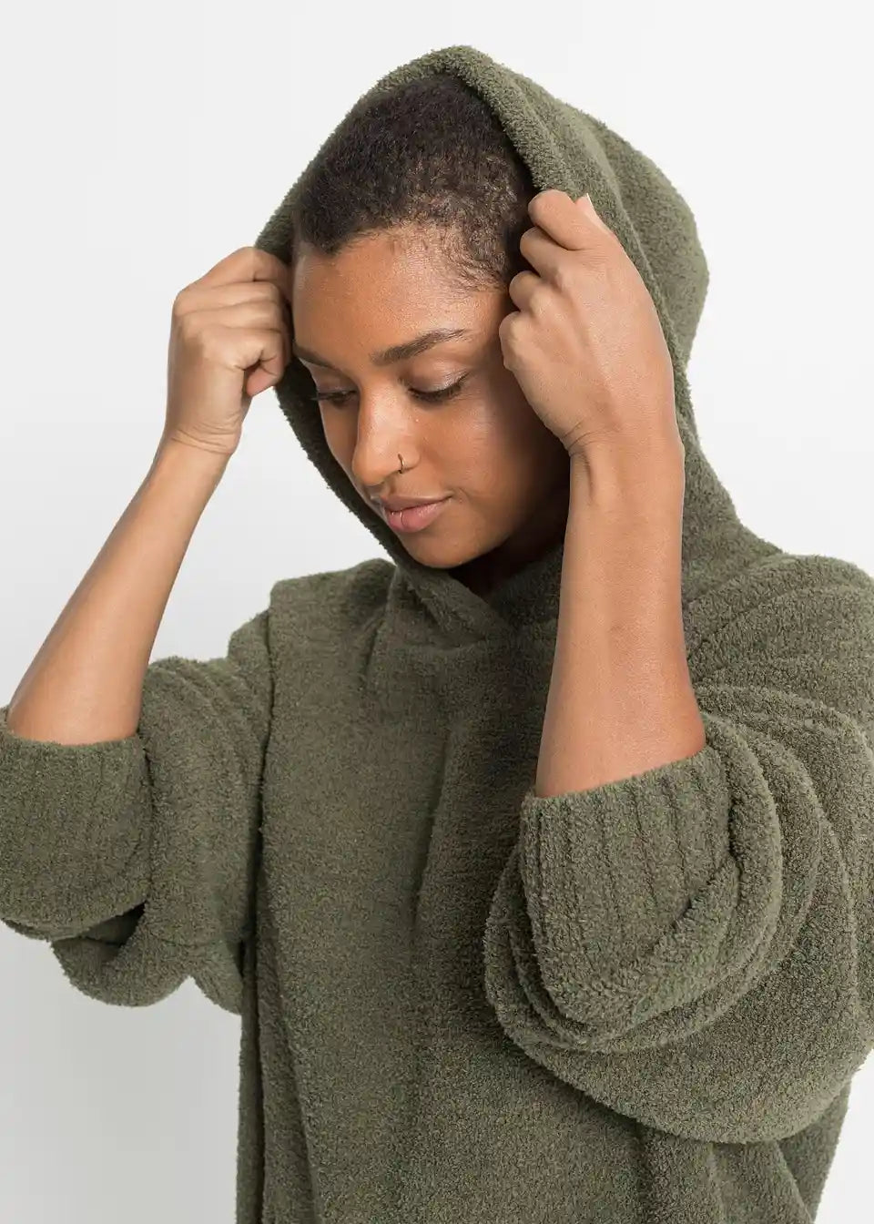 Pulover s kapuco iz mehkega pliša
