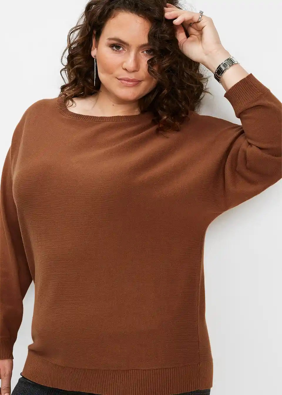Sproščen pulover z netopirskimi rokavi in rebrastimi patenti