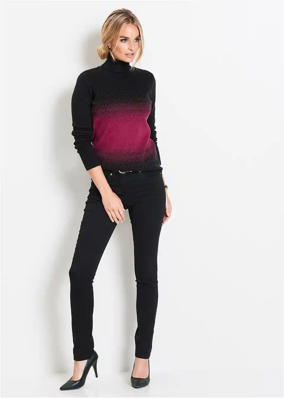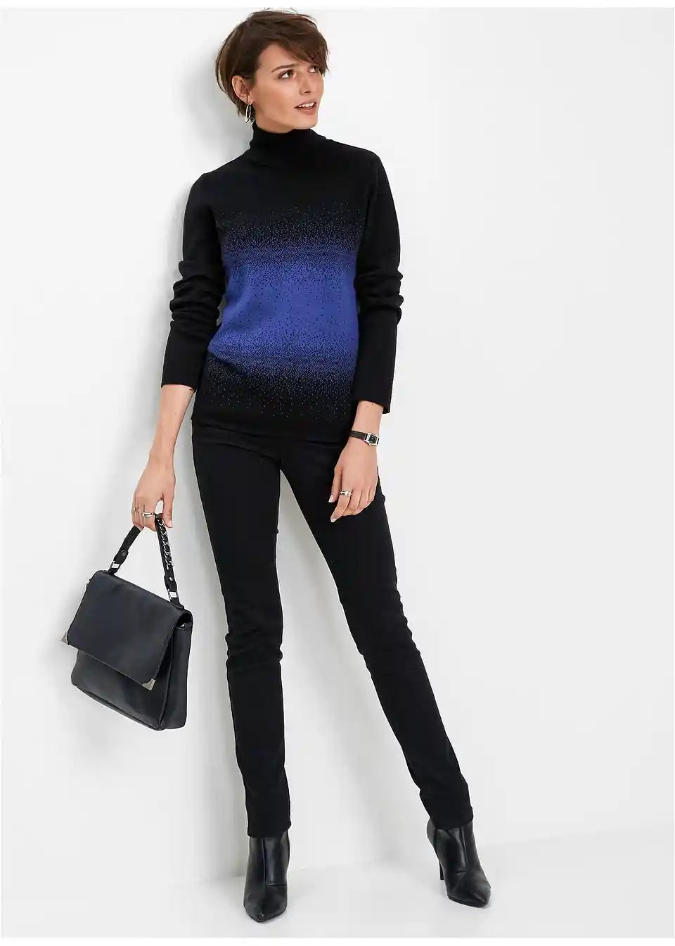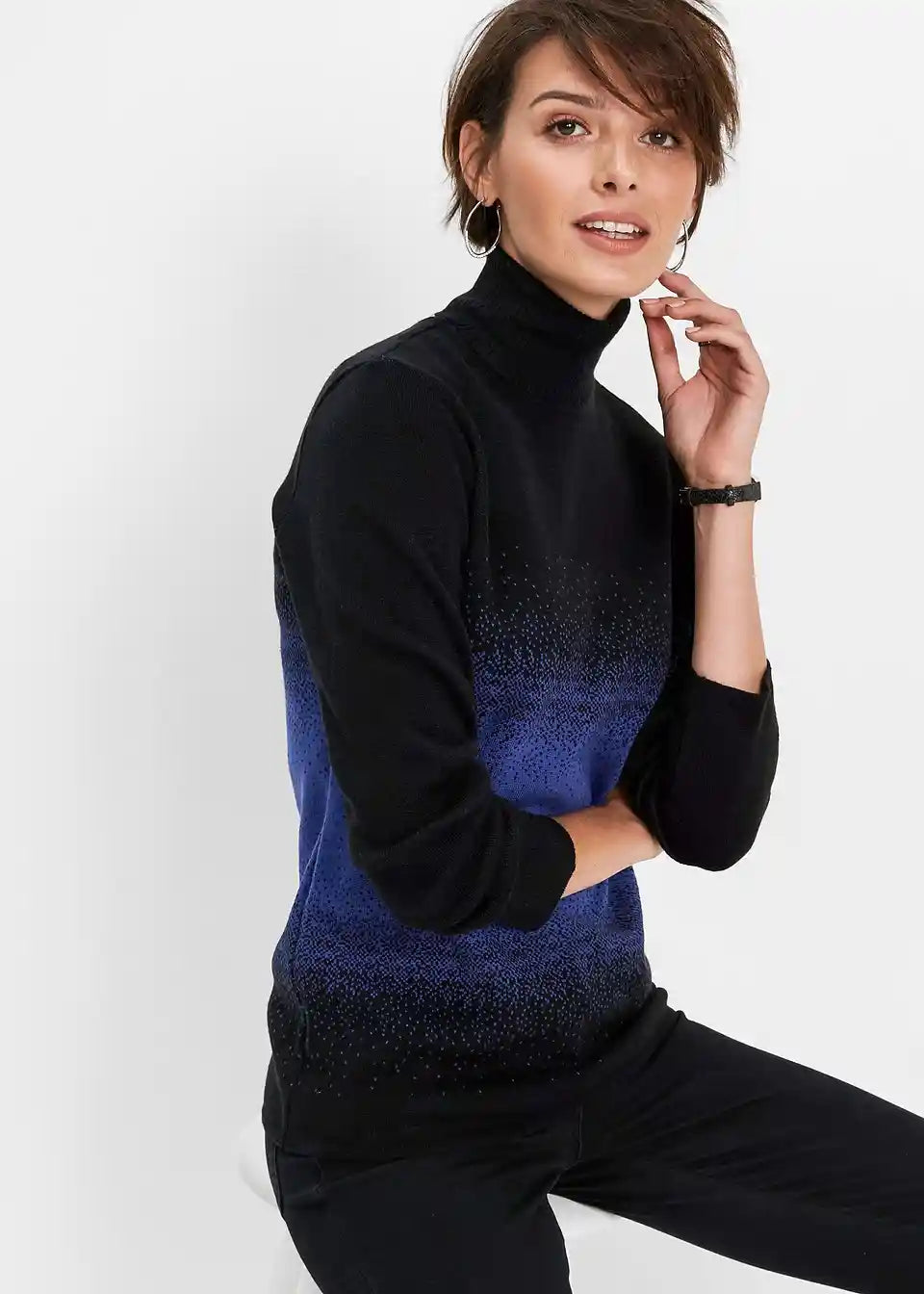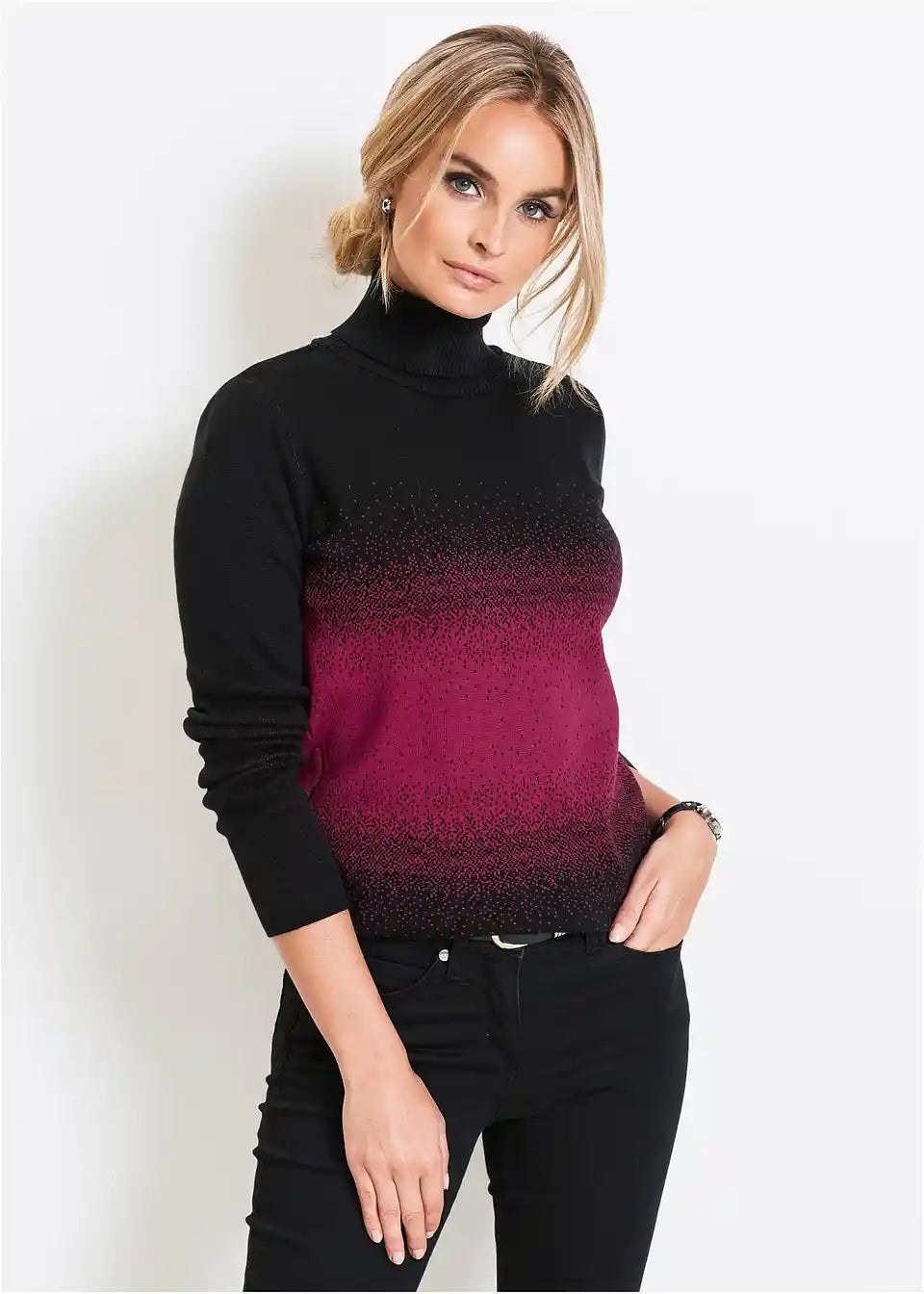 Oprijet pulover z ovratnikom in dolgimi rokavi