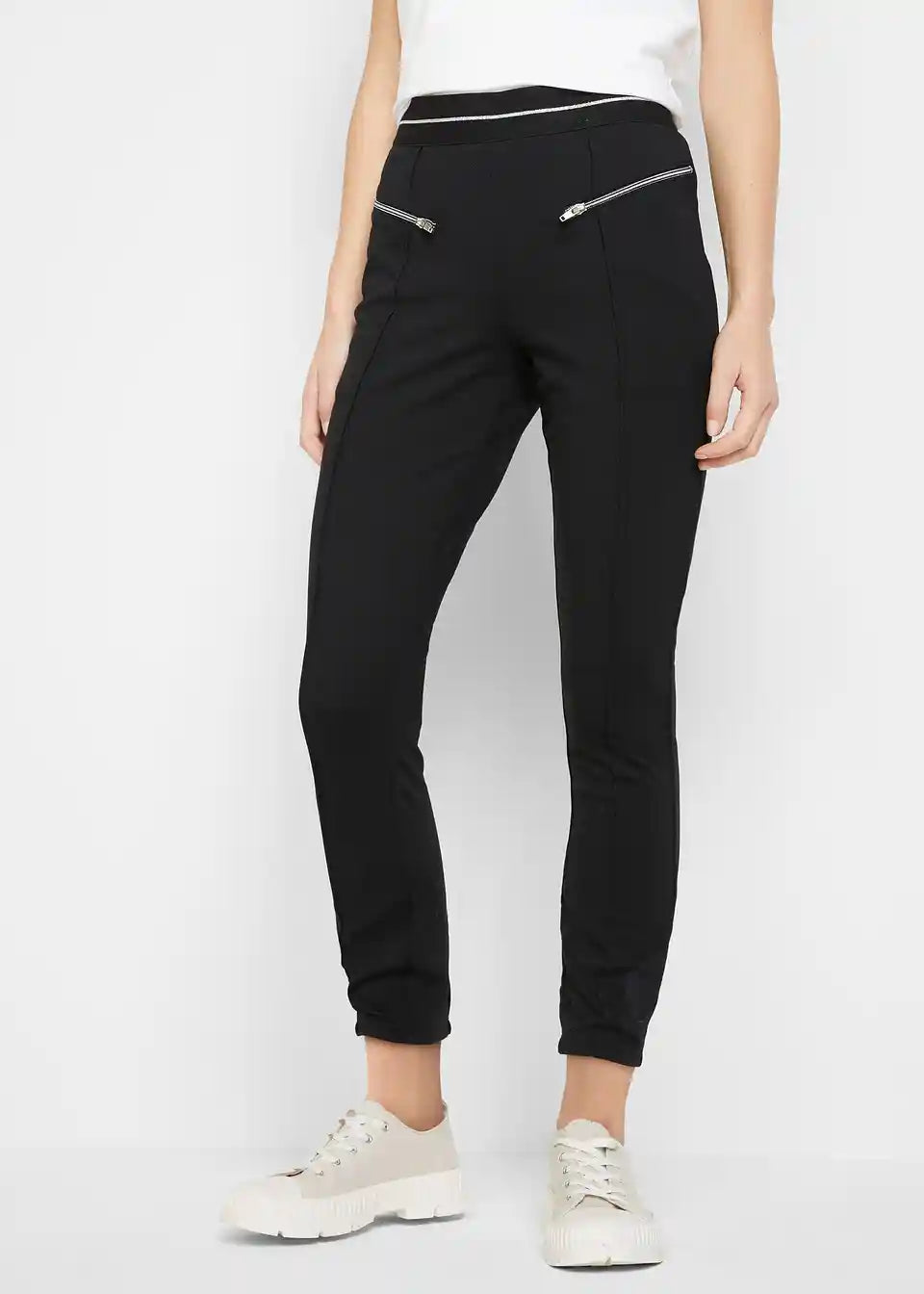 Udobne Punto Di Roma hlačne nogavice z okrasnim bleščečim trakom na pasu