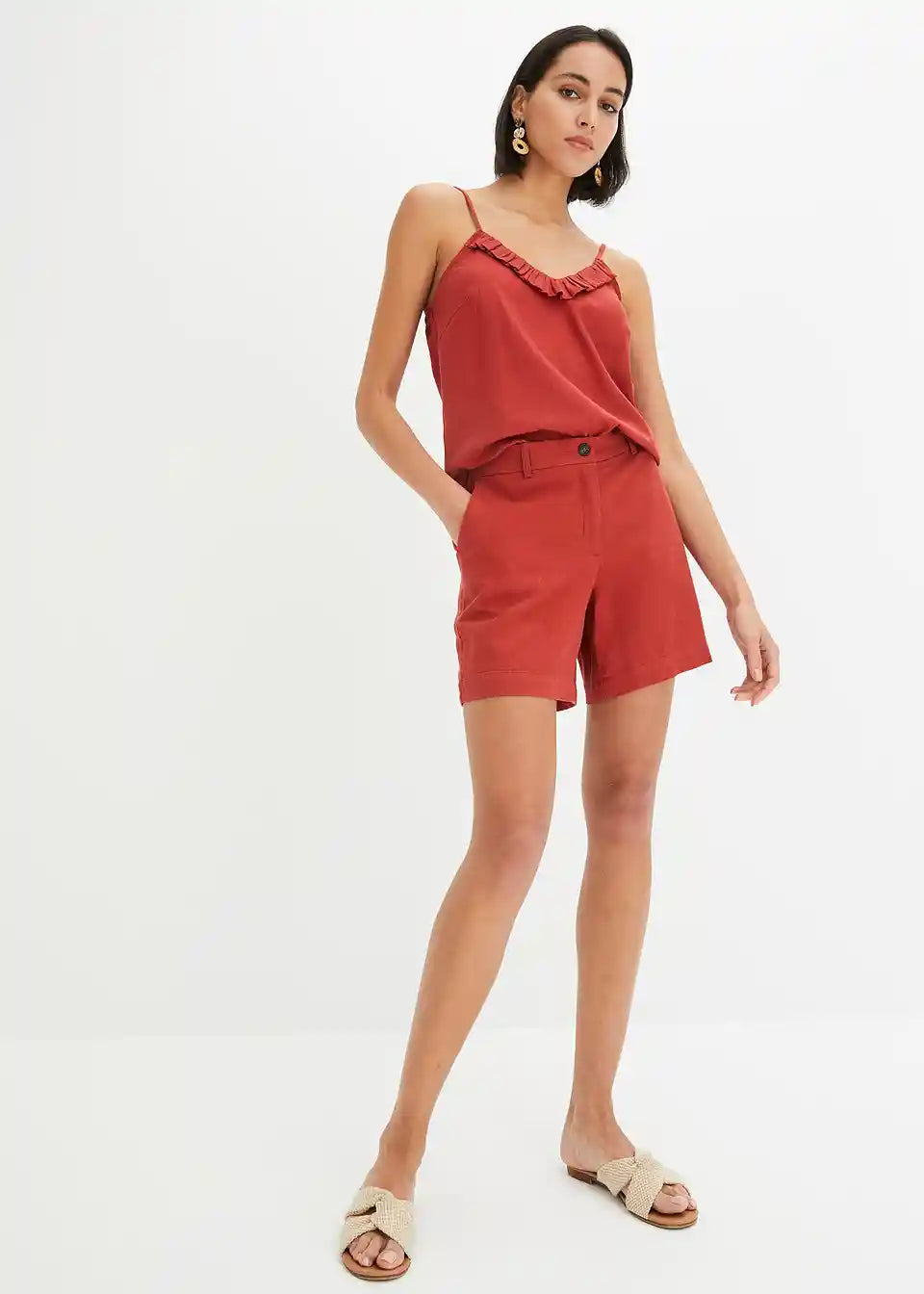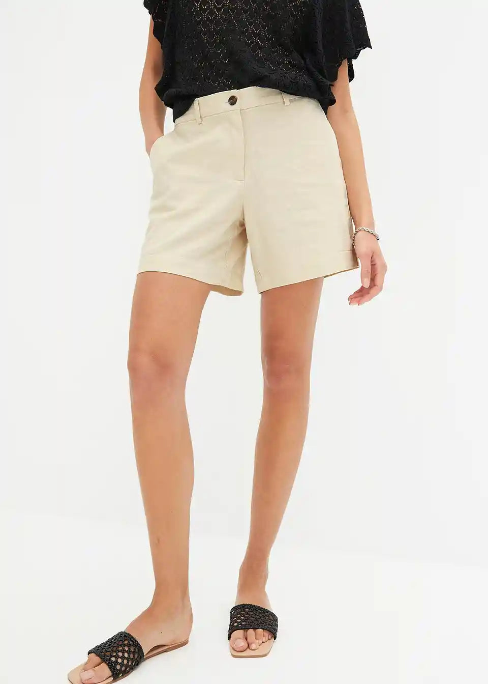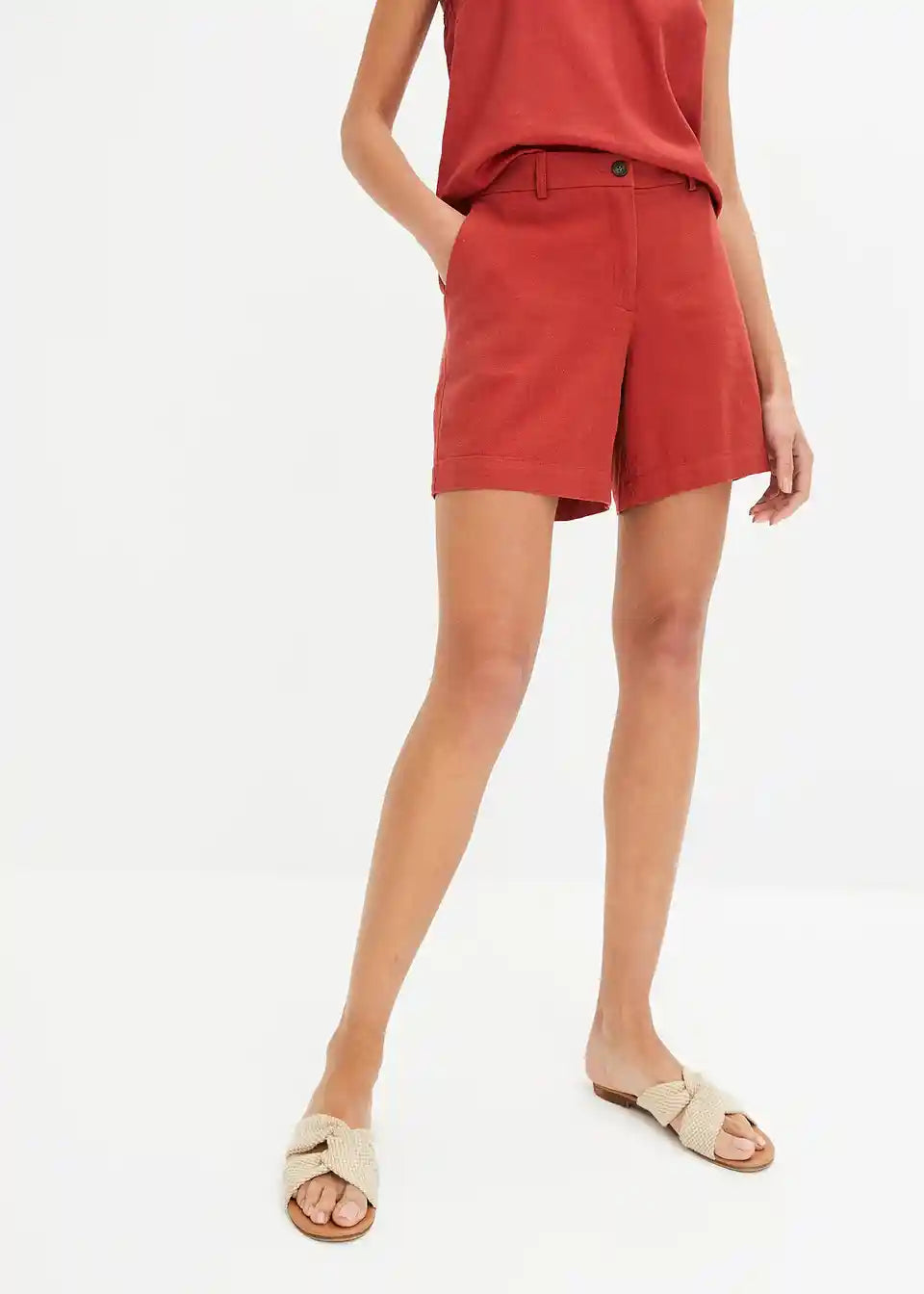 Prilegajoče kratke hlače iz tkanine iz viskoze in lana