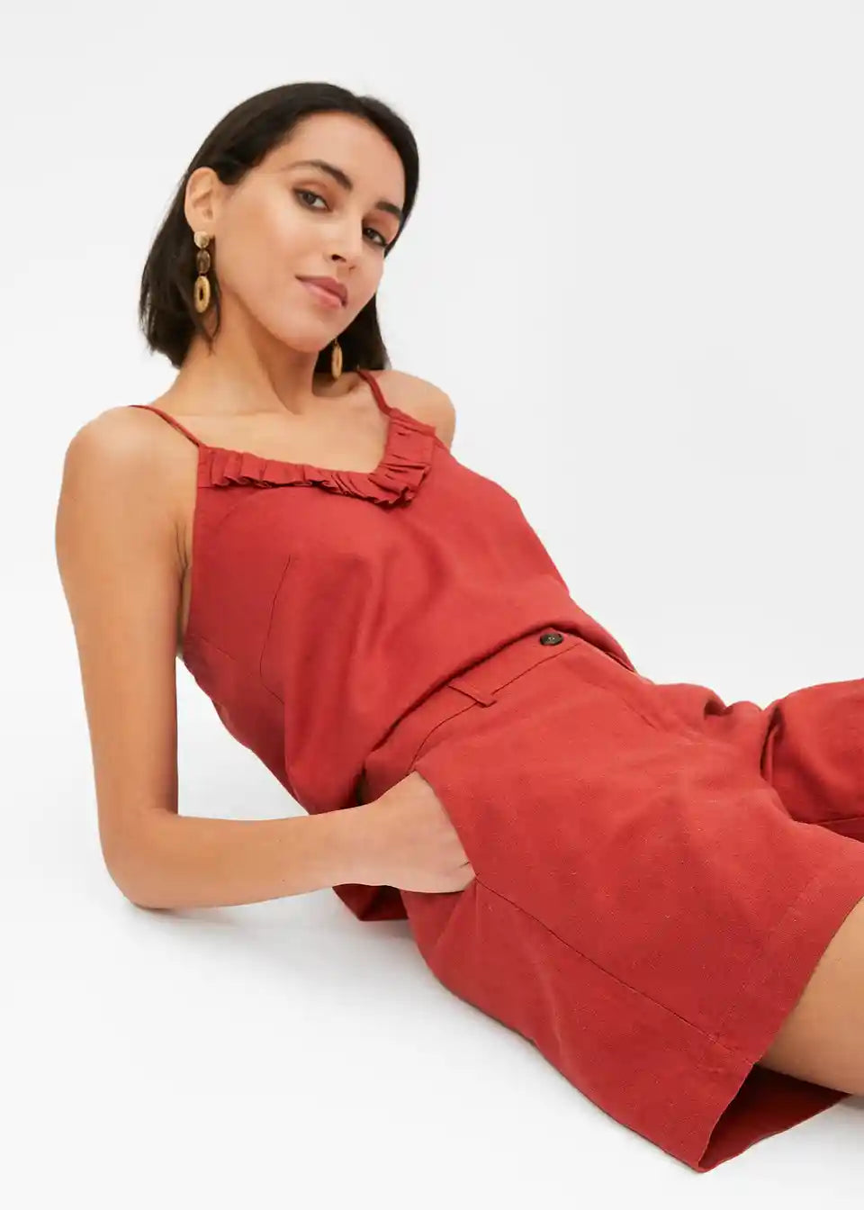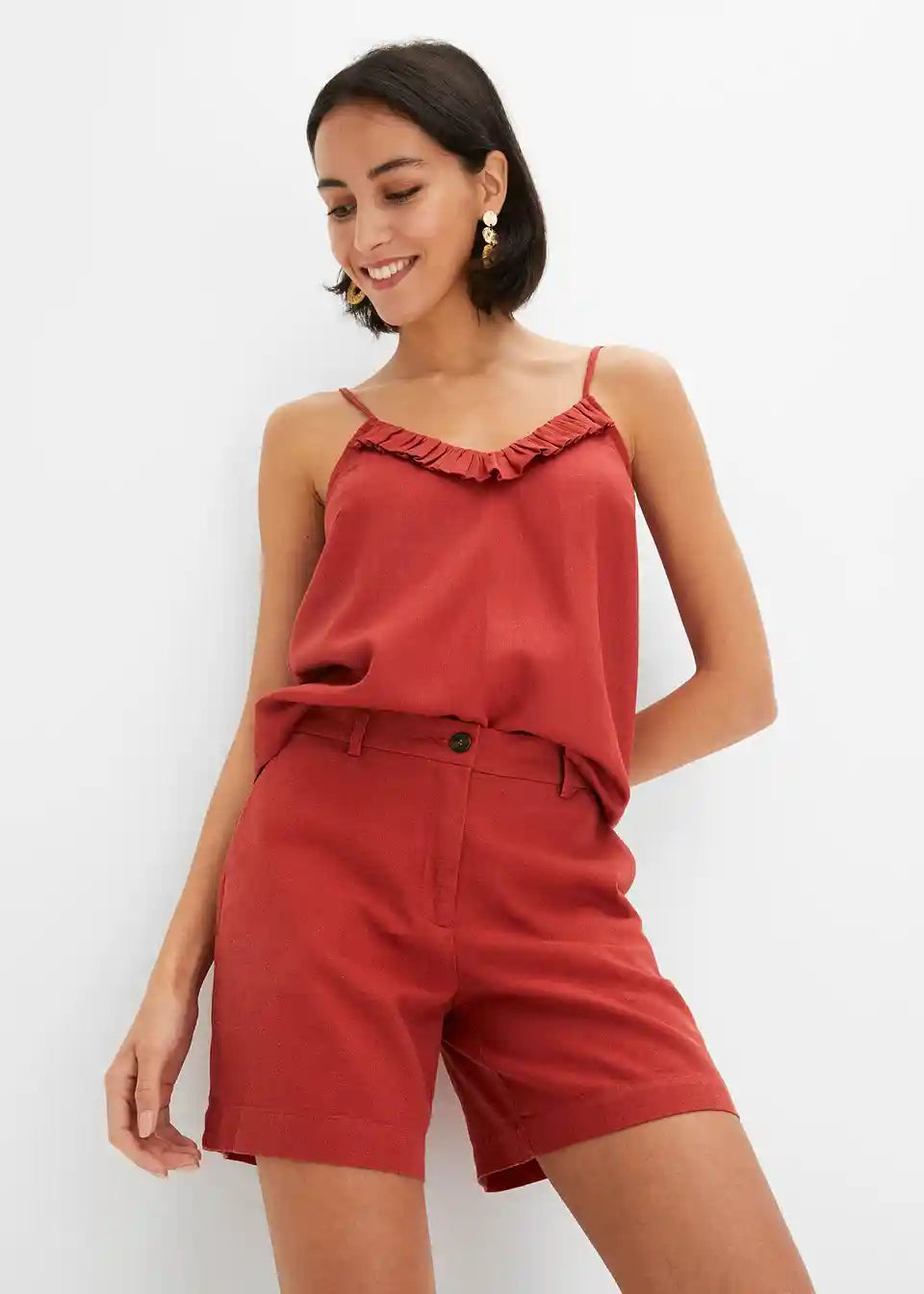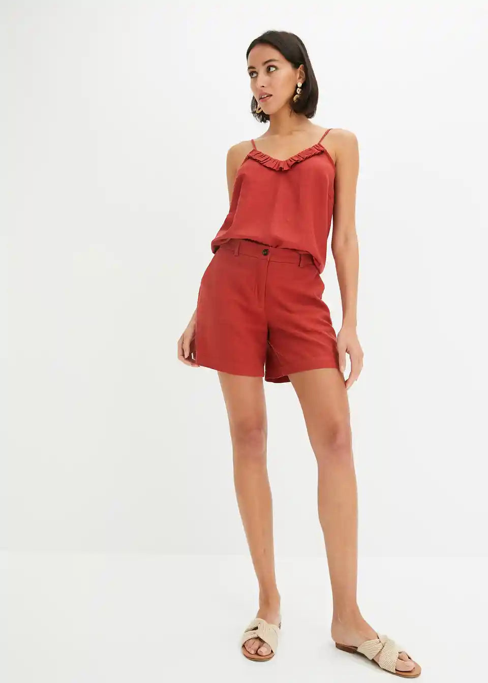 Prilegajoče kratke hlače iz tkanine iz viskoze in lana