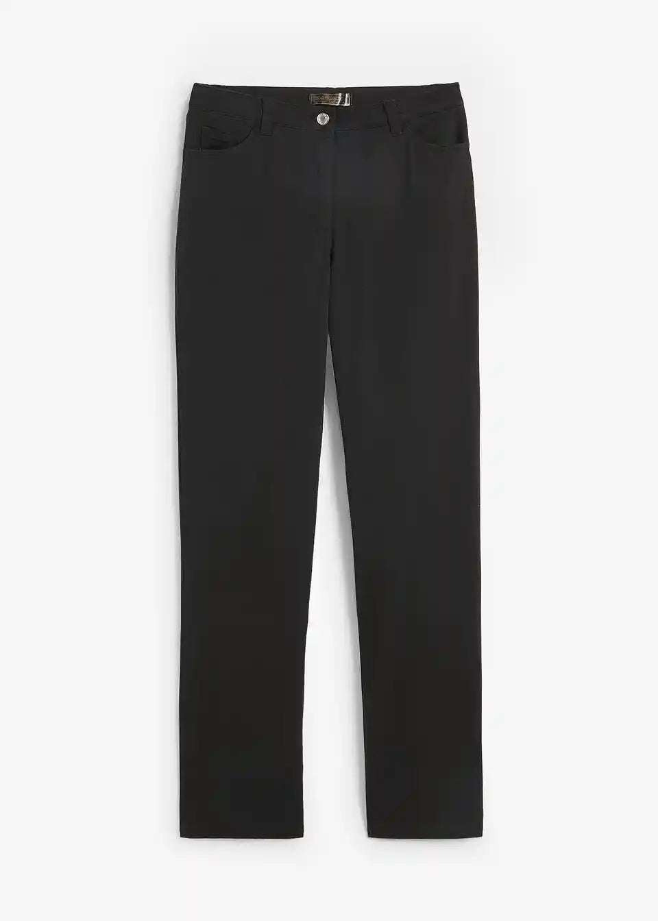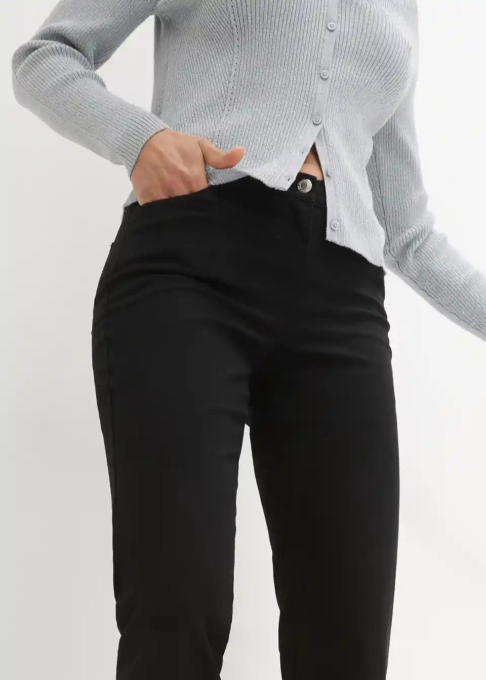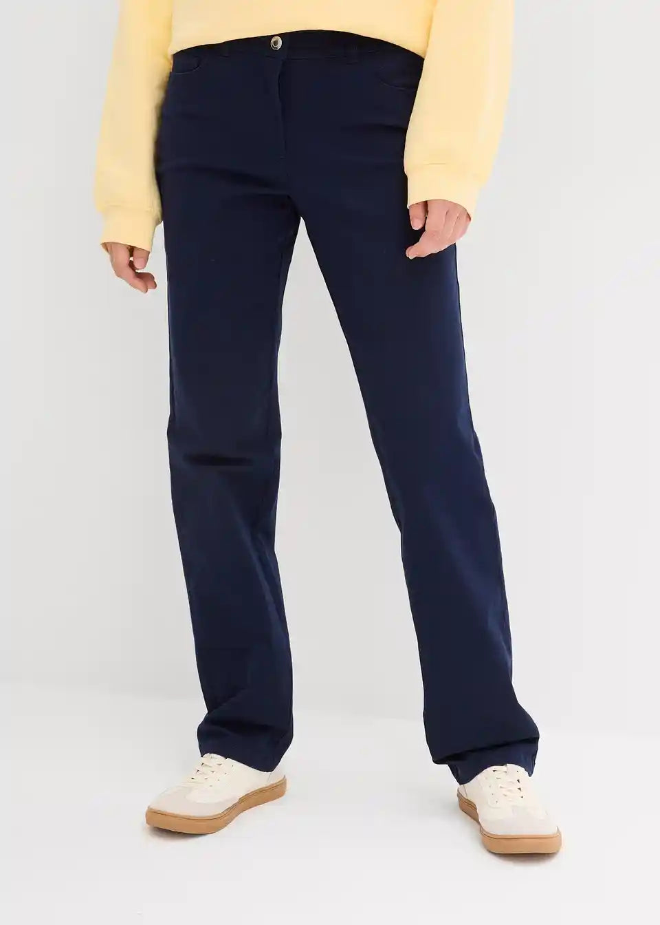 Zaradi vgrajenega elastana in udobnega pasu so raztegljive hlače znamke bpc selection izjemno udobne. Ne glede na to, ali želite eleganten ali ležeren stil, s svojim preprostim dizajnom se hlače v stilu 5-žepov zlahka kombinirajo z različnimi outfiti. Za popolno prileganje so hlače na voljo v dveh dolžinah. Ravno krojene hlačnice in postavi prilegajoči se kroj subtilno poudarijo noge.
