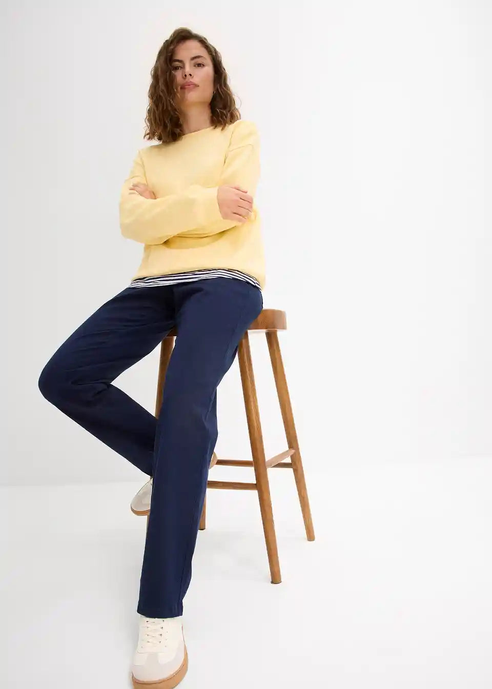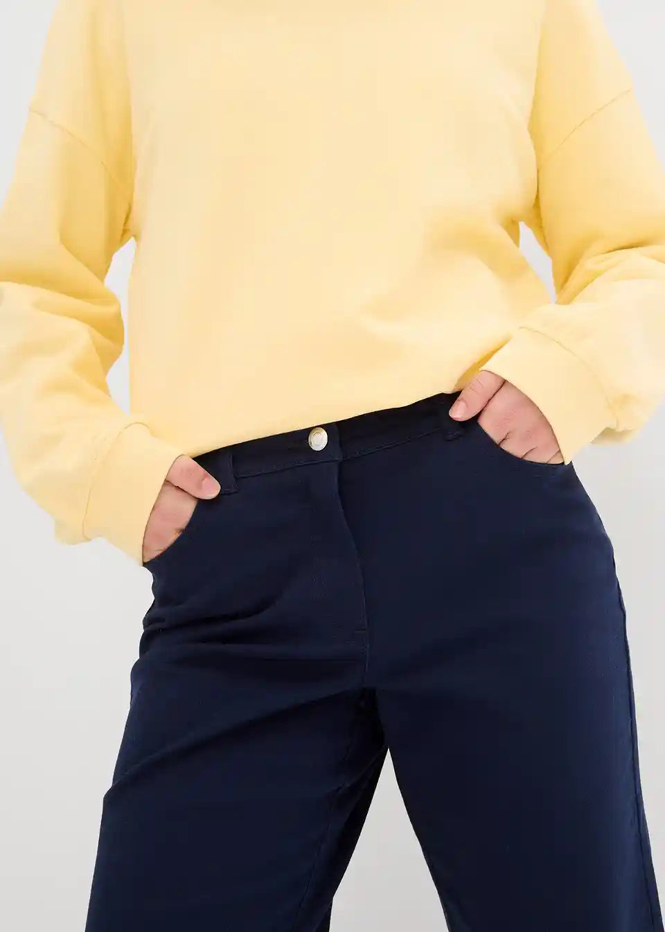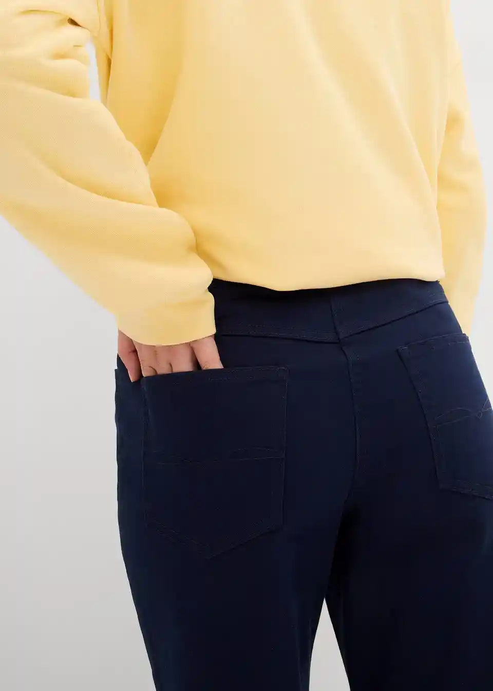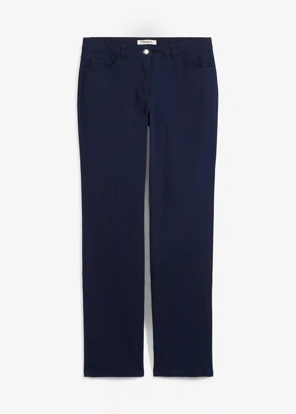 Zaradi vgrajenega elastana in udobnega pasu so raztegljive hlače znamke bpc selection izjemno udobne. Ne glede na to, ali želite eleganten ali ležeren stil, s svojim preprostim dizajnom se hlače v stilu 5-žepov zlahka kombinirajo z različnimi outfiti. Za popolno prileganje so hlače na voljo v dveh dolžinah. Ravno krojene hlačnice in postavi prilegajoči se kroj subtilno poudarijo noge.
