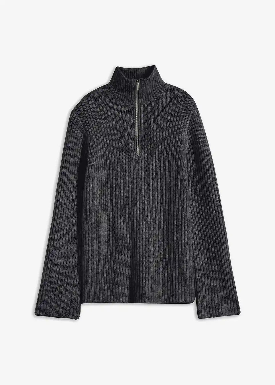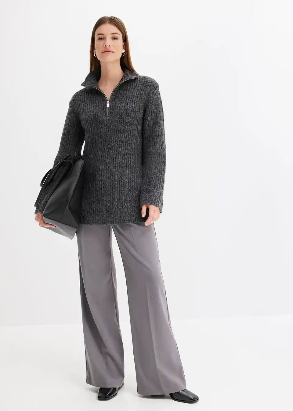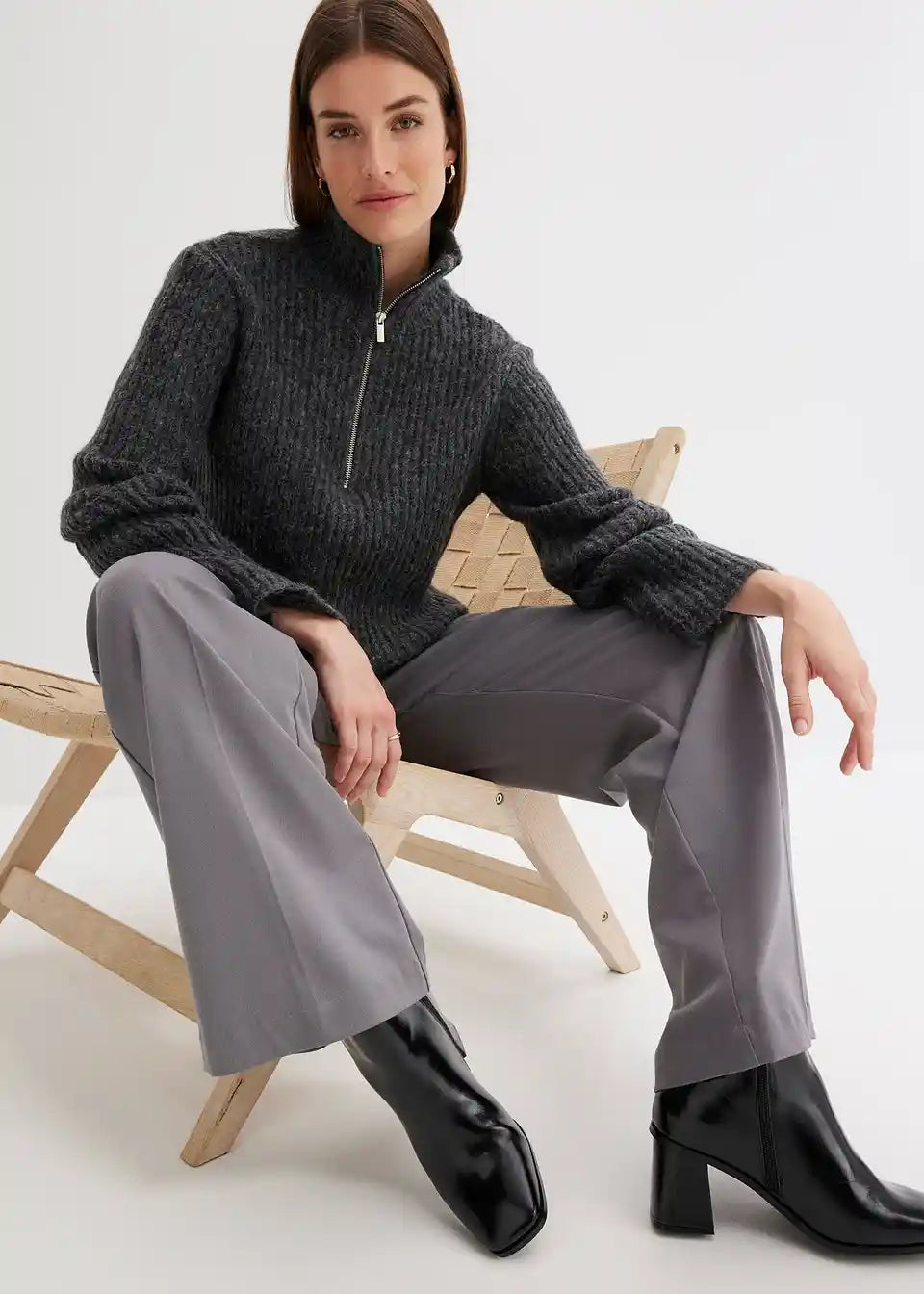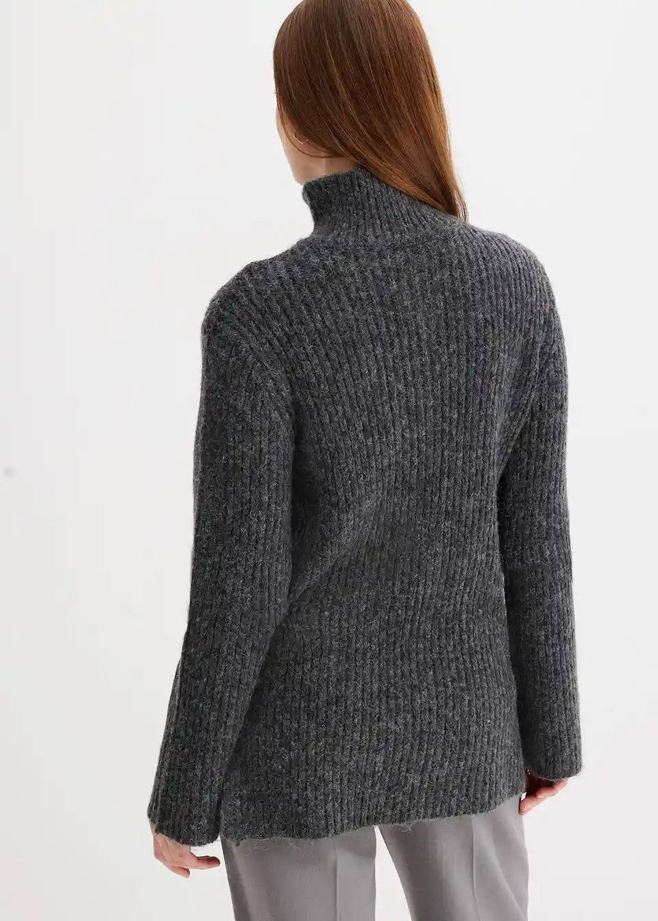 Pulover s Troyer ovratnikom iz udobne rebraste pletenine