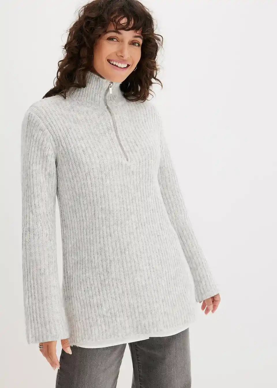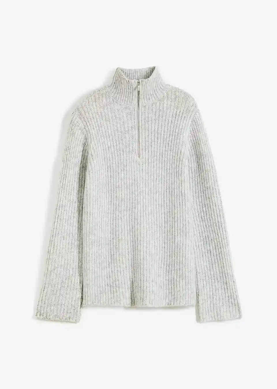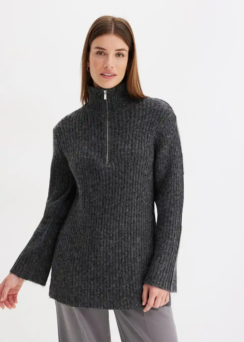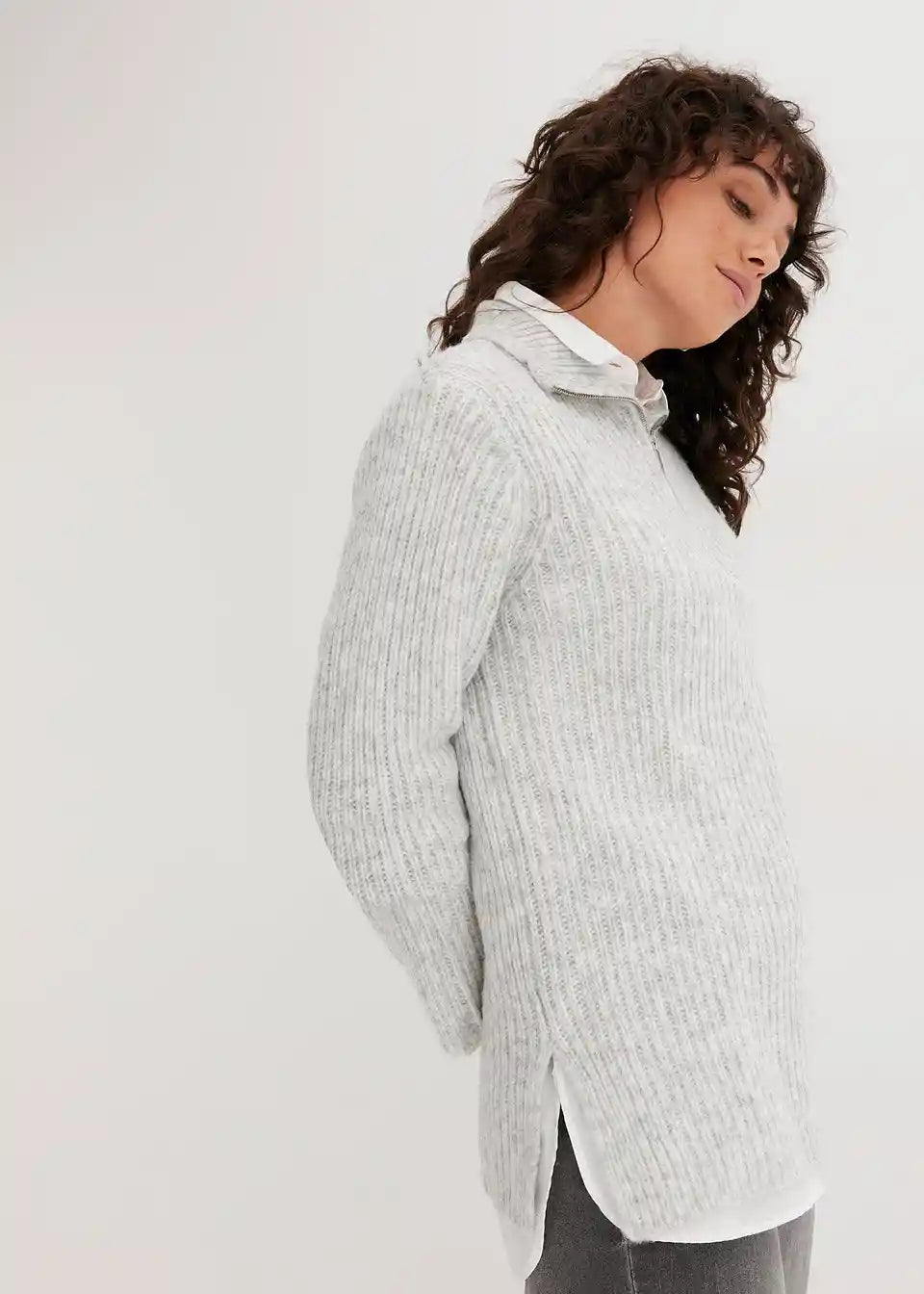 Pulover s Troyer ovratnikom iz udobne rebraste pletenine