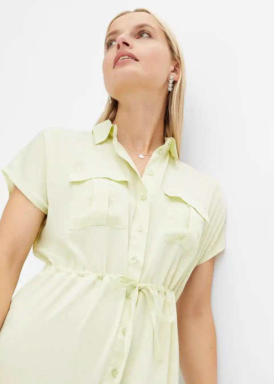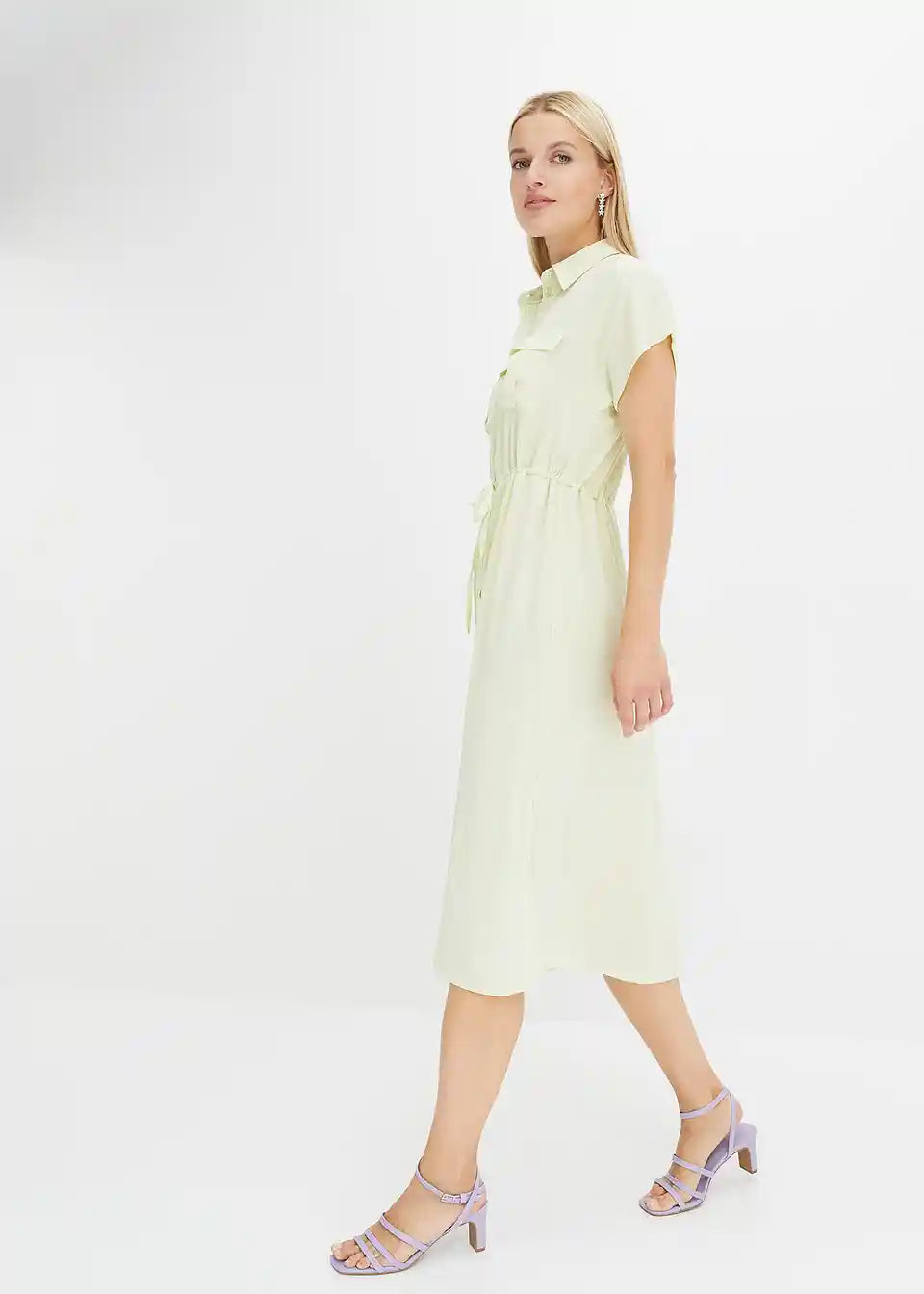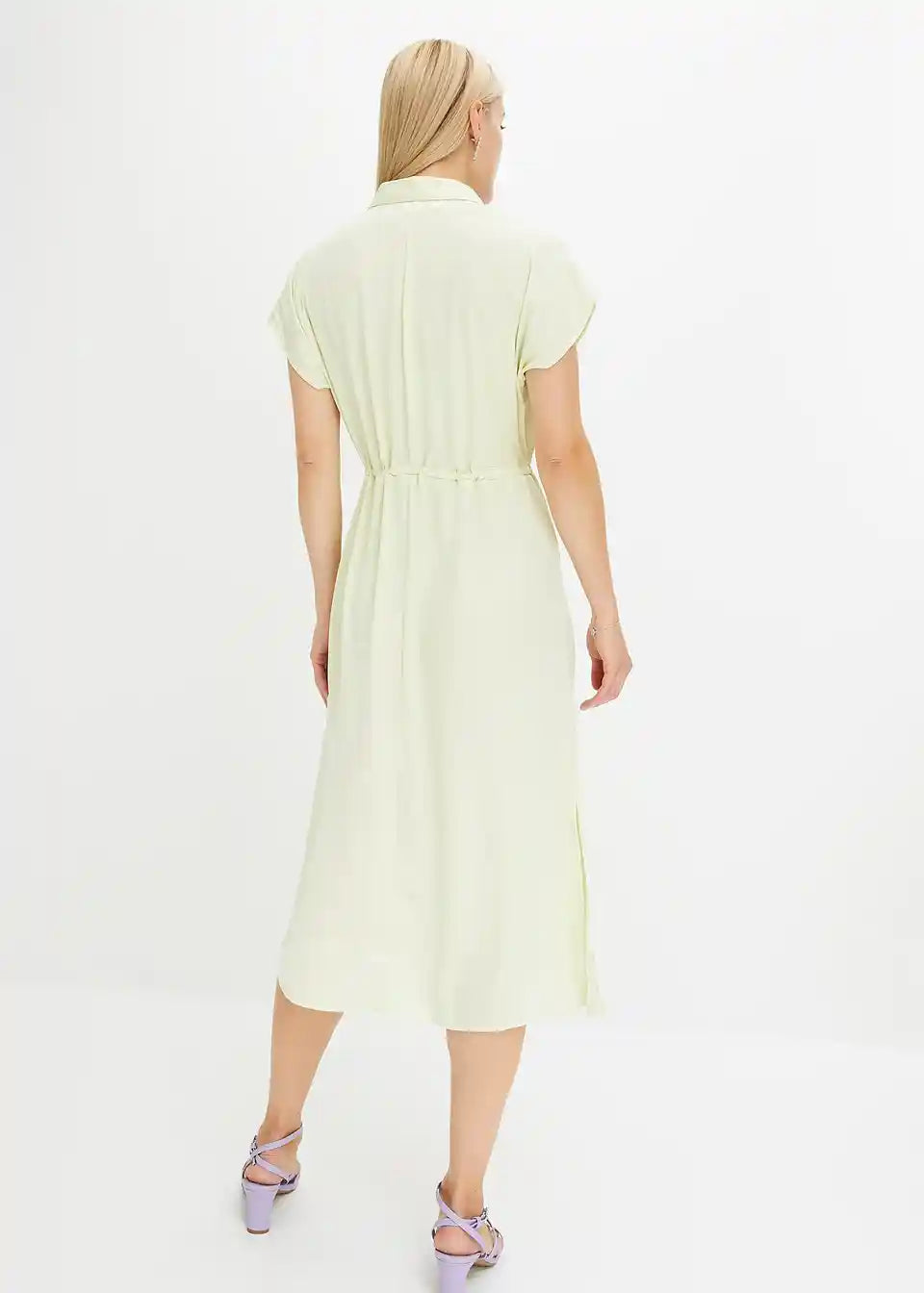 Ženska obleka s ovratnikom in pasom za zavezovanje v pasu