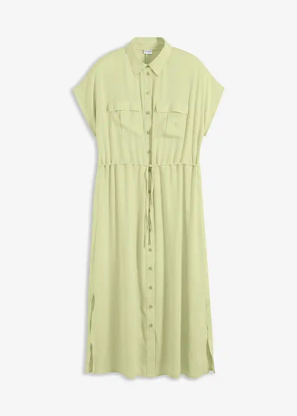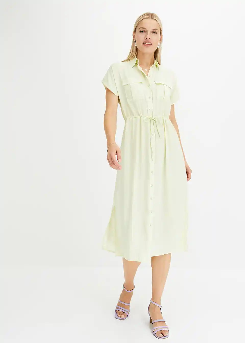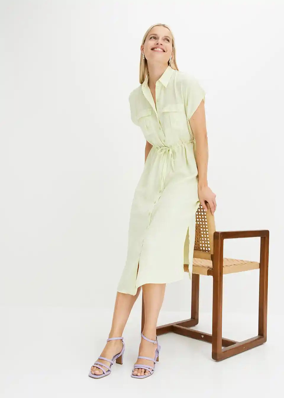 Ženska obleka s ovratnikom in pasom za zavezovanje v pasu