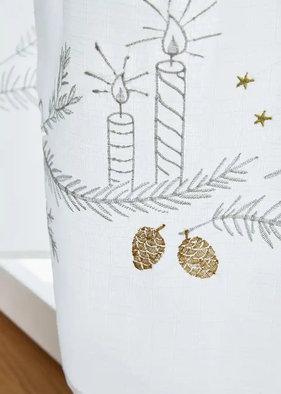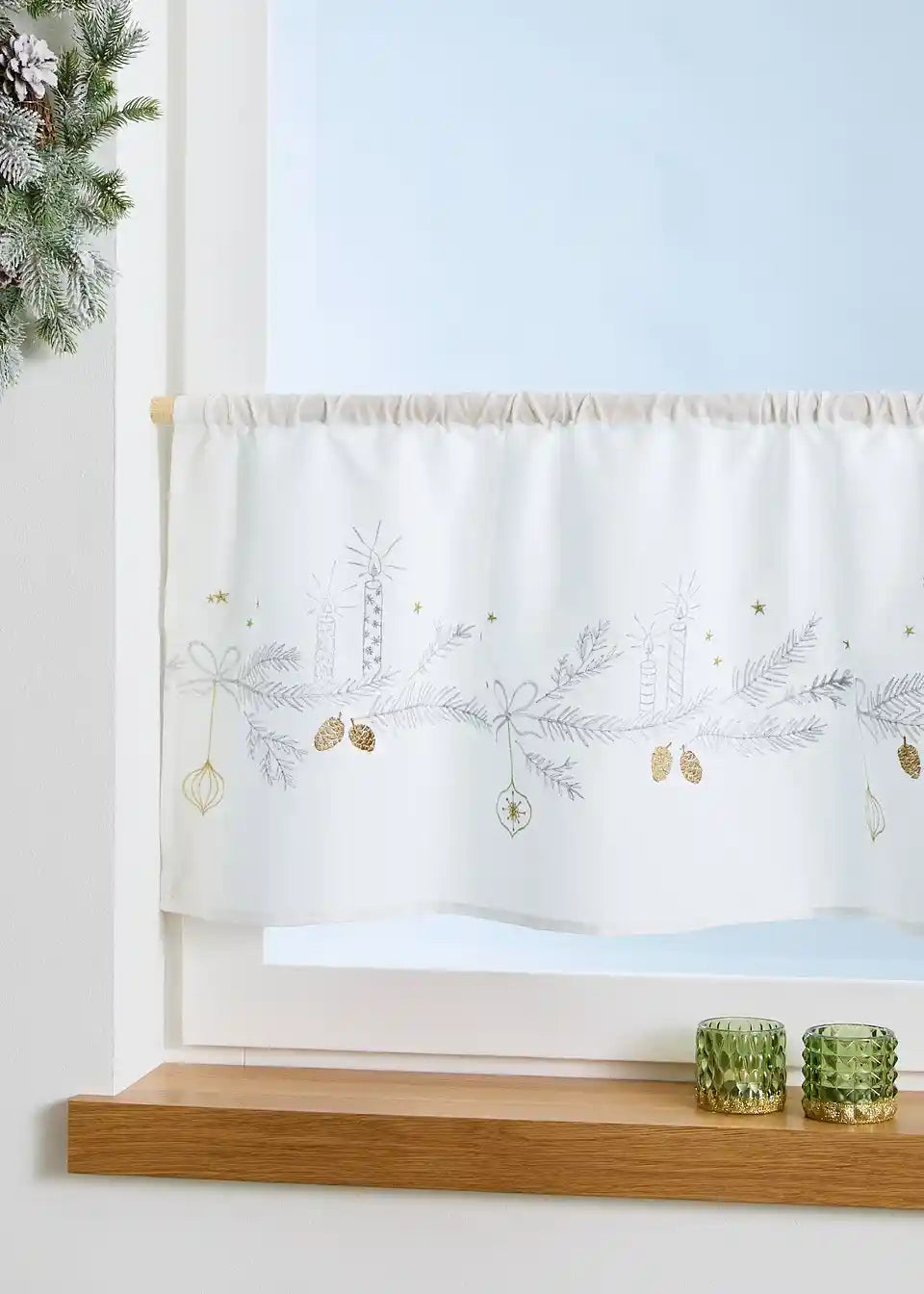 Ta Scheibengardina je diskretna zaščita pred pogledi in idealna dekoracija za božično vzdušje. Čudovito vezenje s sijajnim sukancem in obdelava v lanenem videzu jo naredita za poseben dodatek.