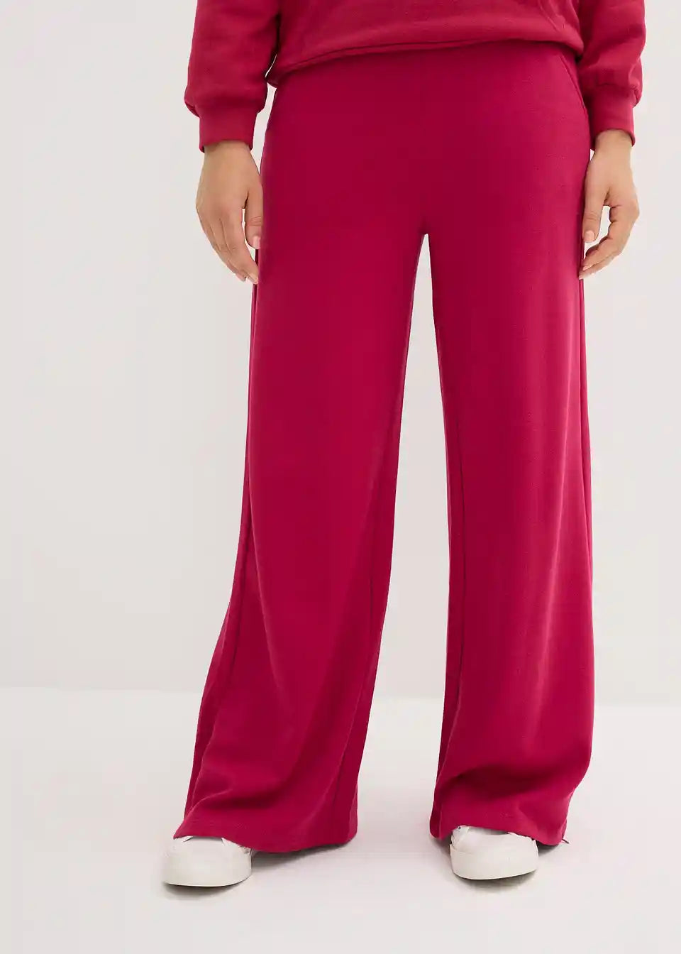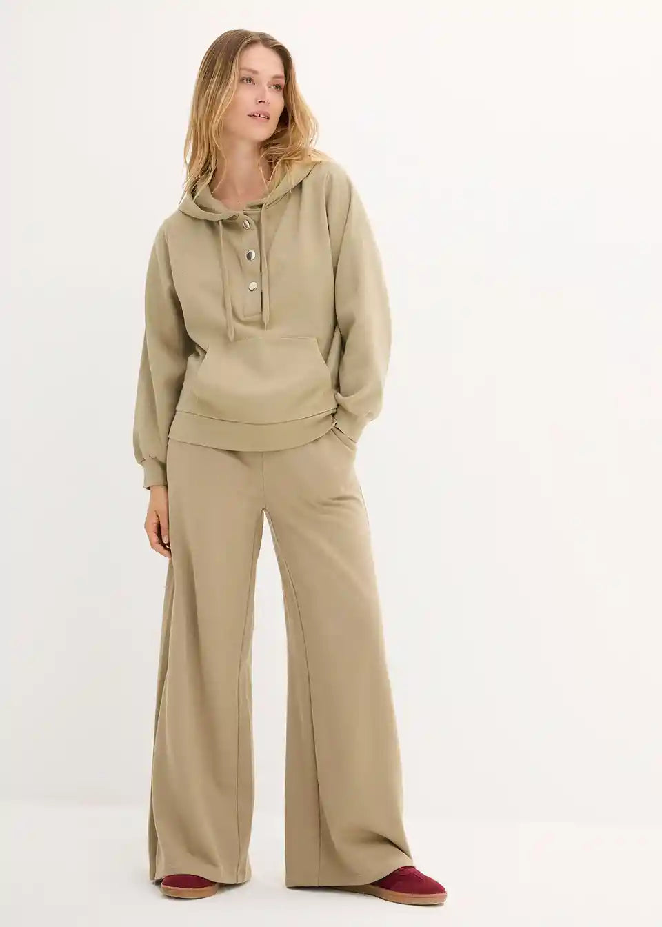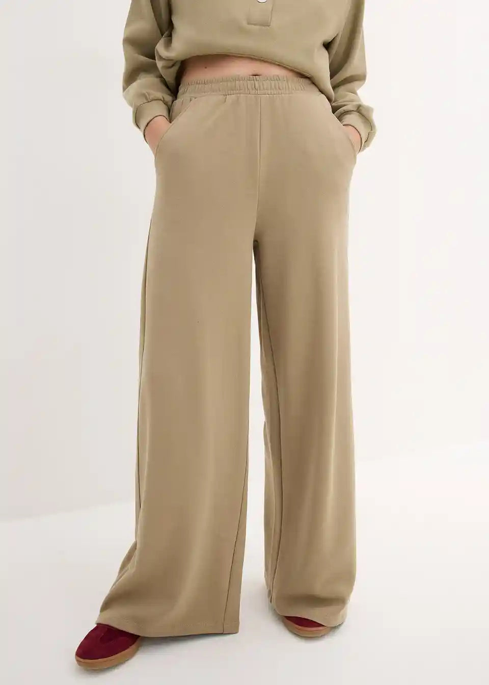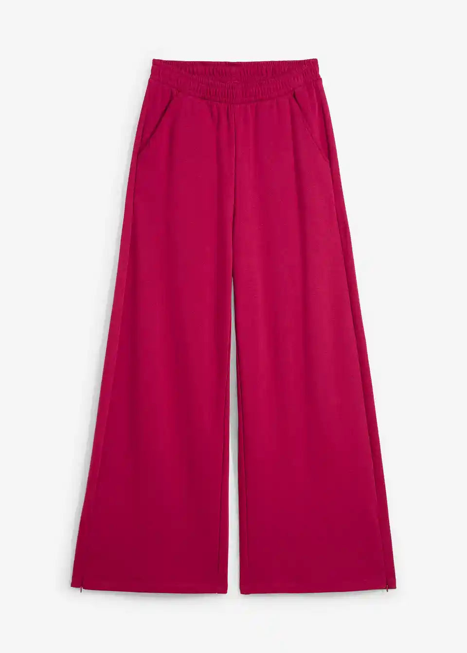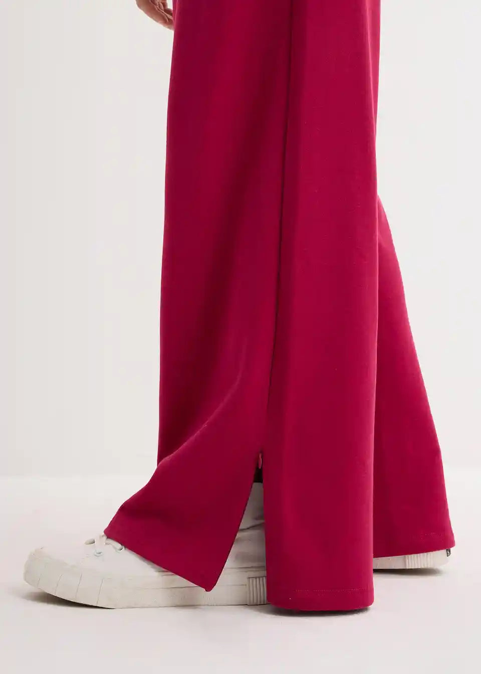 Široke hlače iz trikoja z zadrgo na spodnjem robu in udobnim pasom