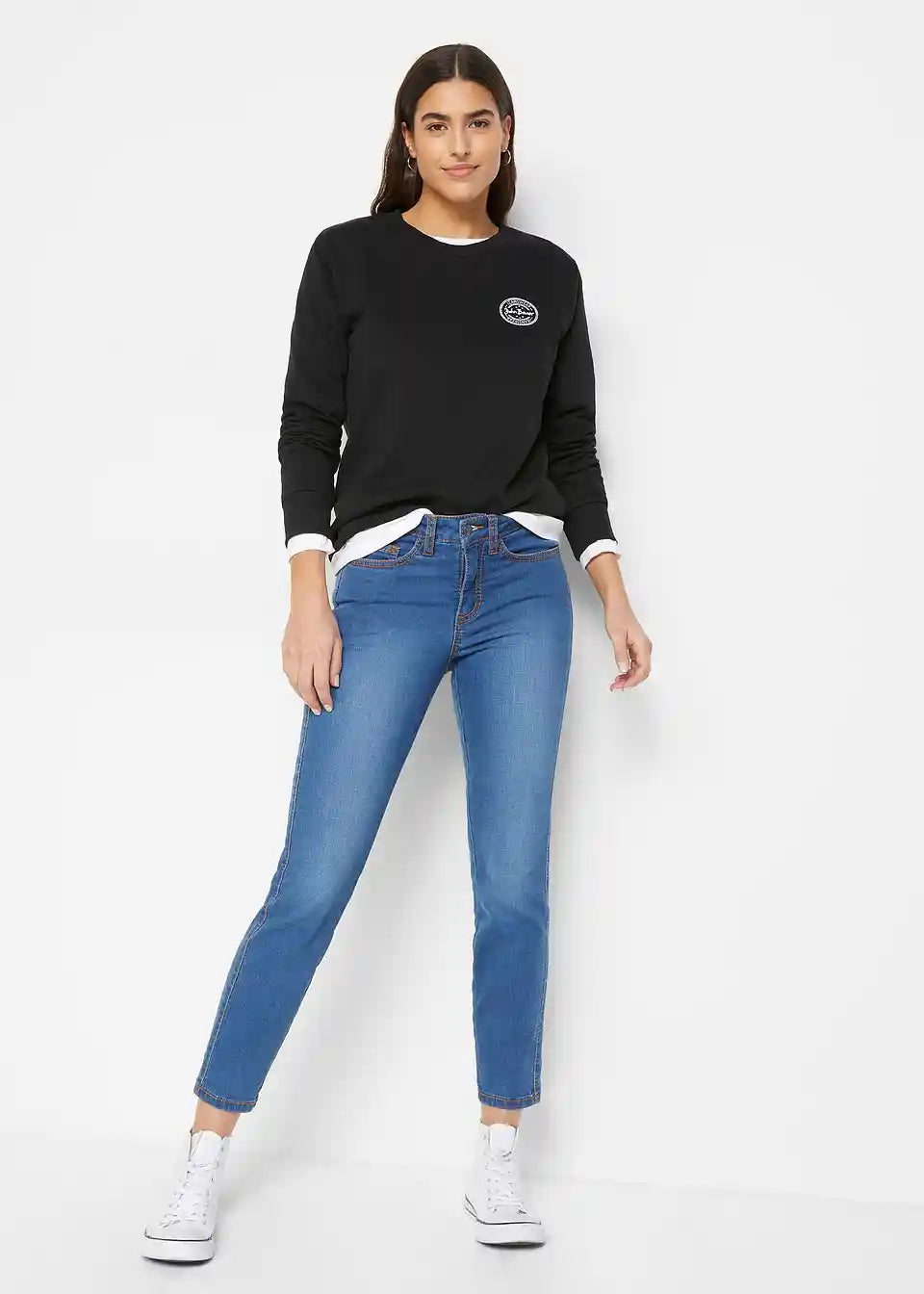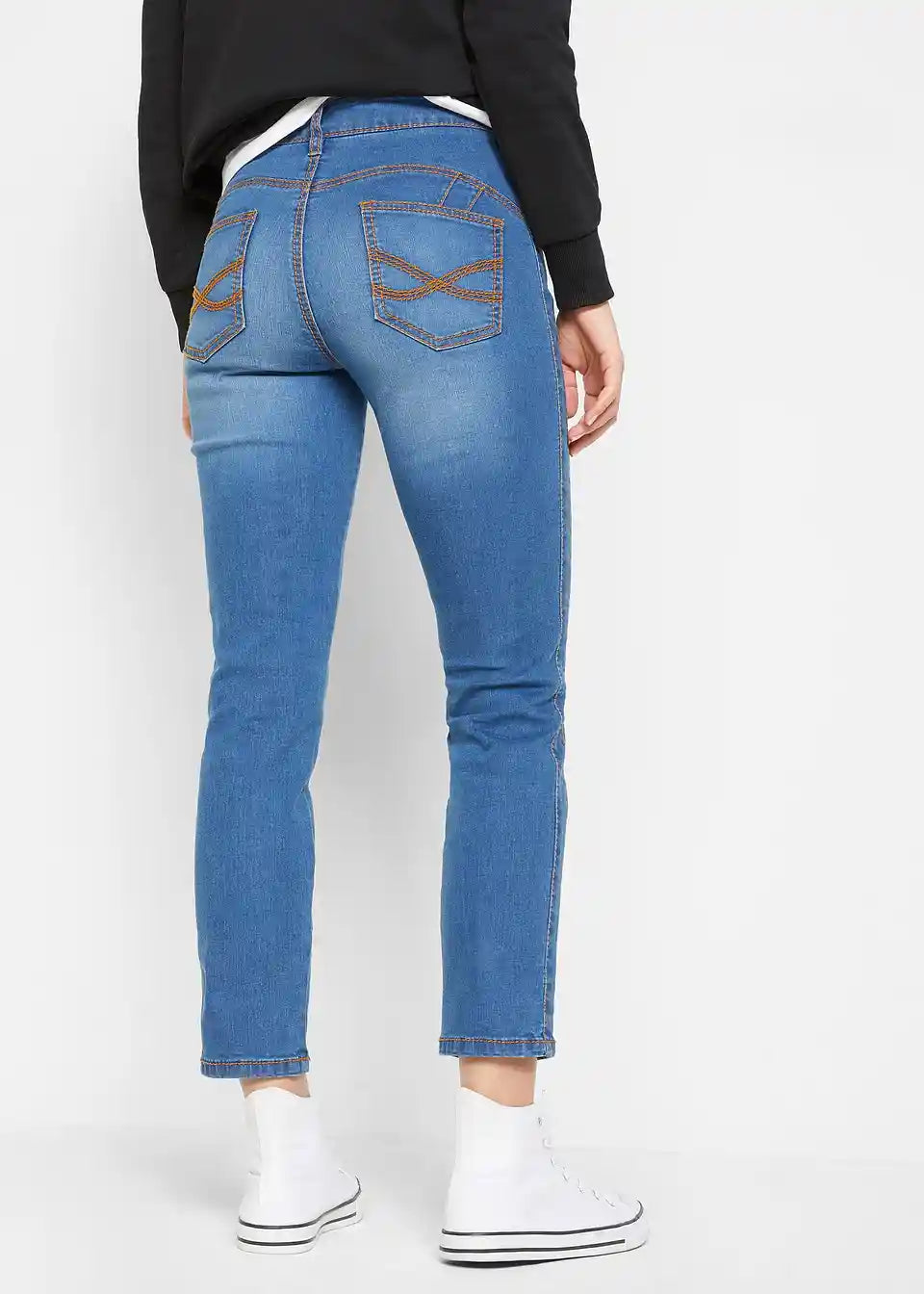 Oprijete oblikovalne kavbojke s srednje visokim pasom v krajšem kroju