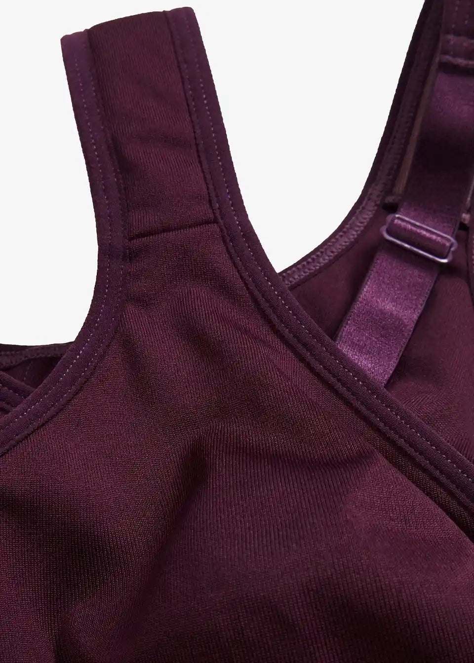 S tem modrčkom brez kosti ste pripravljeni na vse, naj bo to tek, aerobika ali vzdržljivostni trening. Struktura vlaken, uporabljenih v tem športnem modrčku, hitro vpija vlago in jo odvaja navzven. Tako vam zagotavlja suh in prijeten občutek na koži. To dopolnjuje skrit, udoben elastičen trak pod prsi. Modrček ima zapiranje na hrbtu in nastavljive naramnice.