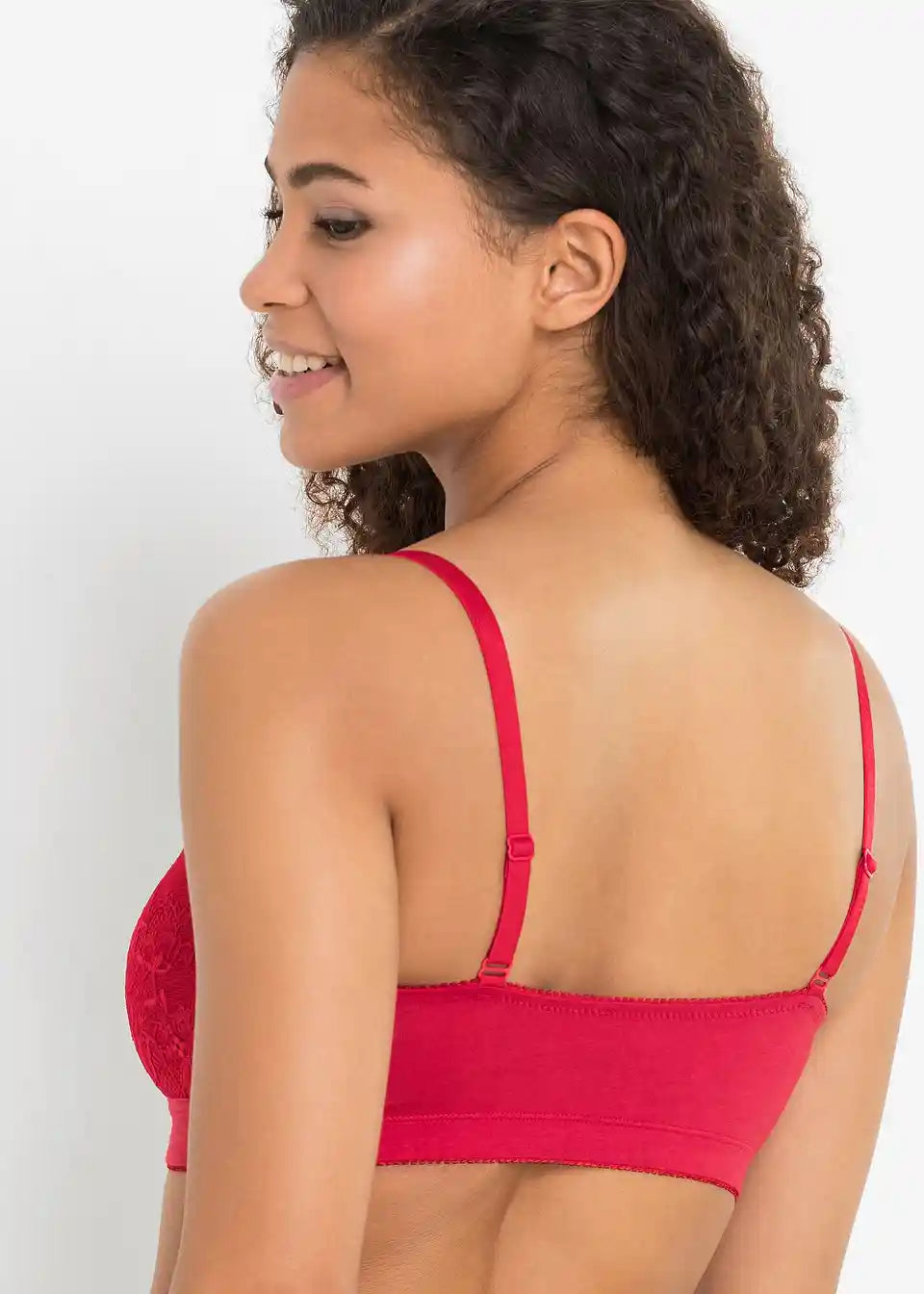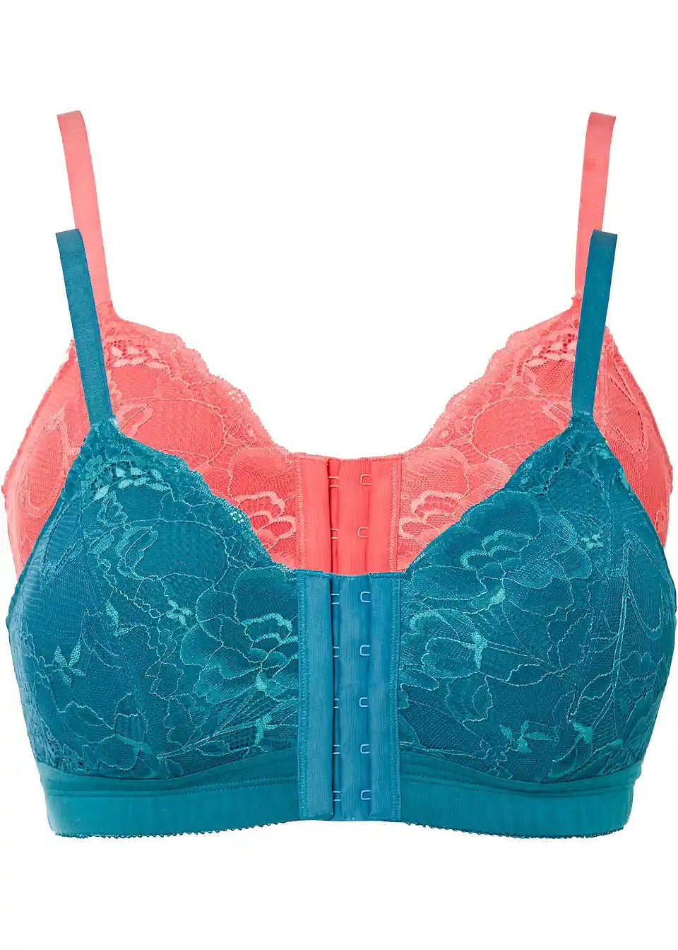 Spredaj zapenjajoč nedrček brez kosti iz bombaža in romantične čipke, paket 2 kosa
