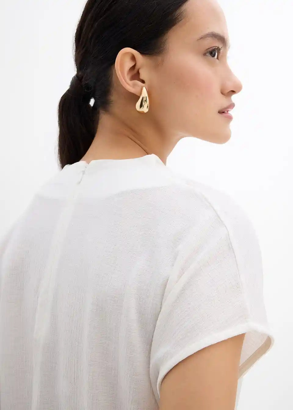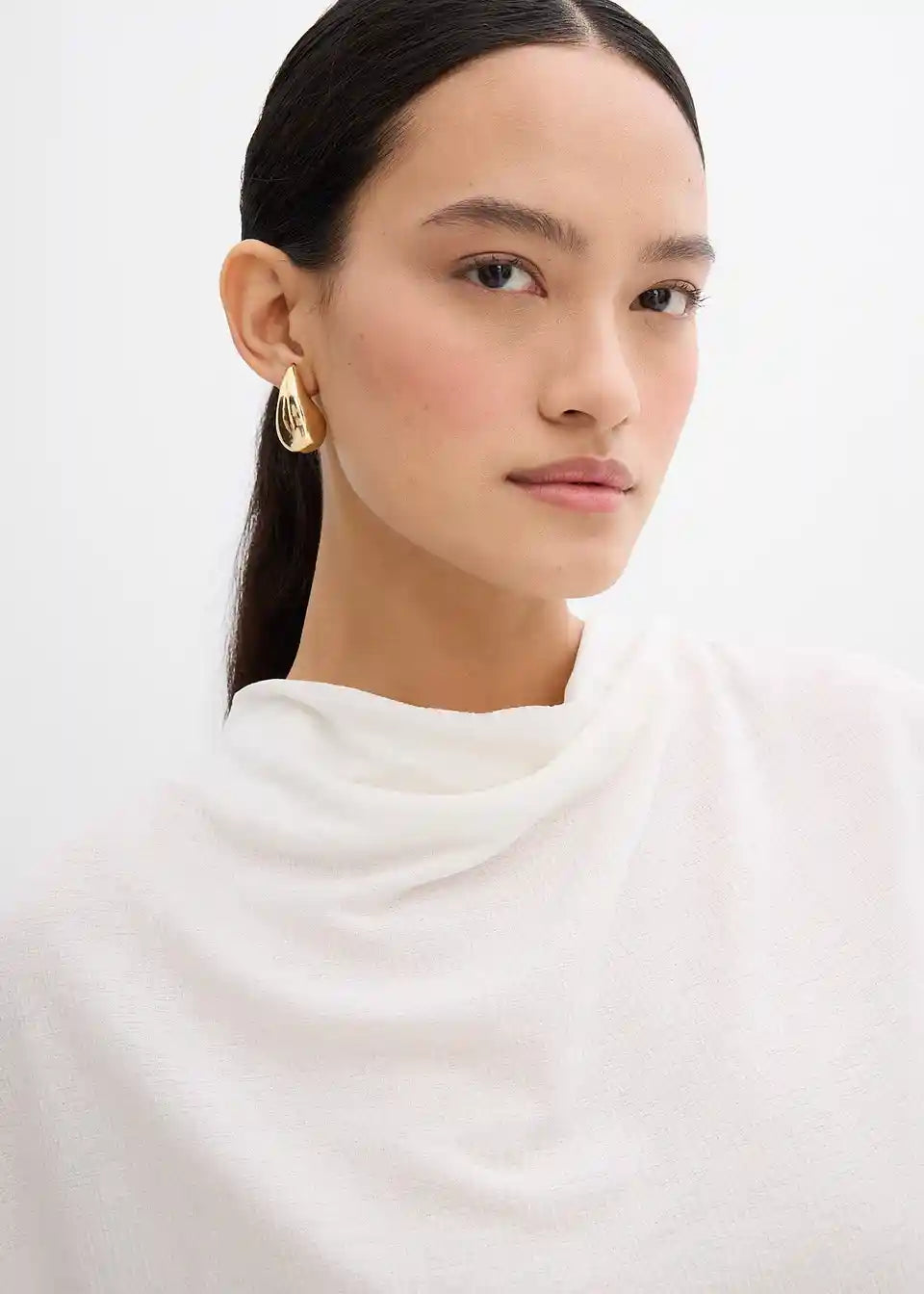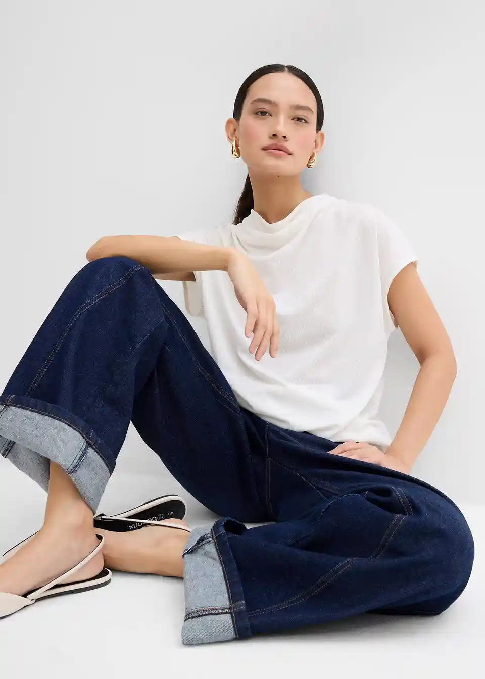 Brezrokavni top z vodoravnim ovratnikom in napihnjenim robom z elastičnim zaključkom
