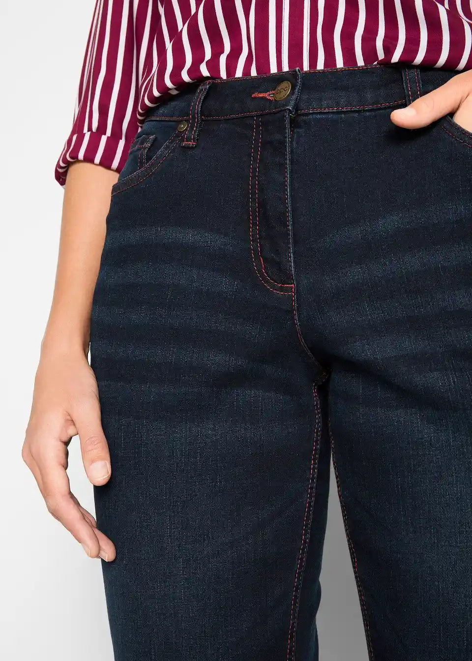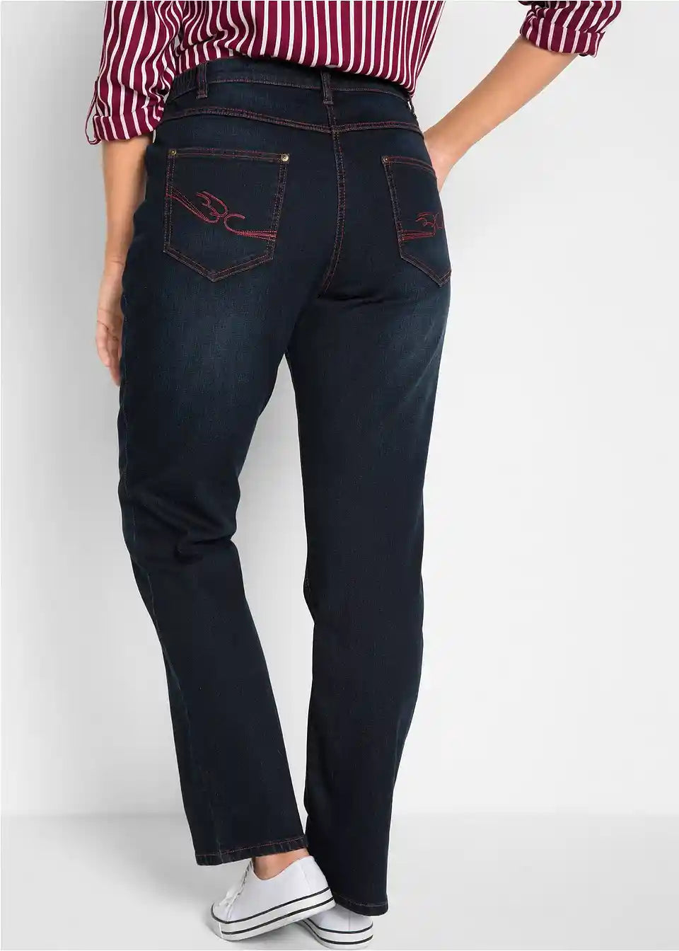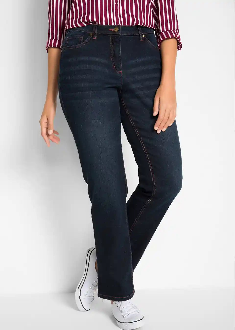 Te Jeans hlače zagotavljajo visoko udobje in odlično prileganje zahvaljujoč stranskim vdelanim elastičnim pasom. Dolge hlače od bpc so ravnega kroja in se zapirajo z zadrgo in gumbom. Opazno pranje in stil s 5 žepi poskrbita za sproščen videz. Elastične Jeans hlače laskajo postavi s svojo krojeno prileganjem in ponujajo prijeten občutek nošenja.