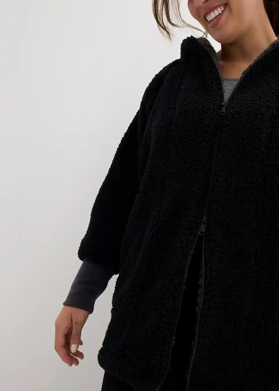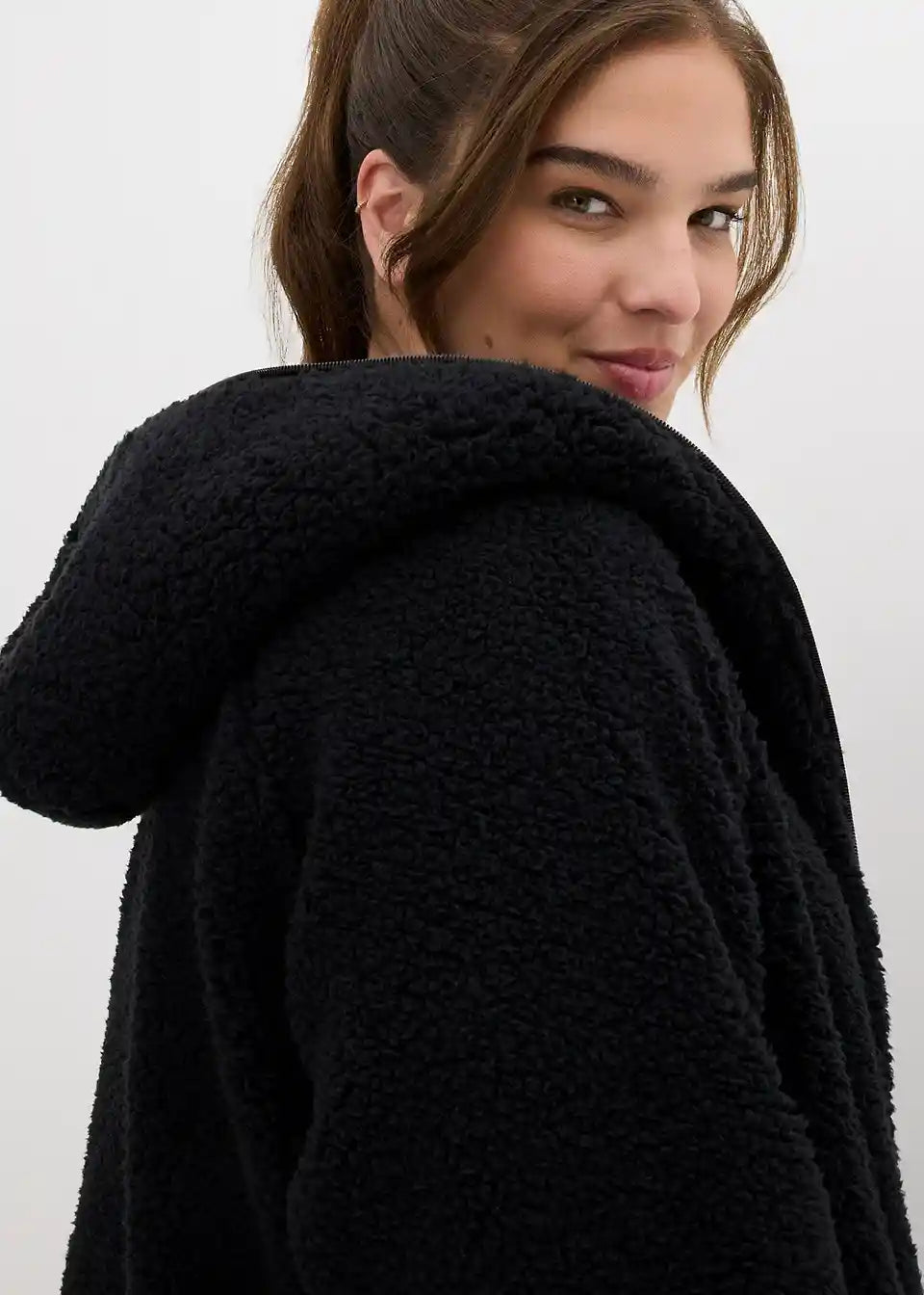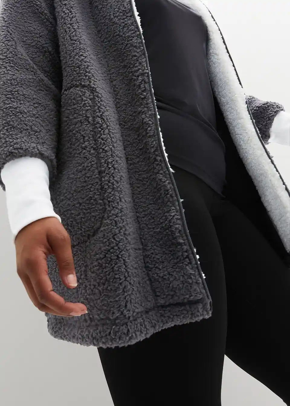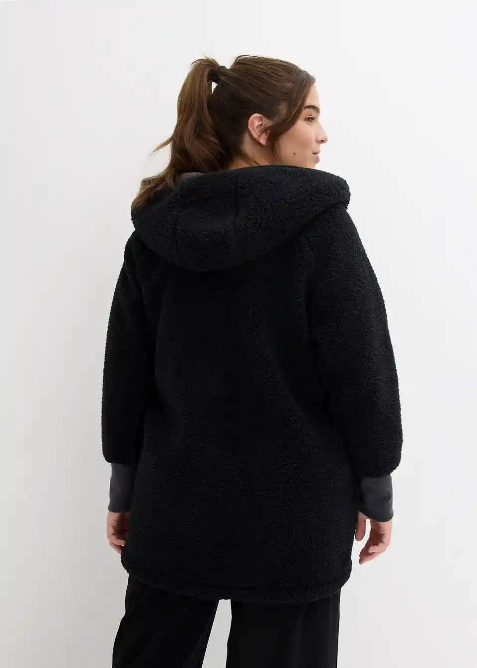 Oversized Teddy-Fleece plašč z žepi in 2-smerno zadrgo, ki jo je mogoče zapreti, vključno s kapuco