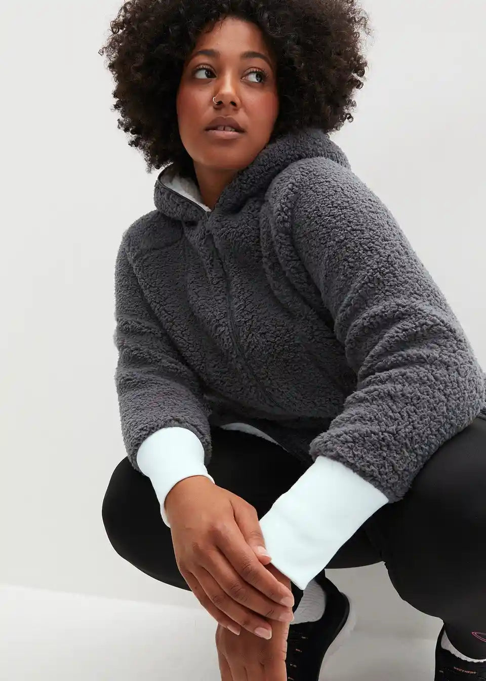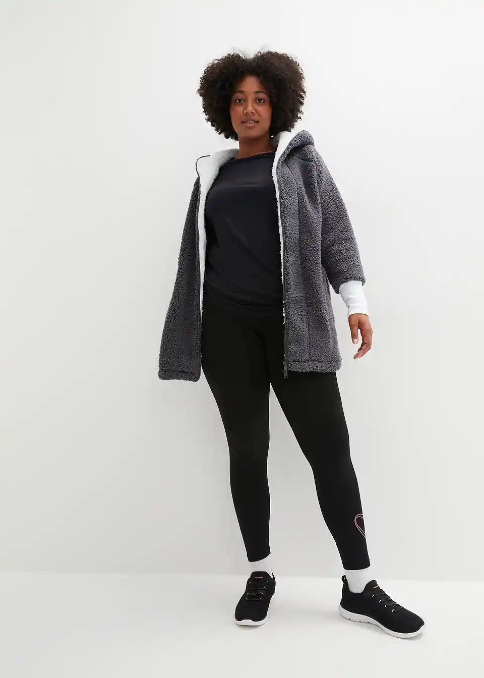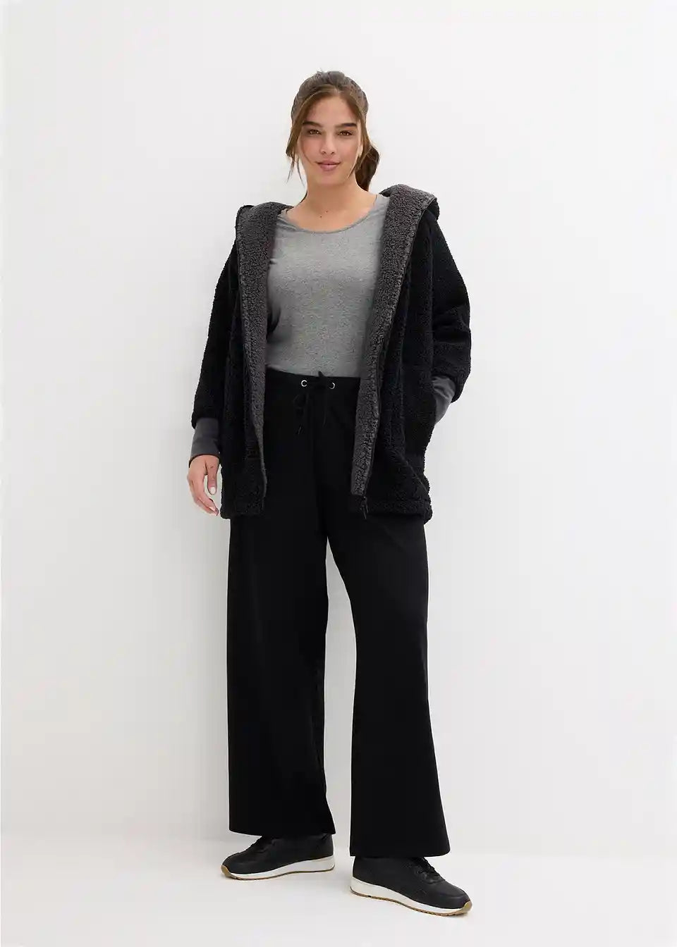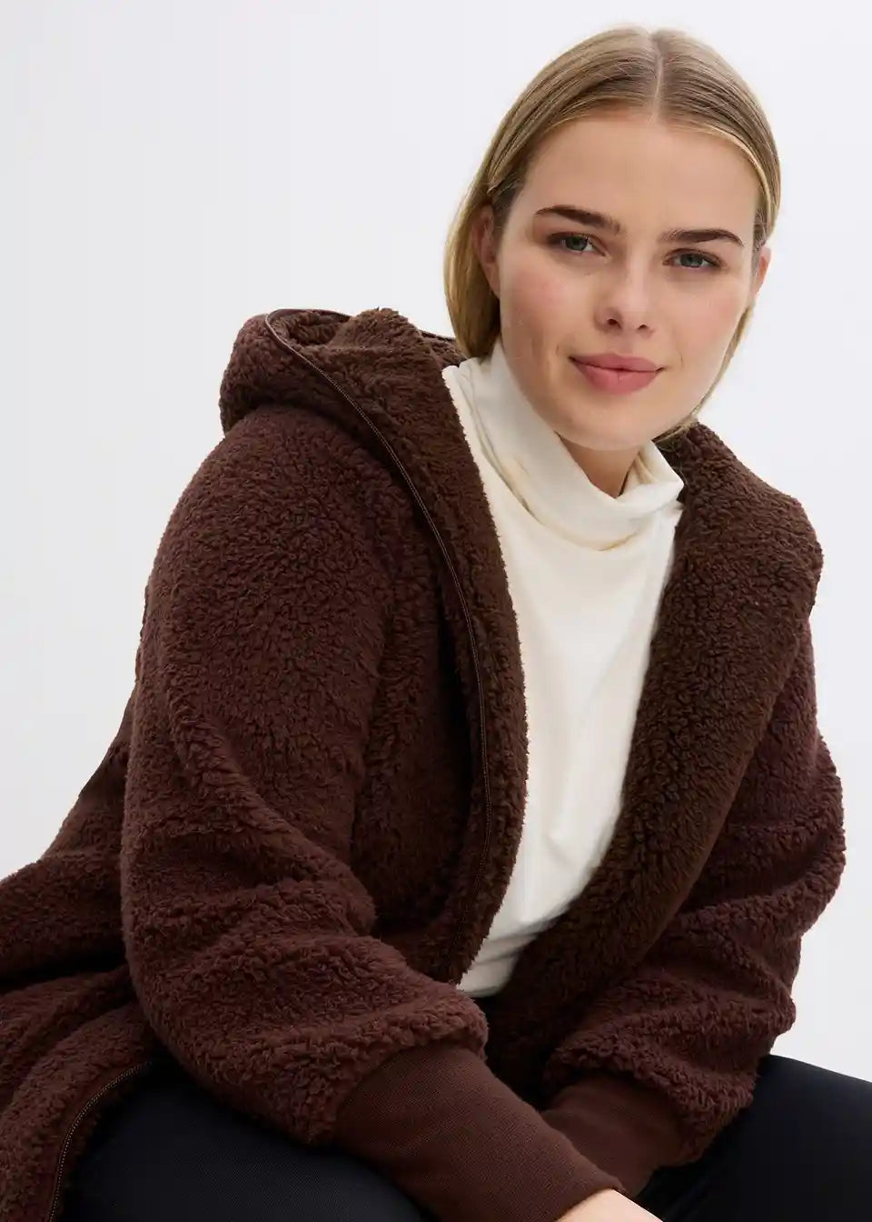 Oversized Teddy-Fleece plašč z žepi in 2-smerno zadrgo, ki jo je mogoče zapreti, vključno s kapuco