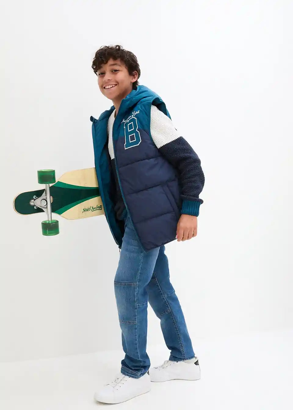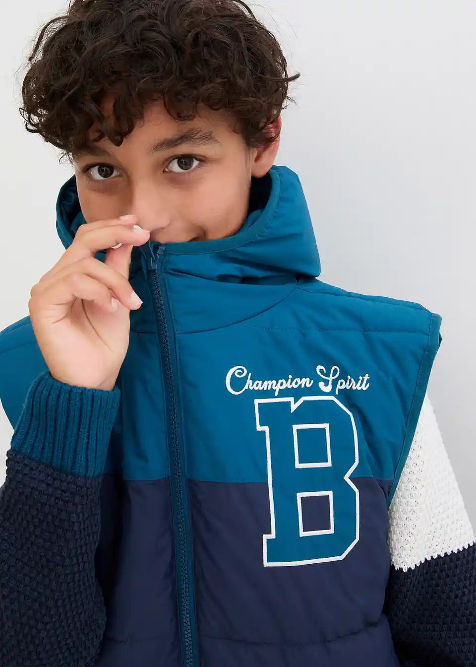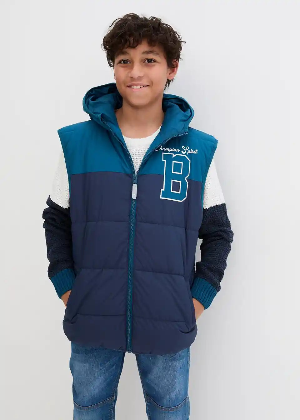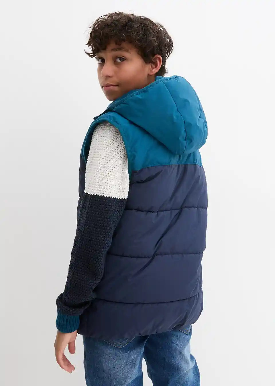 Dvobarvni telovnik z vezenim motivom na prsih in praktičnimi žepi