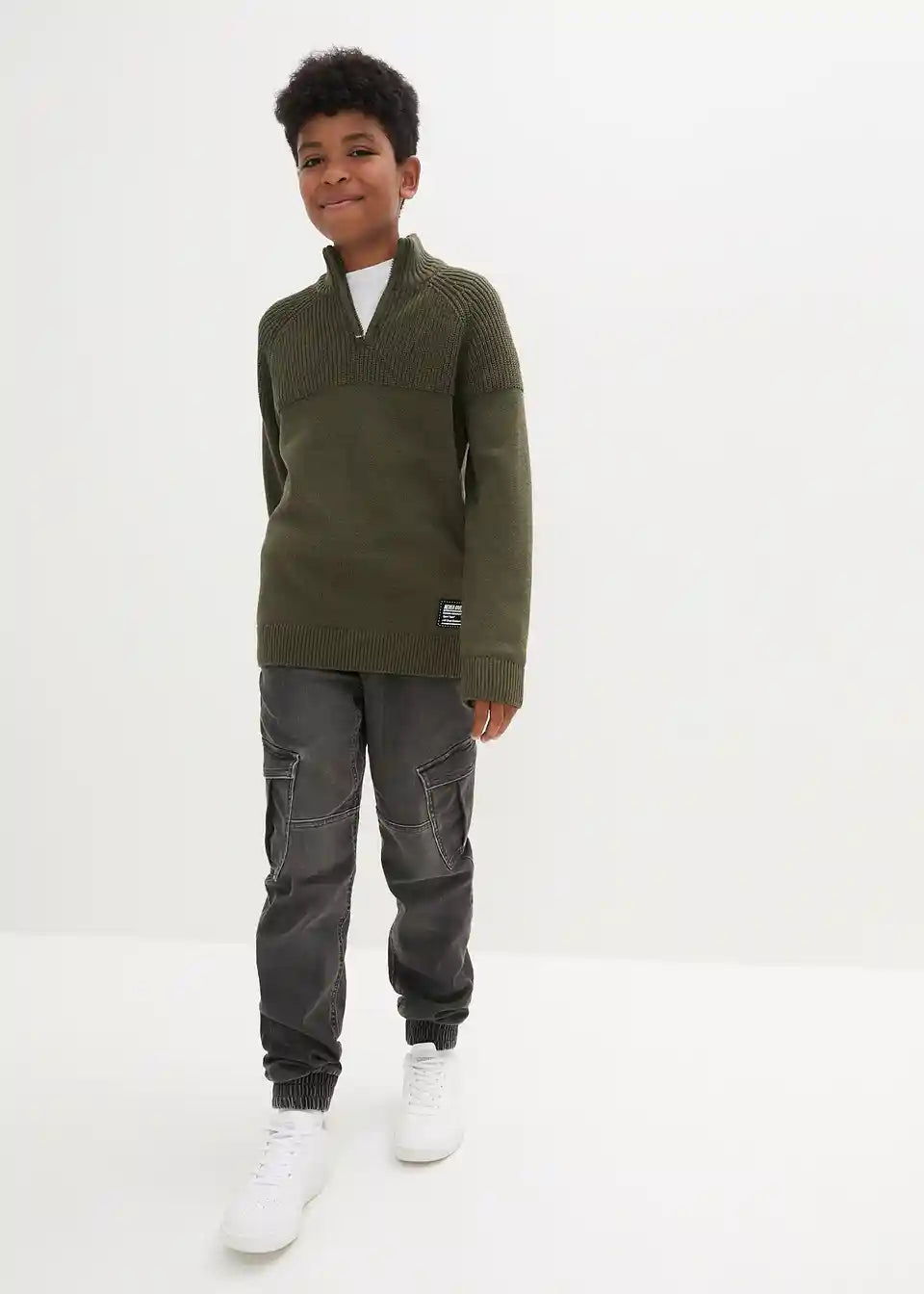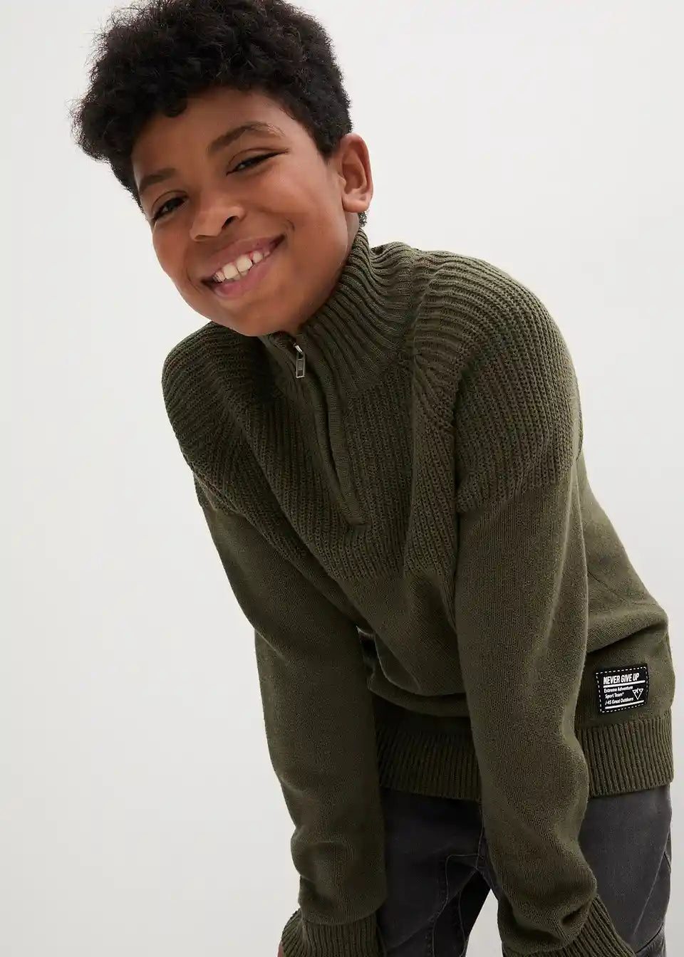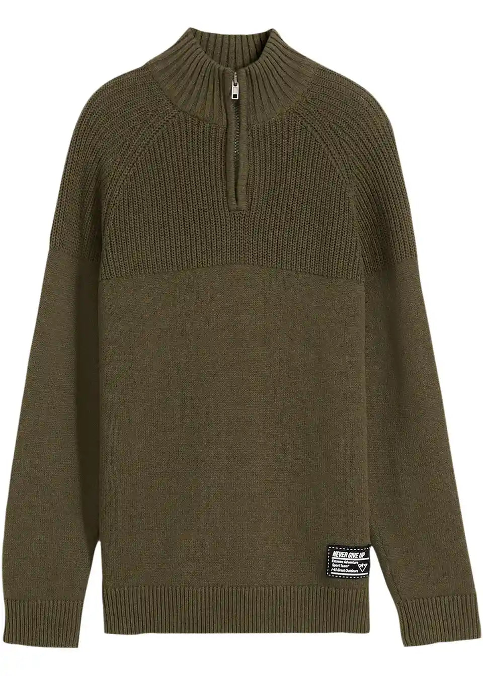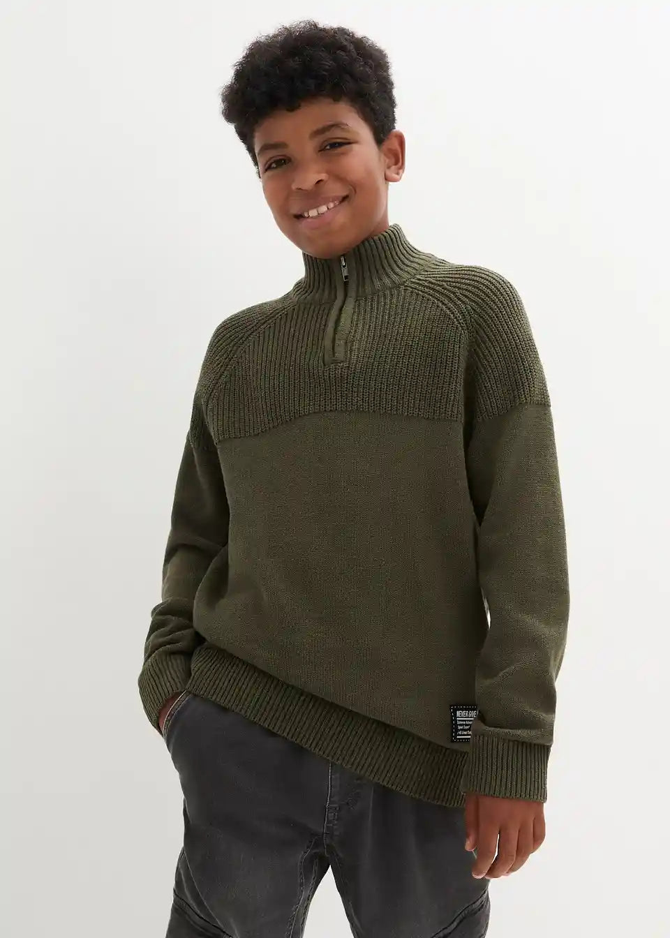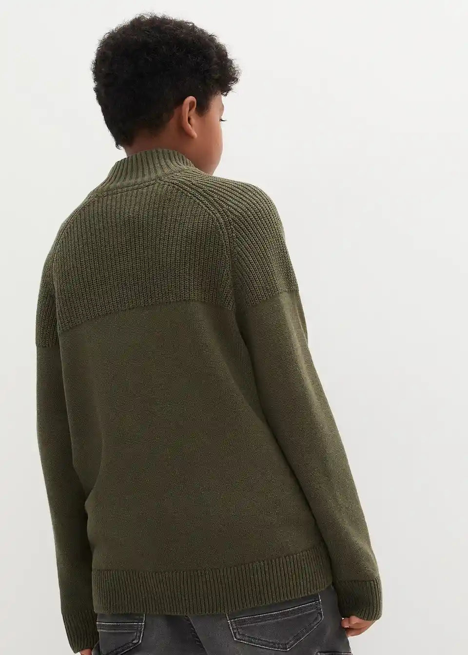 Pulover s komfortnim krojem, stoječim ovratnikom in rebrastimi patenti