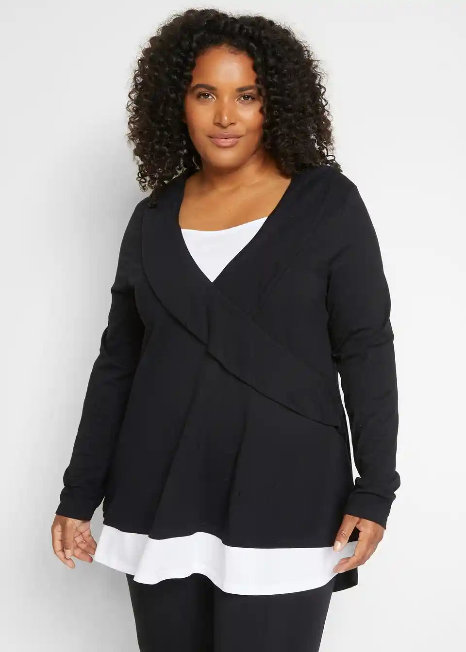 Moderna majica z volanom in slojevitim videzom