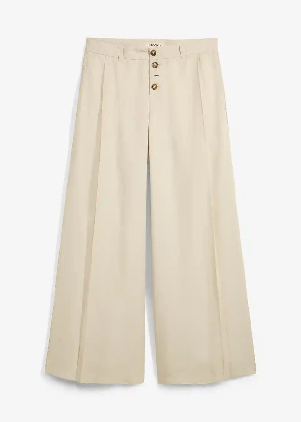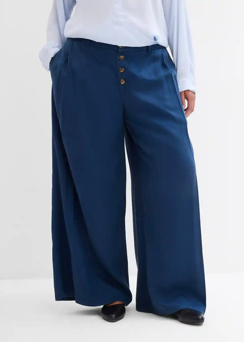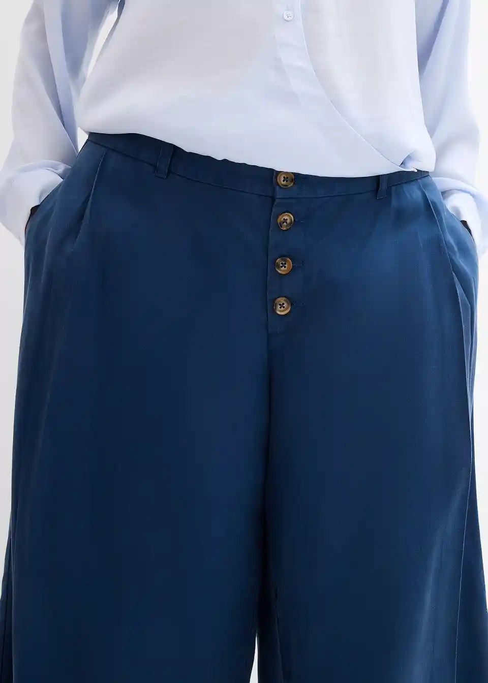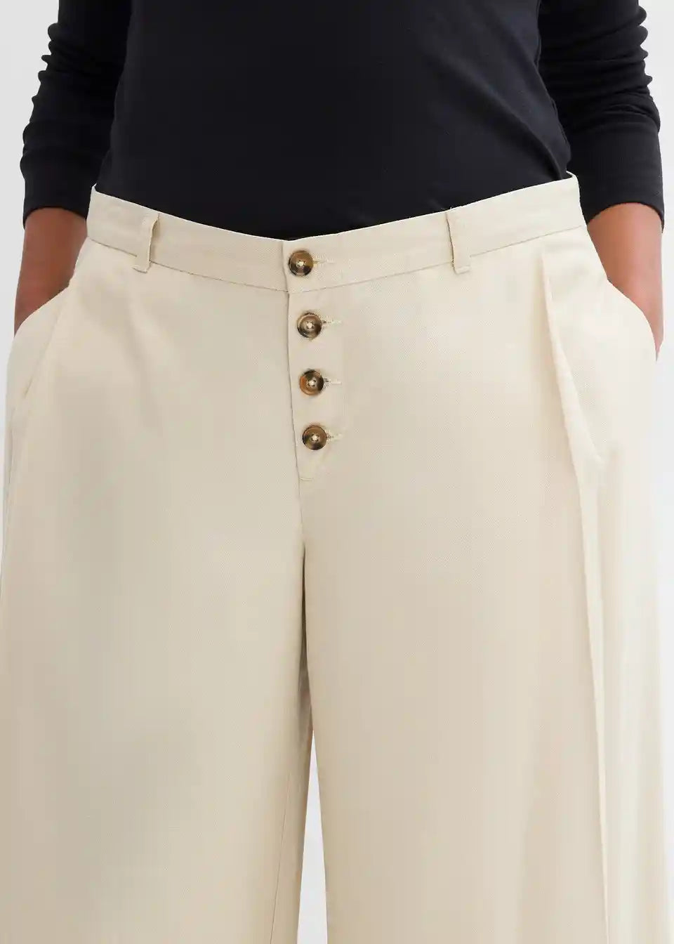 Ohlapne hlače iz Lyocella s širokimi hlačnicami in zapenjanjem na gumbe