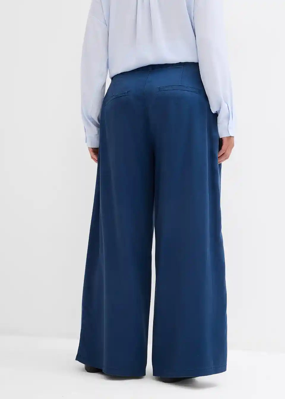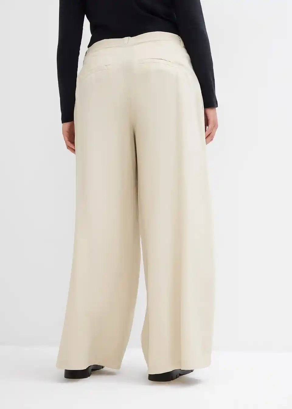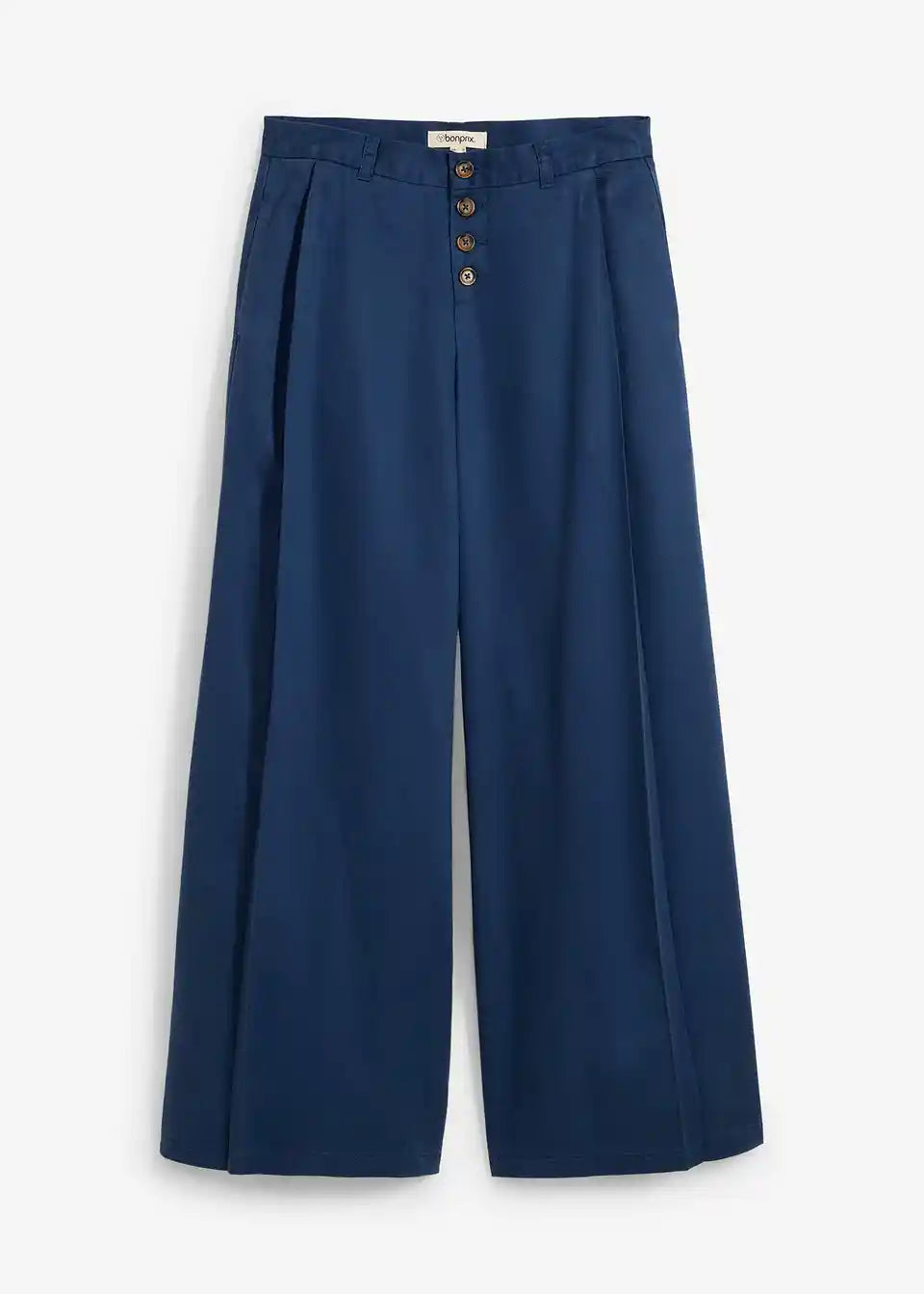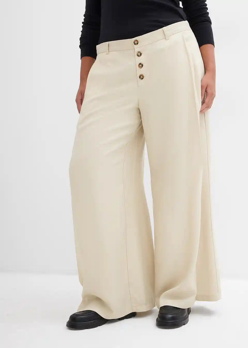 Ohlapne hlače iz Lyocella s širokimi hlačnicami in zapenjanjem na gumbe