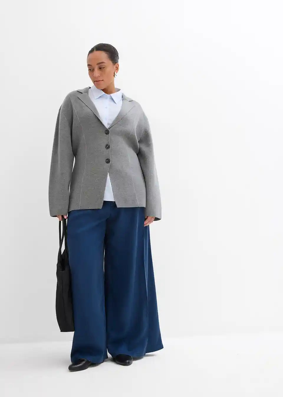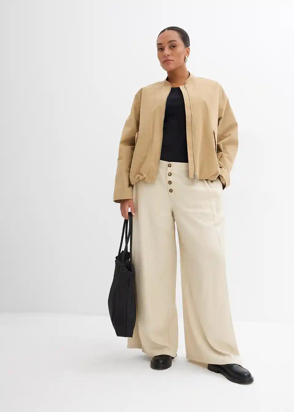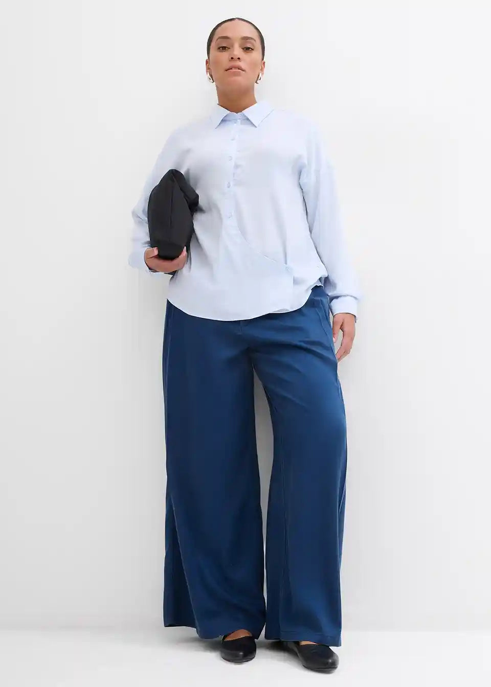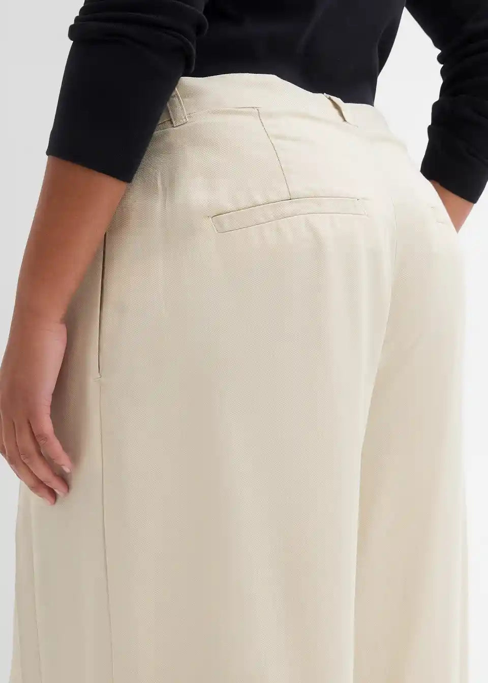 Ohlapne hlače iz Lyocella s širokimi hlačnicami in zapenjanjem na gumbe