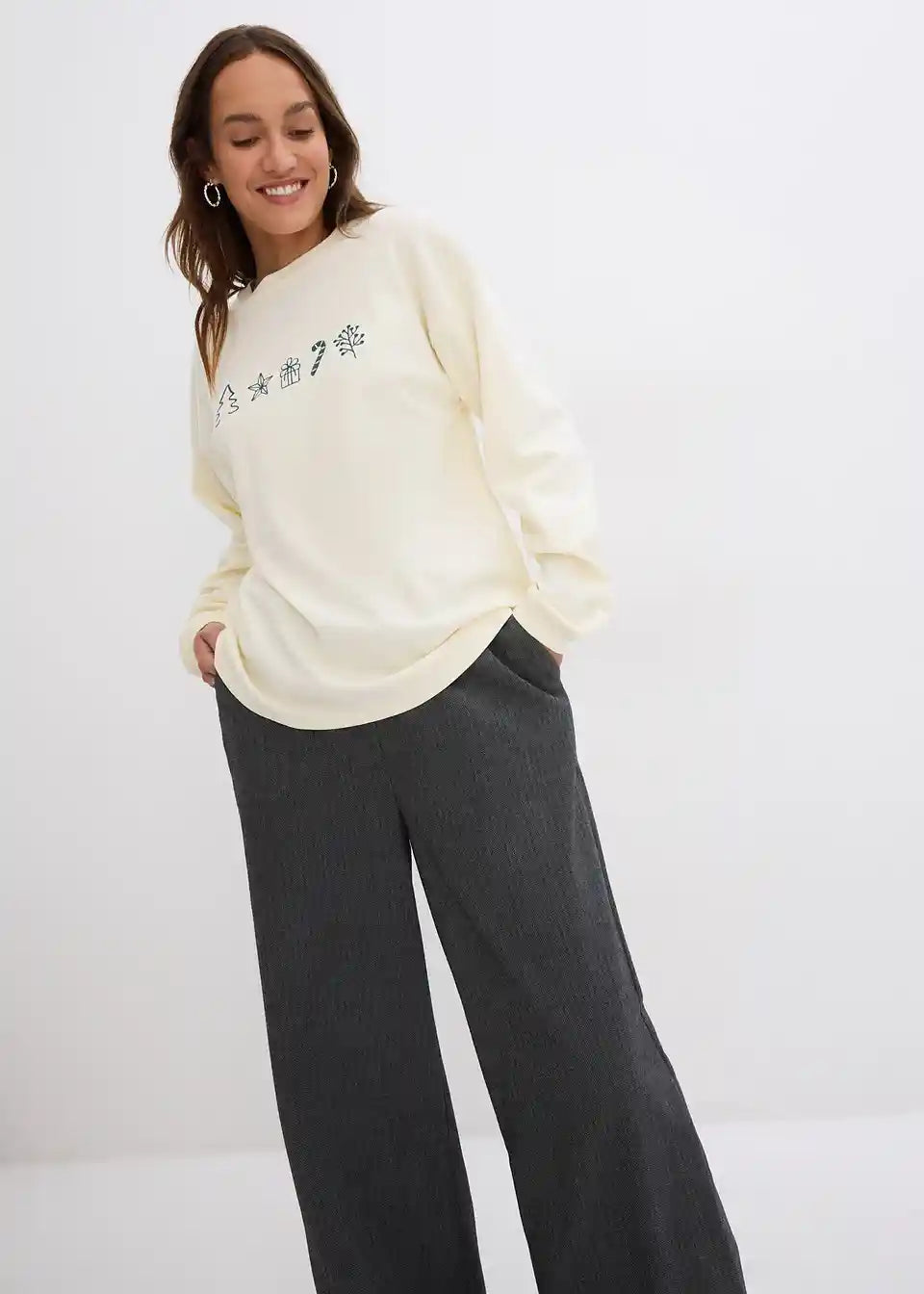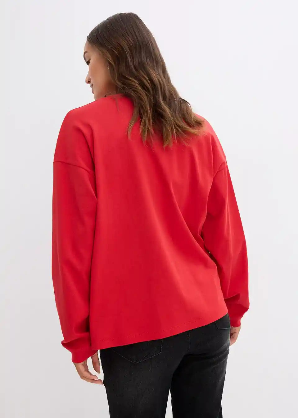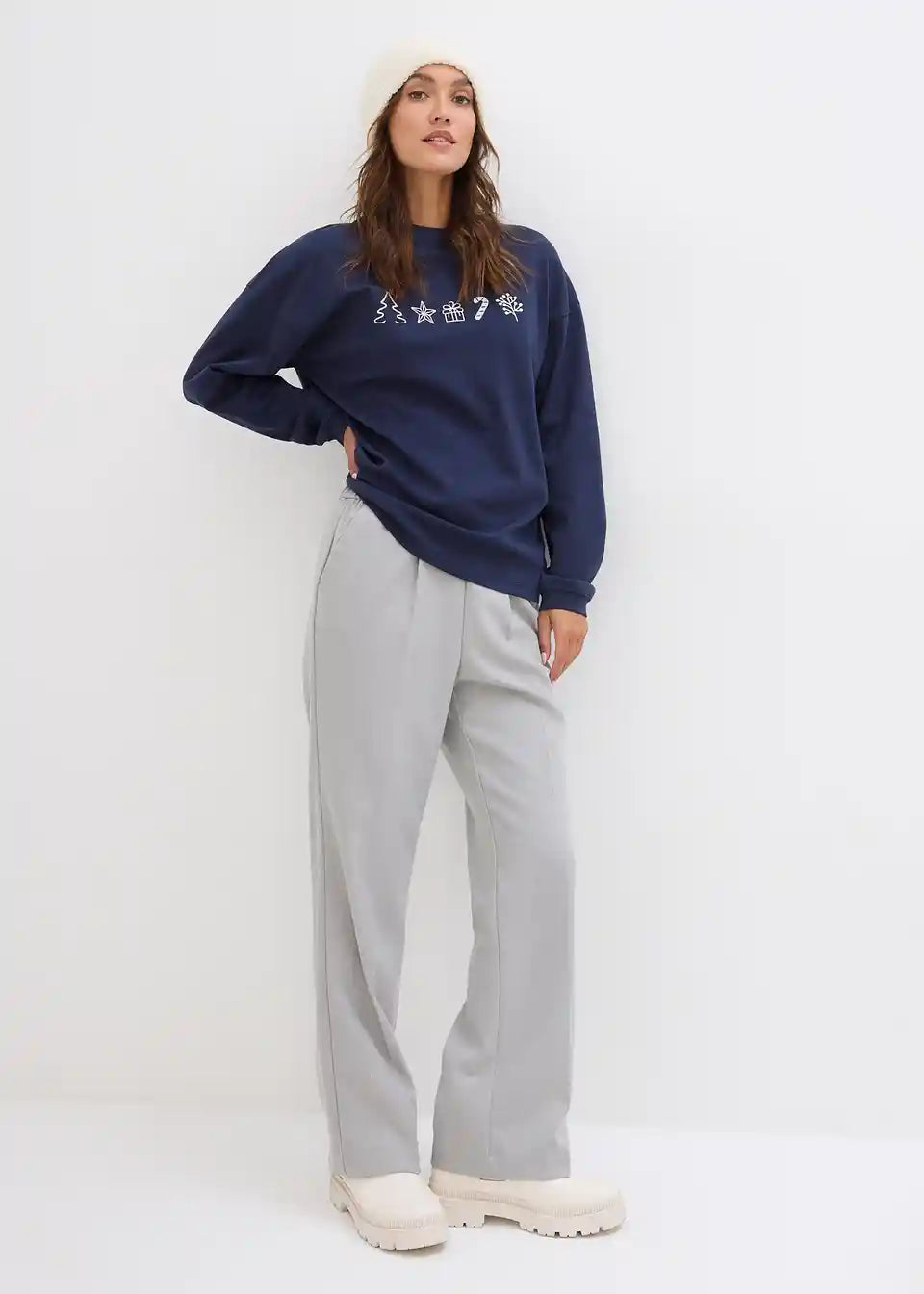 Izvezena božična ohlapna majica z dolgimi rokavi