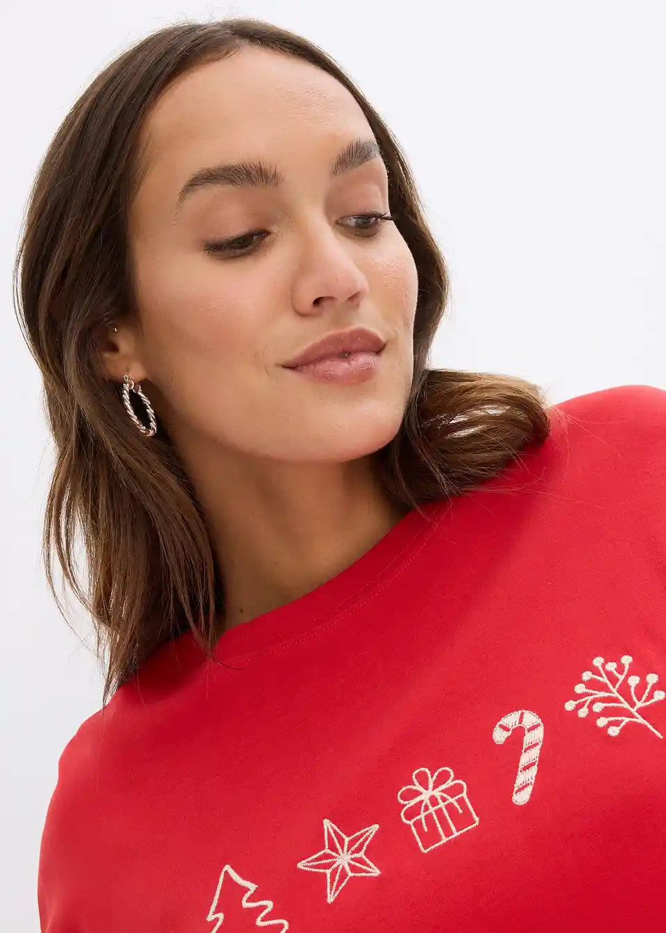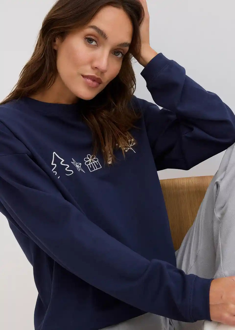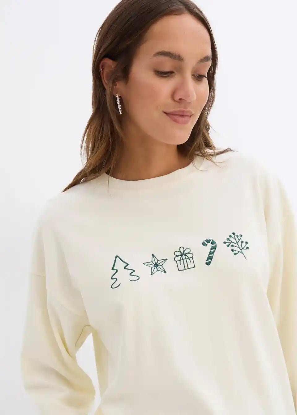 Priložnostno krojena dolgoročna majica z božičnim vezeninami