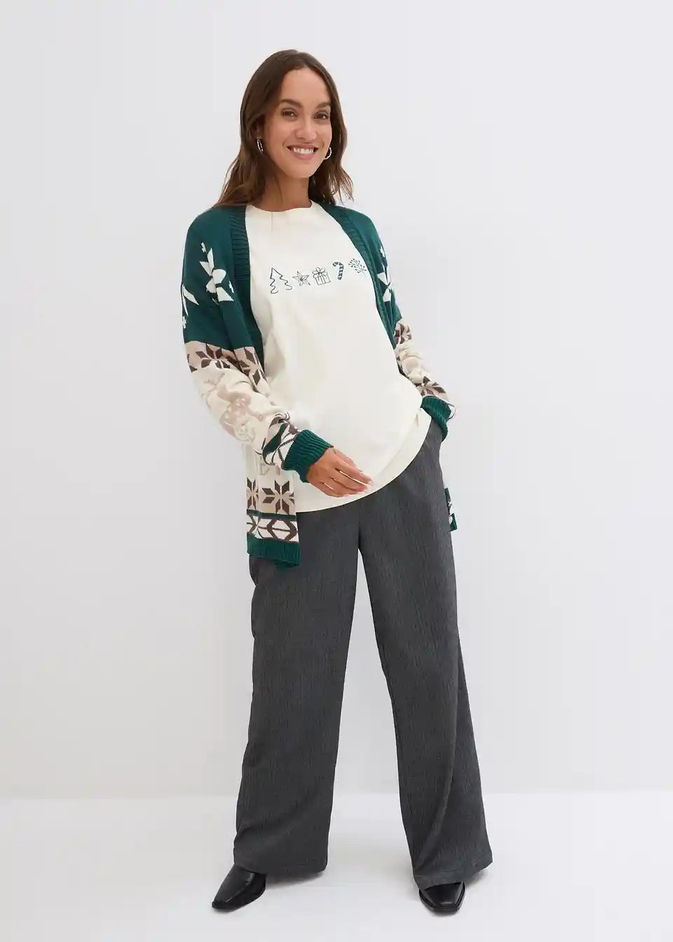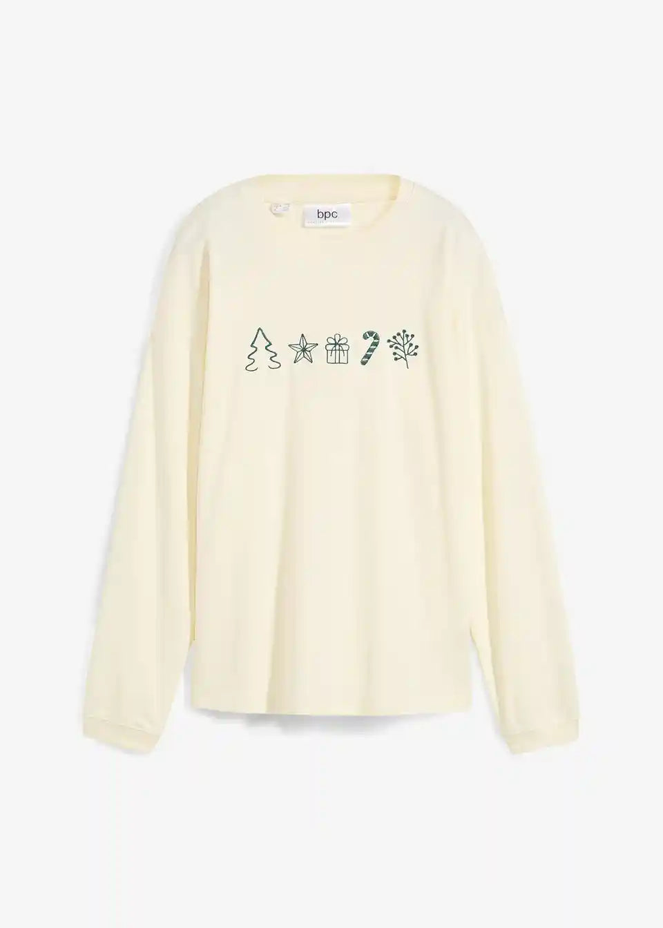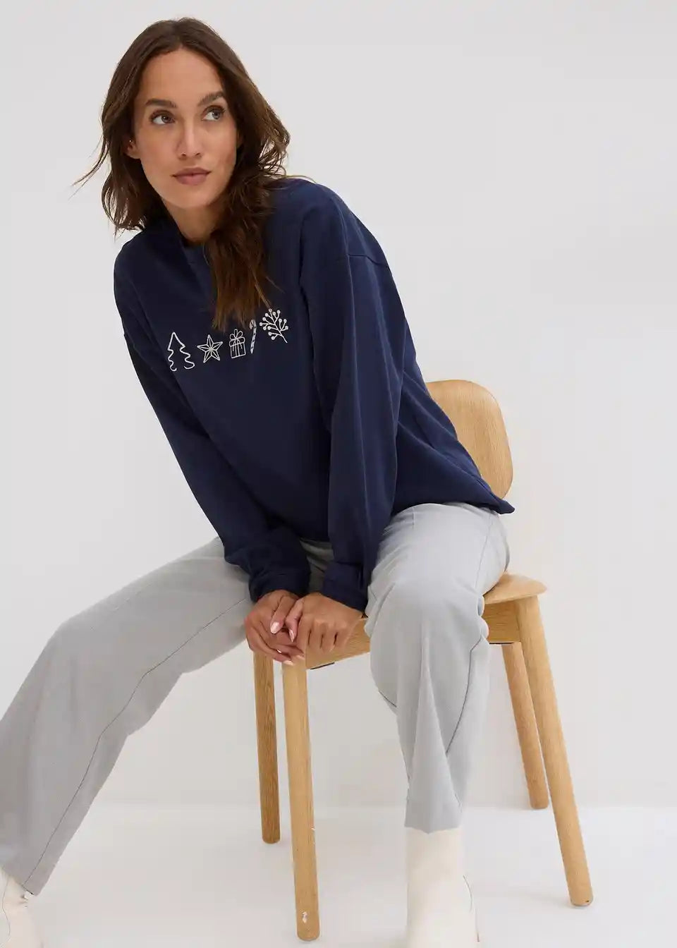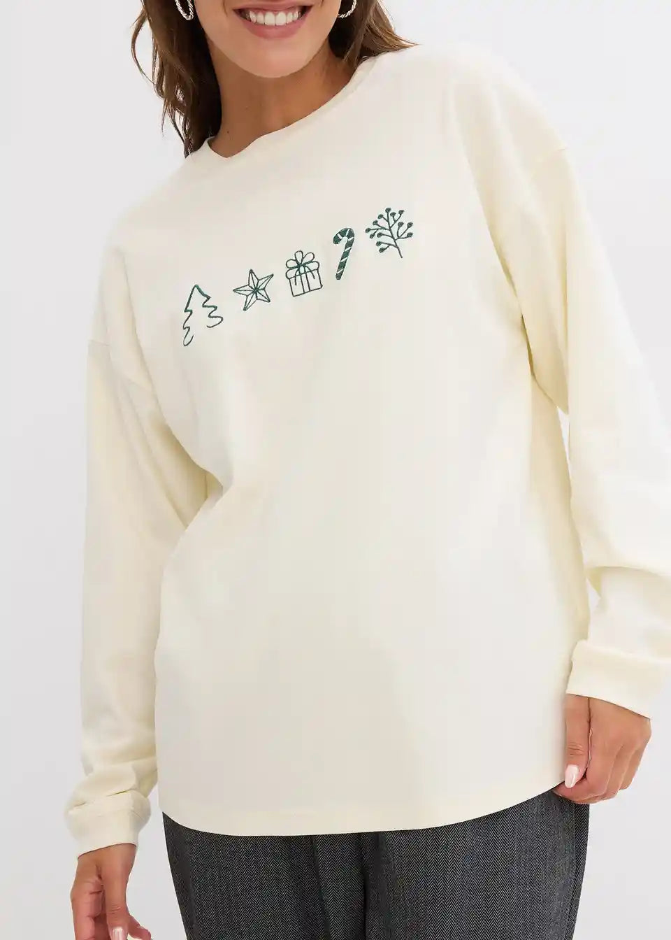 Priložnostno krojena dolgoročna majica z božičnim vezeninami