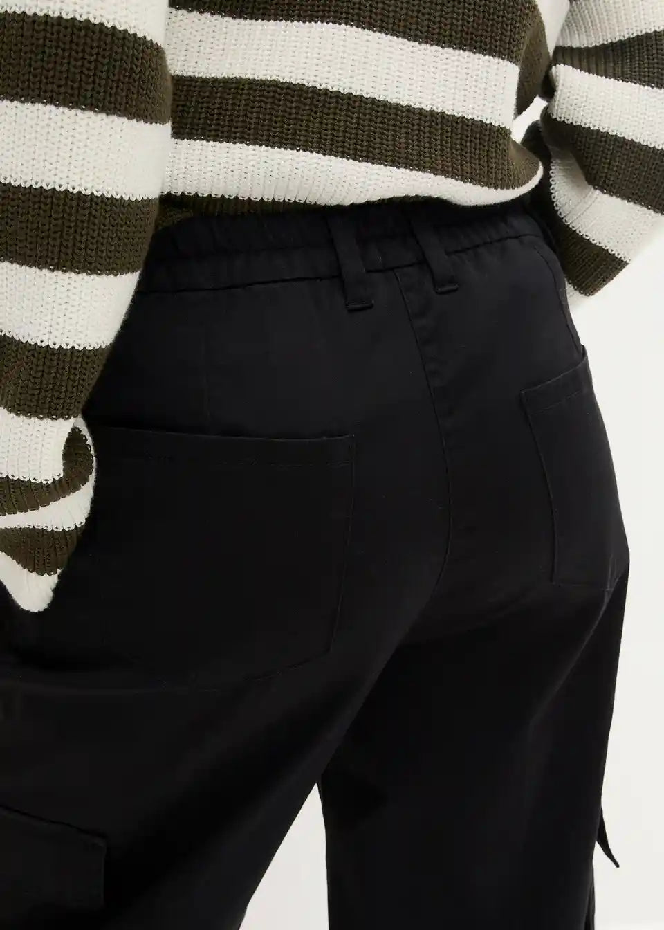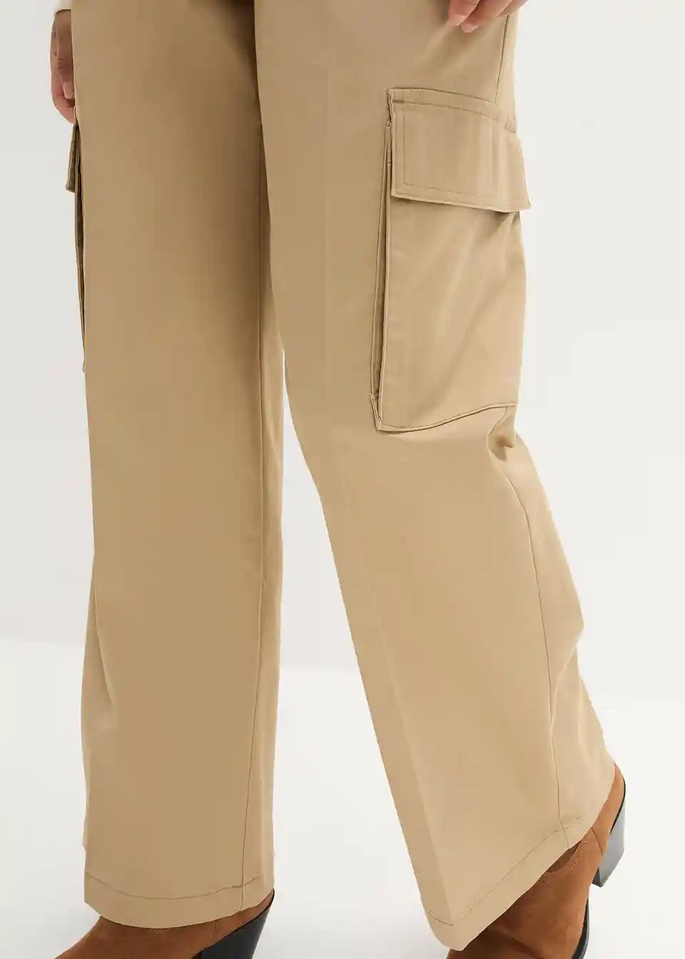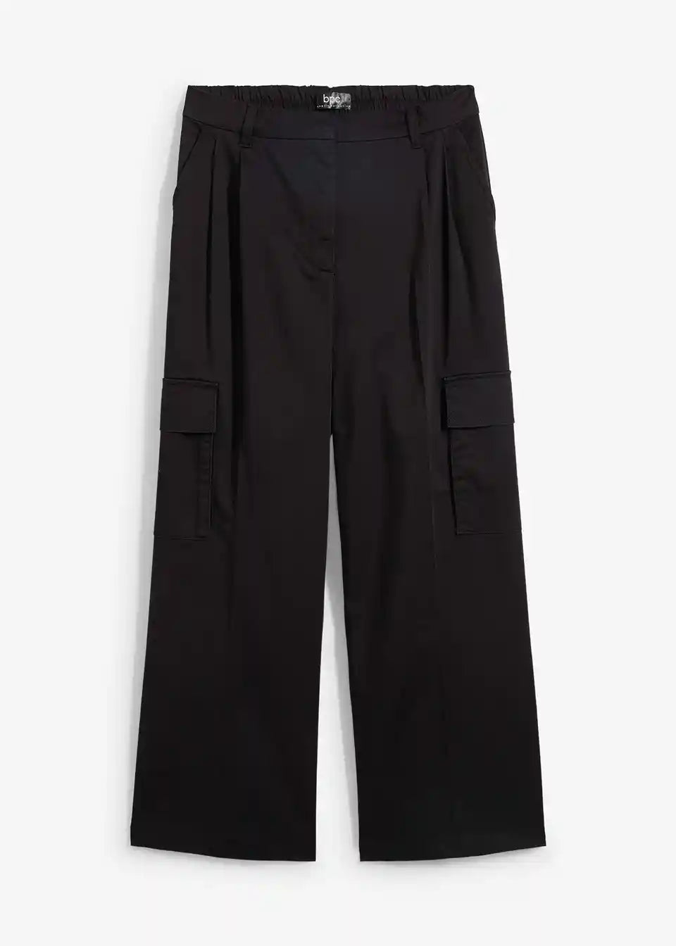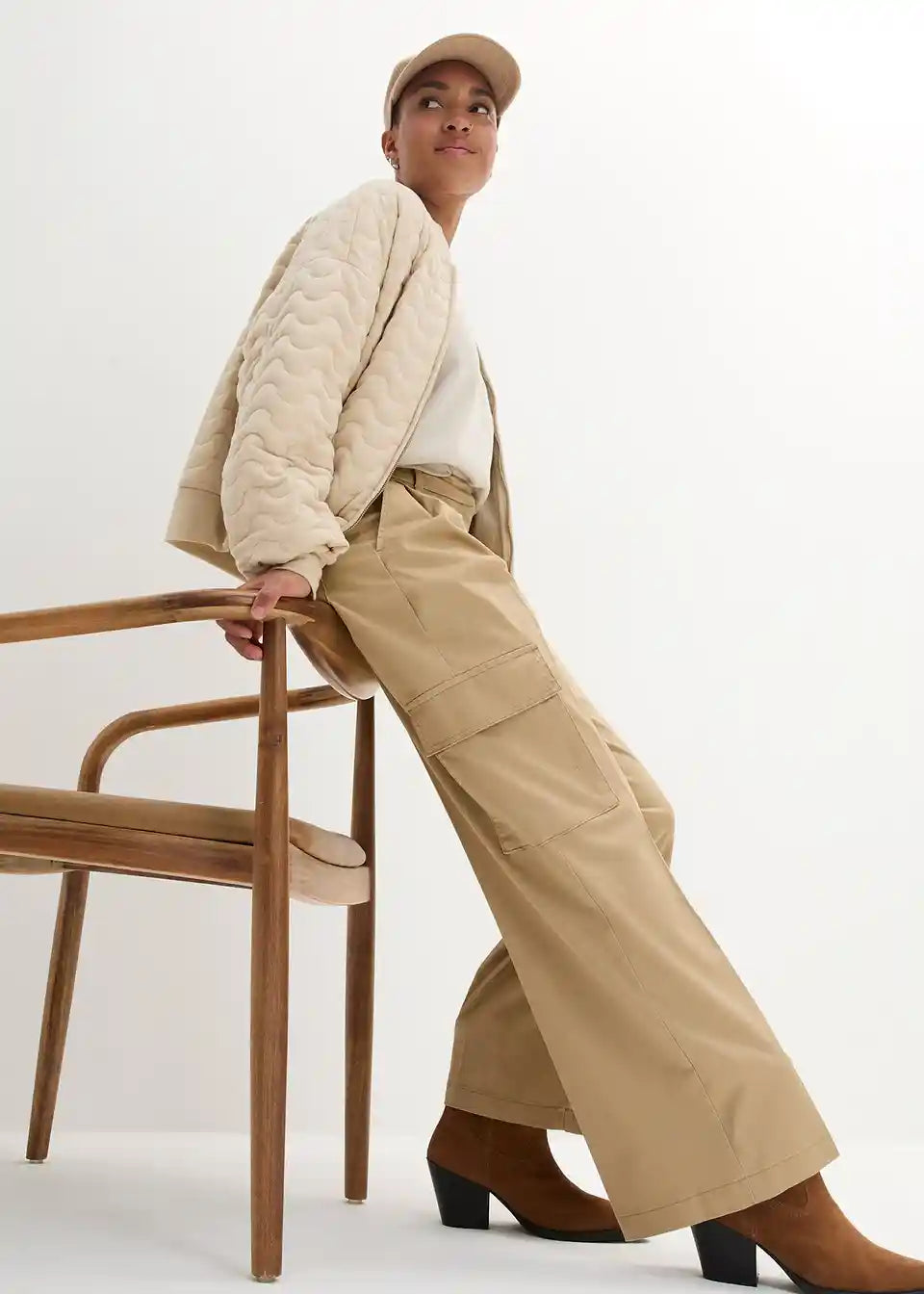 Hlače s cargo žepi, širokimi hlačnicami, gubo v pasu in udobnim pasom v 7/8-dolžini