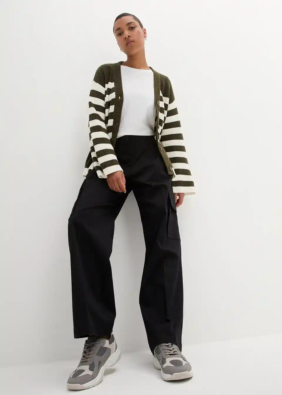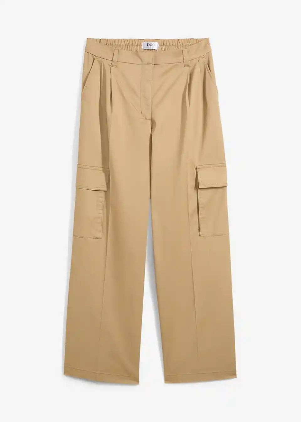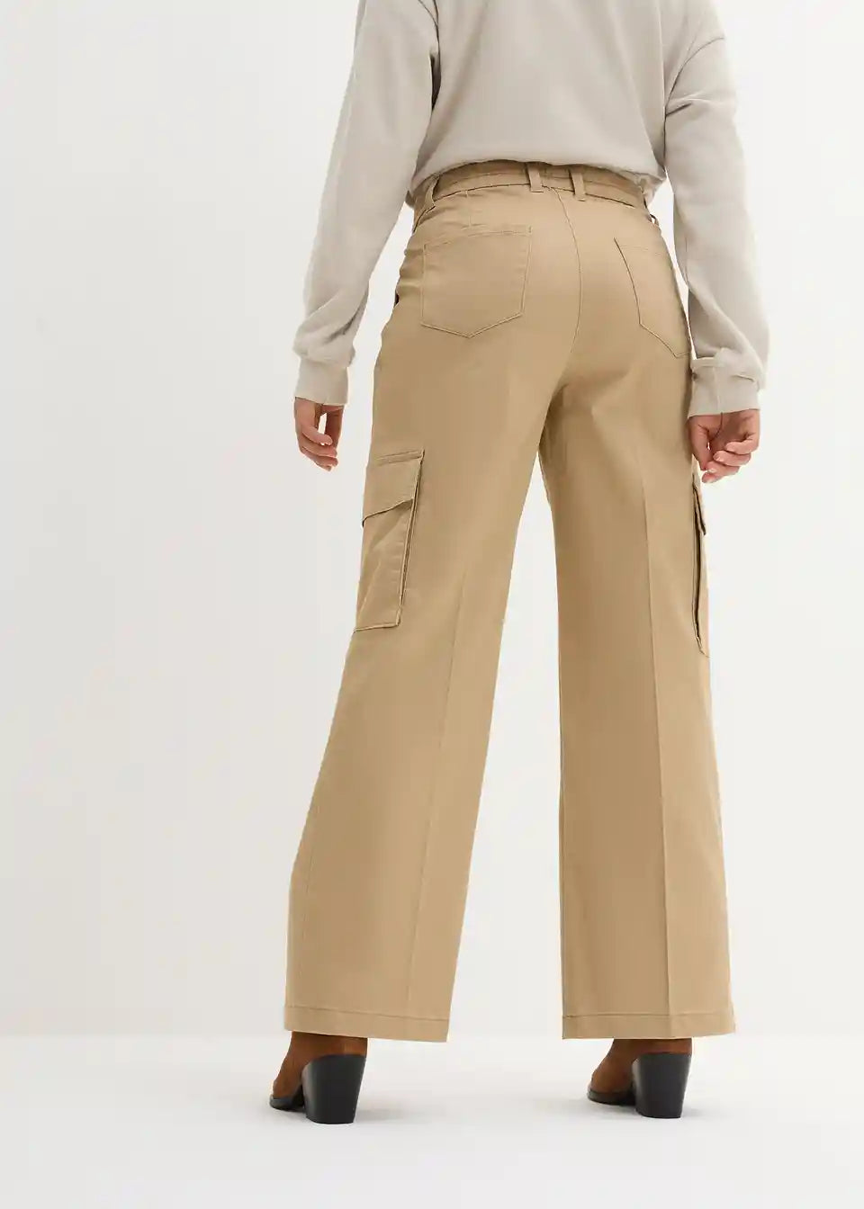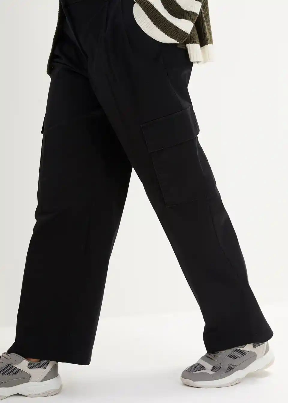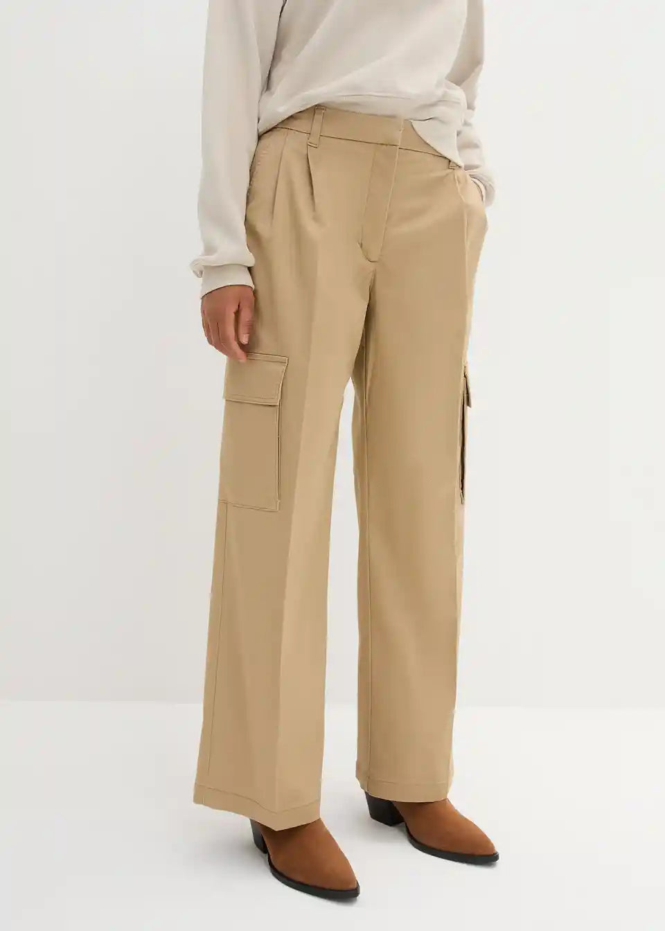 Hlače s cargo žepi, širokimi hlačnicami, gubo v pasu in udobnim pasom v 7/8-dolžini