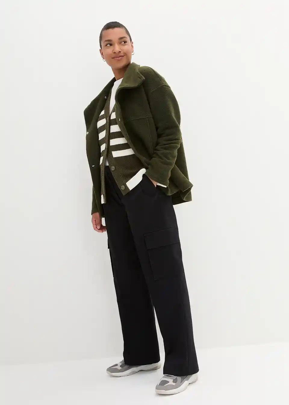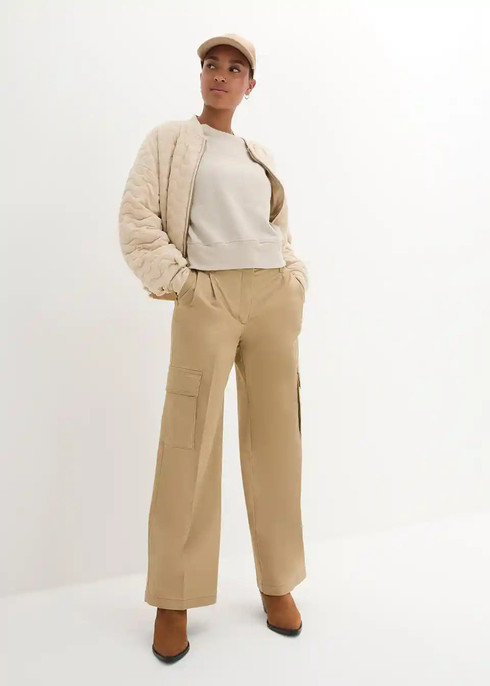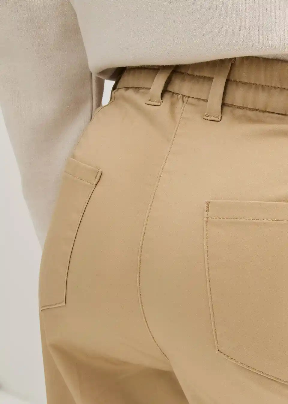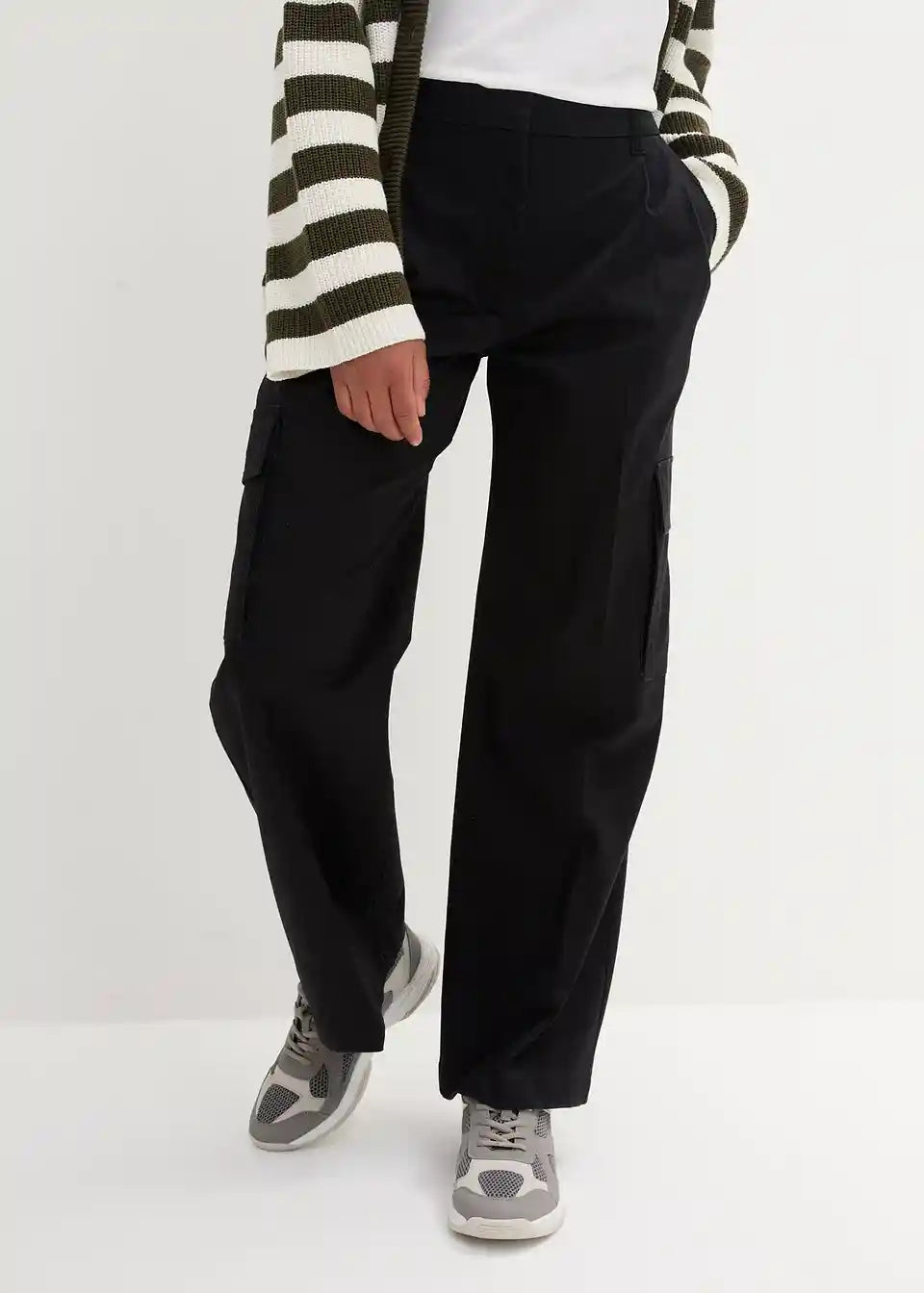 Hlače s cargo žepi, širokimi hlačnicami, gubo v pasu in udobnim pasom v 7/8-dolžini