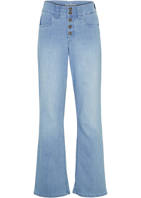 Ravne kavbojke z visokim pasom in stretch materialom