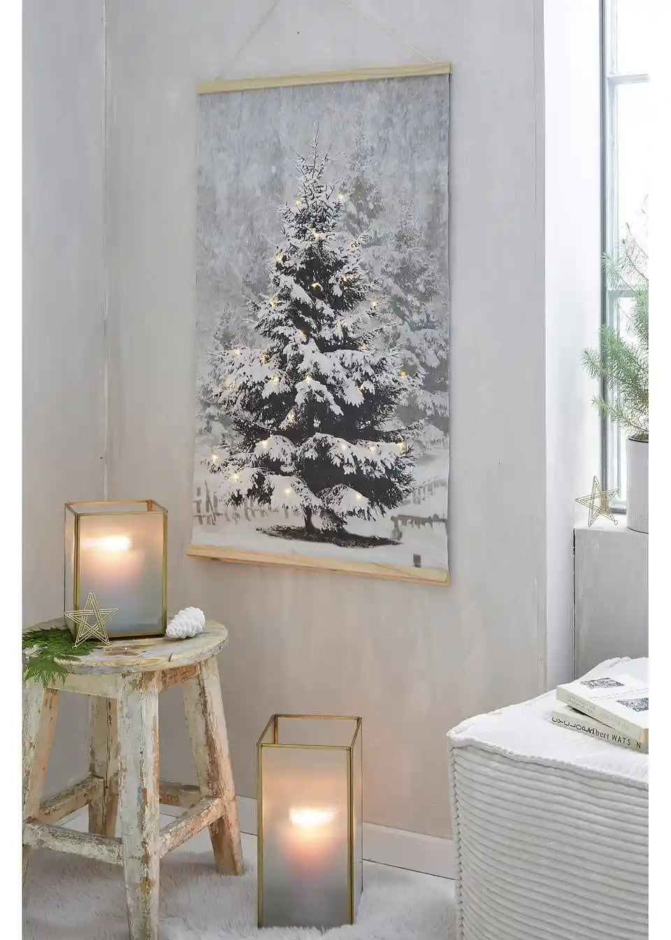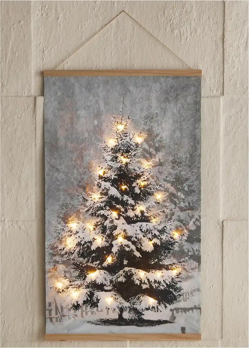 Osvetljena božična smreka za obešanje na steno ali vrata. LED diode ustvarjajo toplo in prijetno vzdušje.