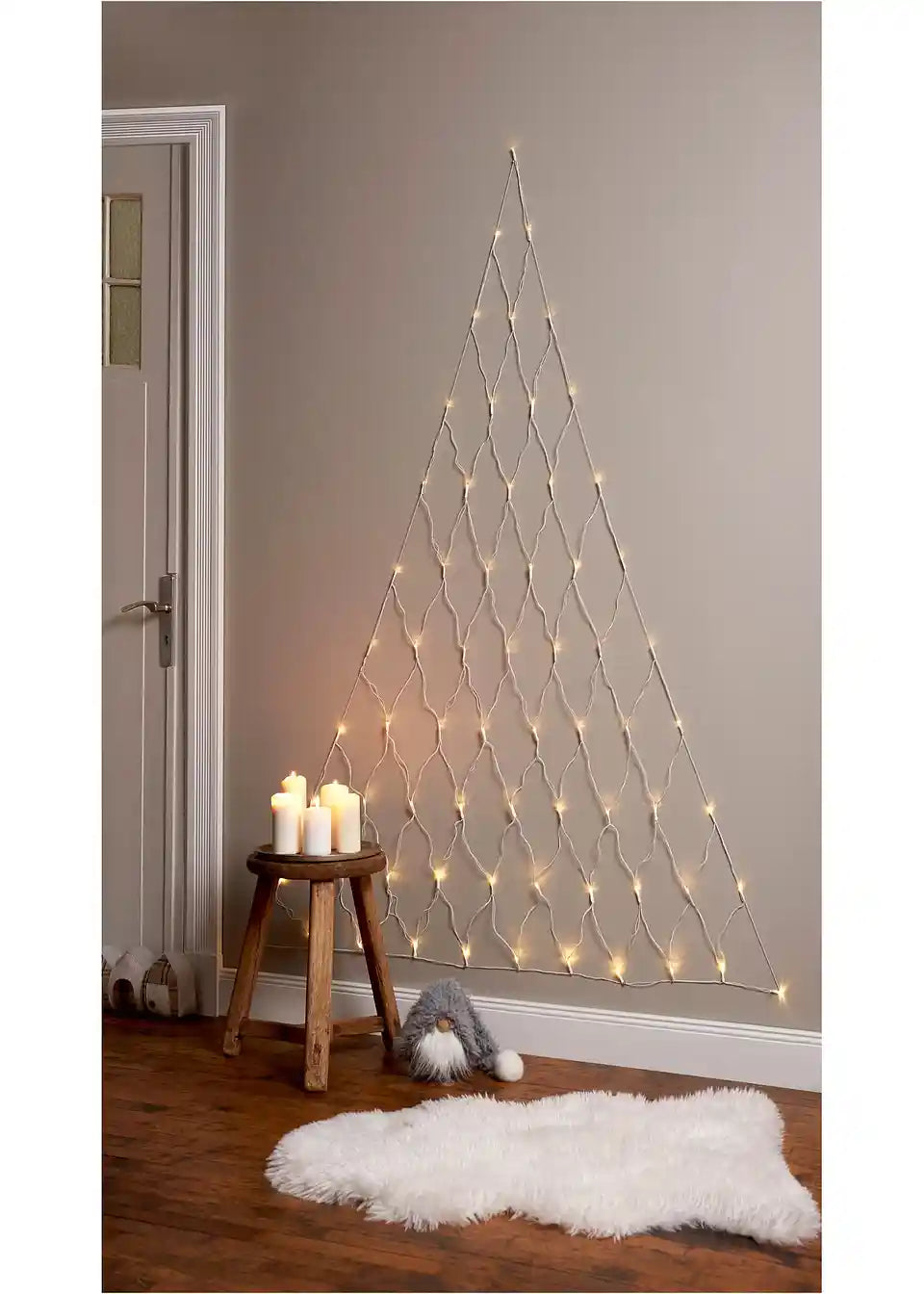 Vpadljiva LED-stenska in vratna dekoracija v mreži božičnega drevesca