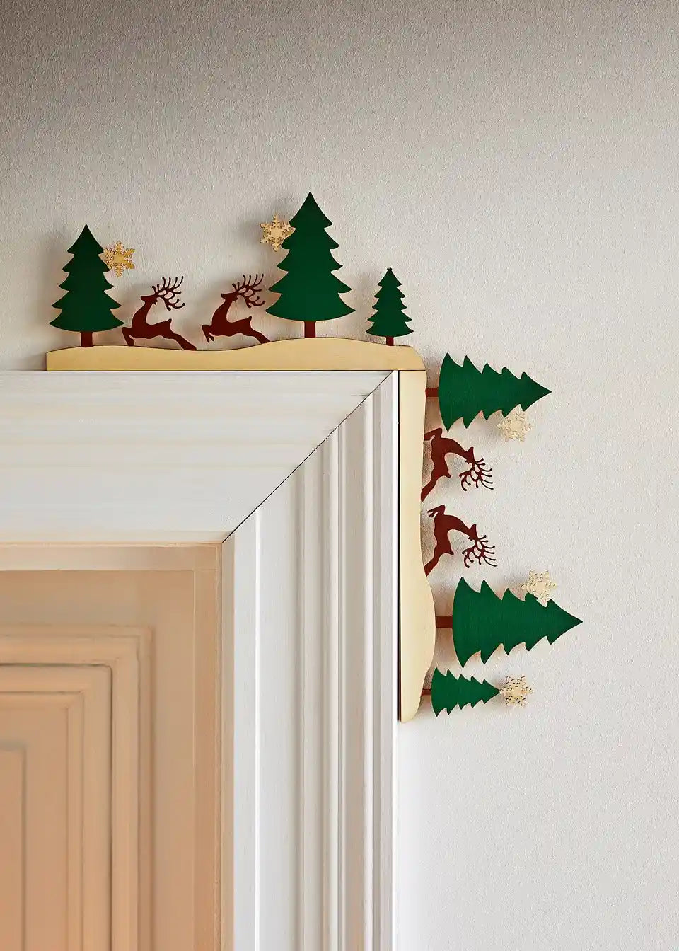 Prinesi zimsko čarobnost v svoj dom! Naša okrasitev za podboj vrat z veselimi drevesi in severnimi jeleni prinaša praznično vzdušje v vsak prostor. Popolna za podboje vrat, pa tudi za komode ali odlagalne omarice. Naj te očarajo božični motivi.