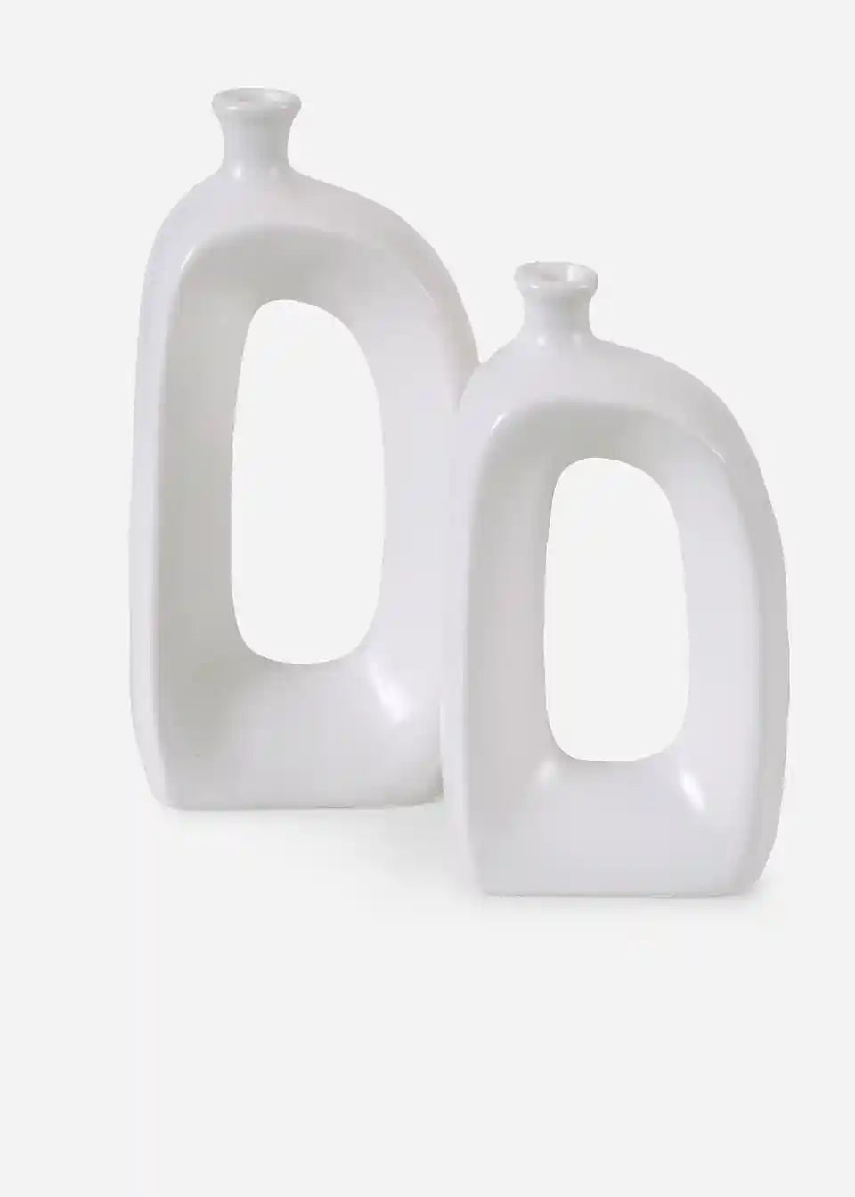 Te izjemne vaze v bleščeče beli barvi navdušijo s svojo moderno obliko in skulpturalnim značajem. Odprt dizajn in čiste linije jih naredita za poseben poudarek prostora. Ne glede na to, ali izberete posamezne rože, suho cvetje ali jih pustite brez dekoracije - te vaze so stilska izjava in prinesejo moderen pridih v vsak prostor.
