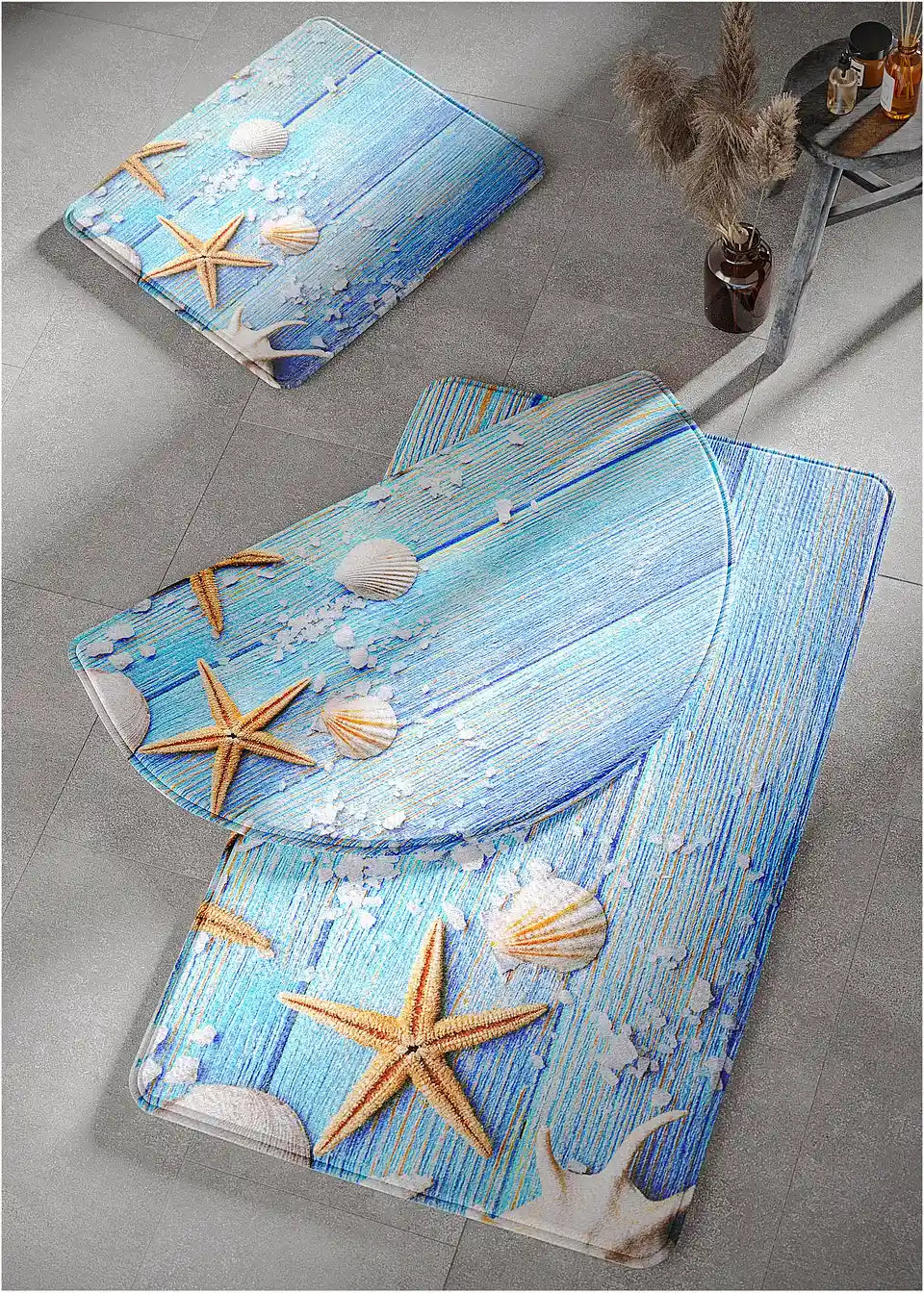 Z motivom školjk in morskih zvezd ustvari čudovito morsko vzdušje. Poleg tega barve dodajo prijetne poudarke in naredijo preprogo privlačno za oči v kopalnici. Po potrebi se lahko opere pri 40 °C. Je izjemno mehka in napolnjena z Memory peno. Material je hitro sušeč in posebej vpojen. Zaradi nedrseče prevleke preproga ostane na mestu. Uporablja se lahko tudi na tleh z talnim ogrevanjem. Vizualno in funkcionalno prepričljiva: kopalniška preproga Palermo.