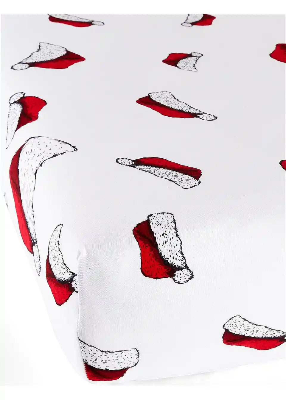 Za vzdrževanje enostavna rjuha iz jerseyja s potiskanimi božičnimi kapami.