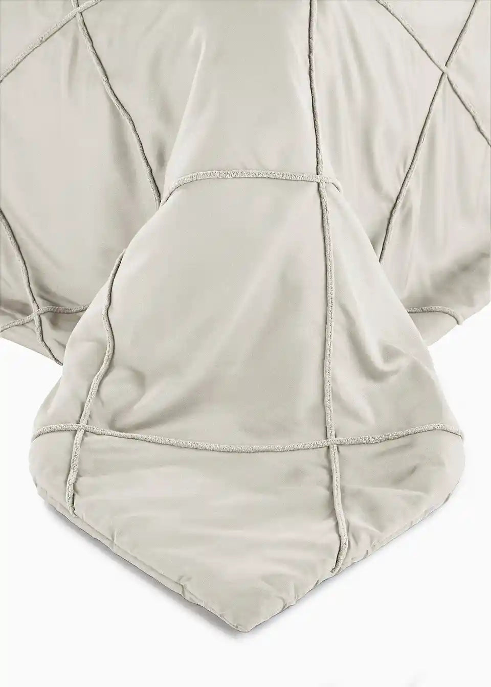 Ta prešita odeja z nežnim dizajnom pravokotnikov prinaša harmonijo in toplino v vaš dom. Narejena je iz trpežnega in hkrati enostavnega za vzdrževanje materiala. Na voljo je v različnih velikostih, prav tako pa so na voljo ustrezne prevleke za blazine v kompletu po 2 kosa pod vel. 7 & 8.