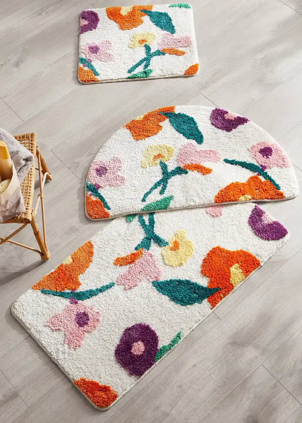 Vozlana preproga za kopalnico s pisanim cvetličnim vzorcem