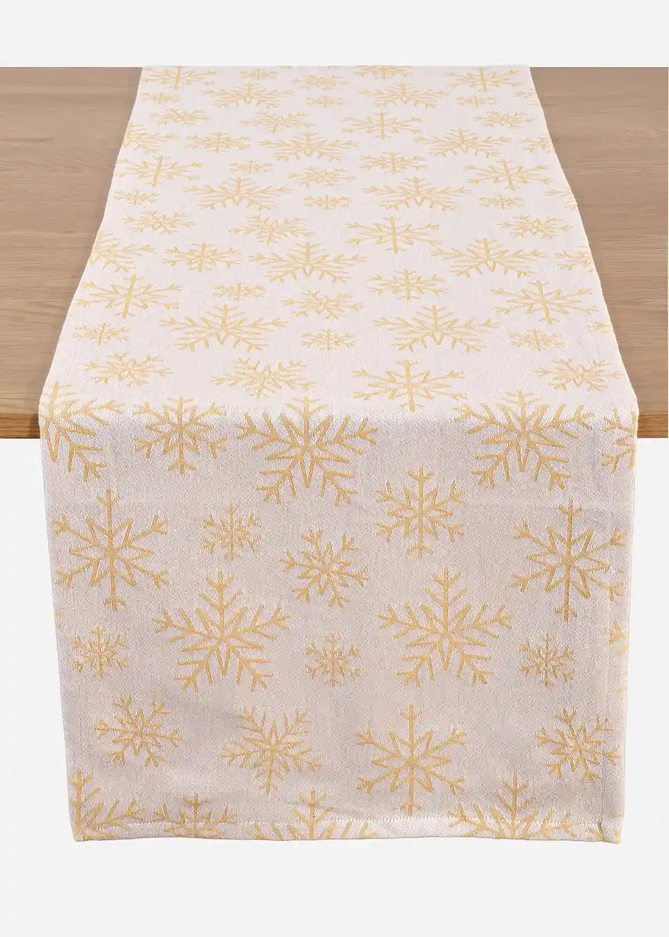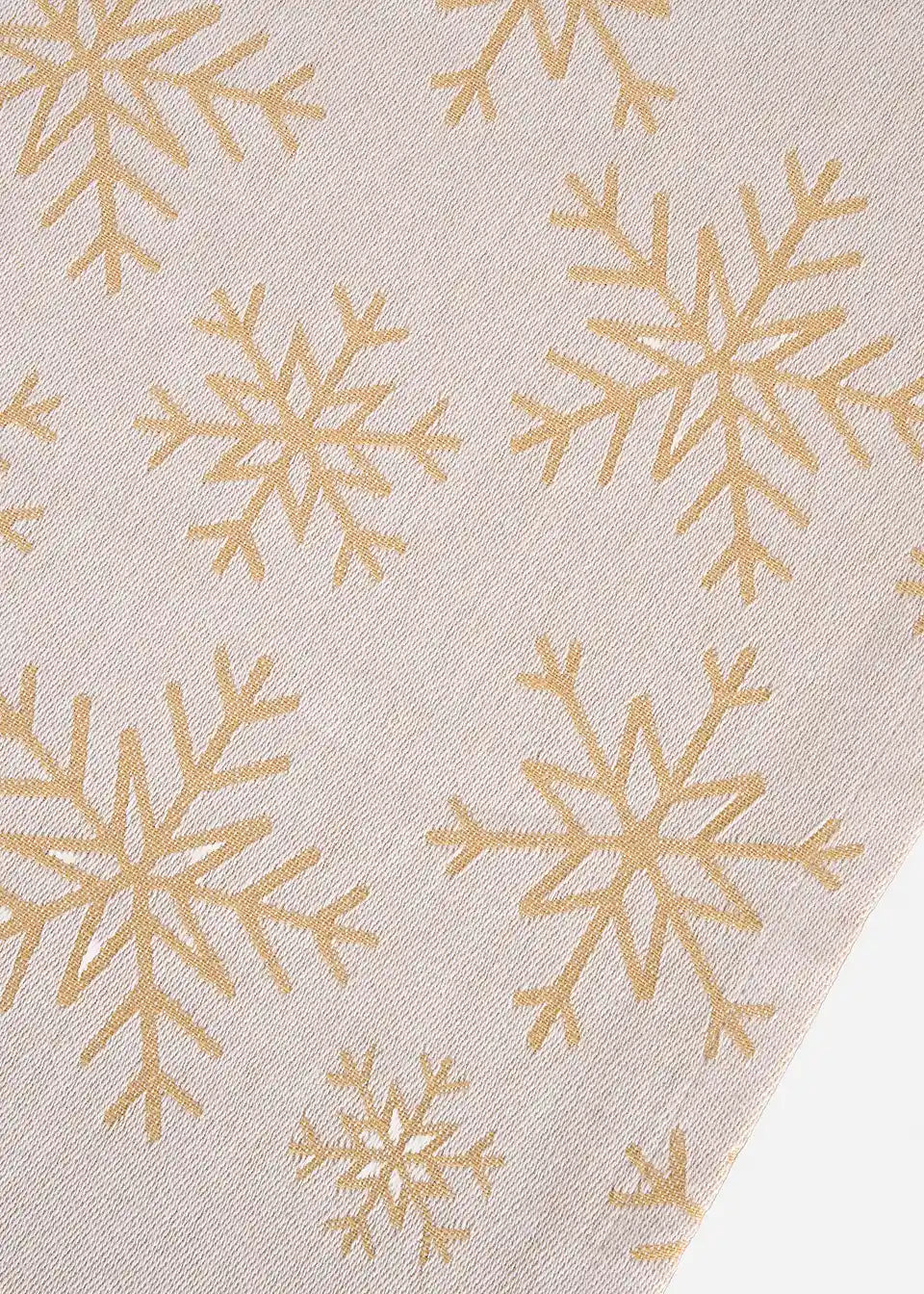 Vnesite praznično eleganco na vašo mizo z našim žakard tekačem v krem barvi iz visokokakovostnega organskega bombaža, okrašenim z očarljivimi zimskimi snežinkami. Ta tekač združuje stilsko oblikovanje z okolju prijaznimi materiali in je popolna izbira za vaše zimske praznike.