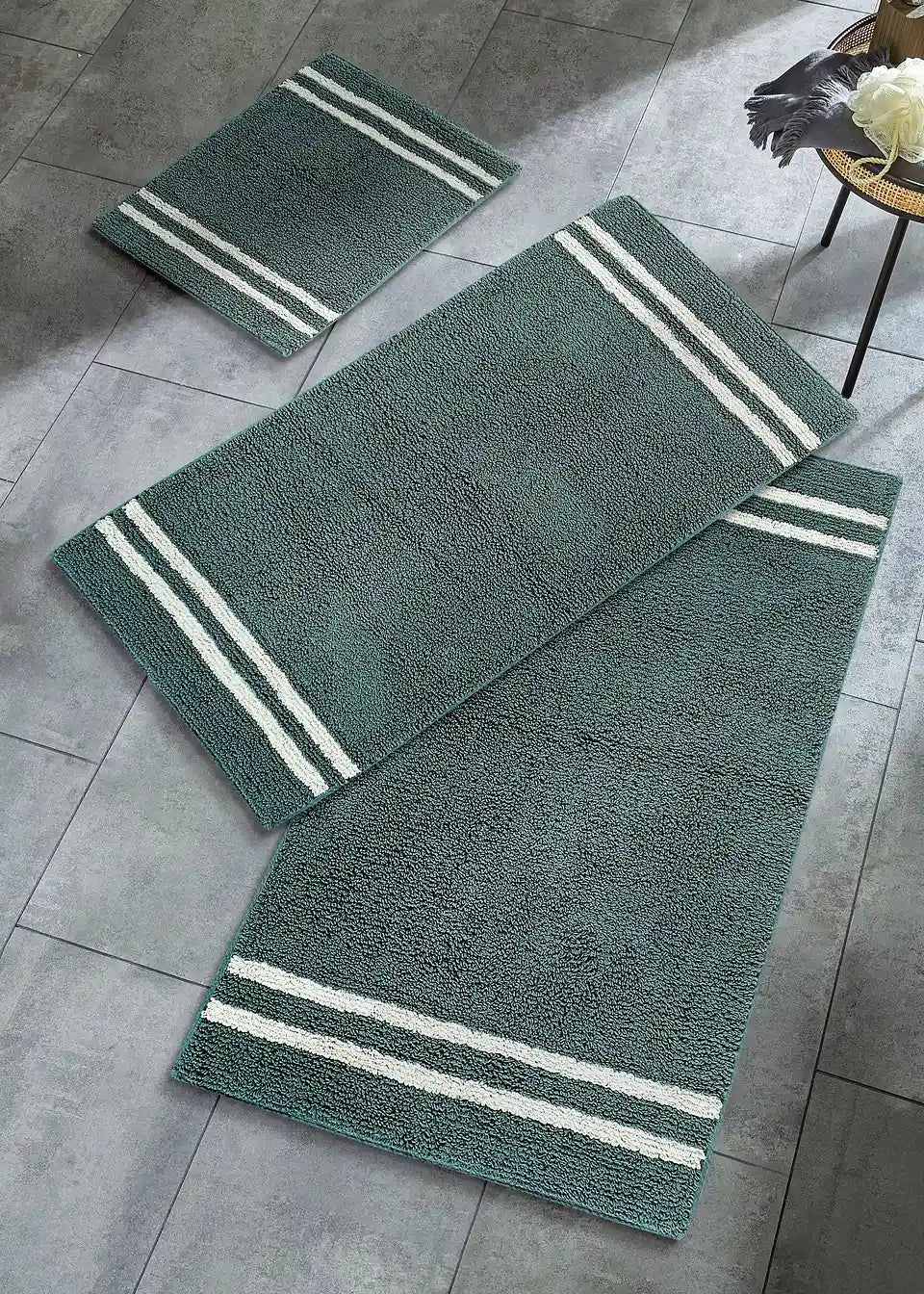 Vozlana preproga za kopalnico. Iz pralnega materiala, ki se pere pri 30°C s protizdrsno spodnjo stranjo. Tudi za talno ogrevanje.