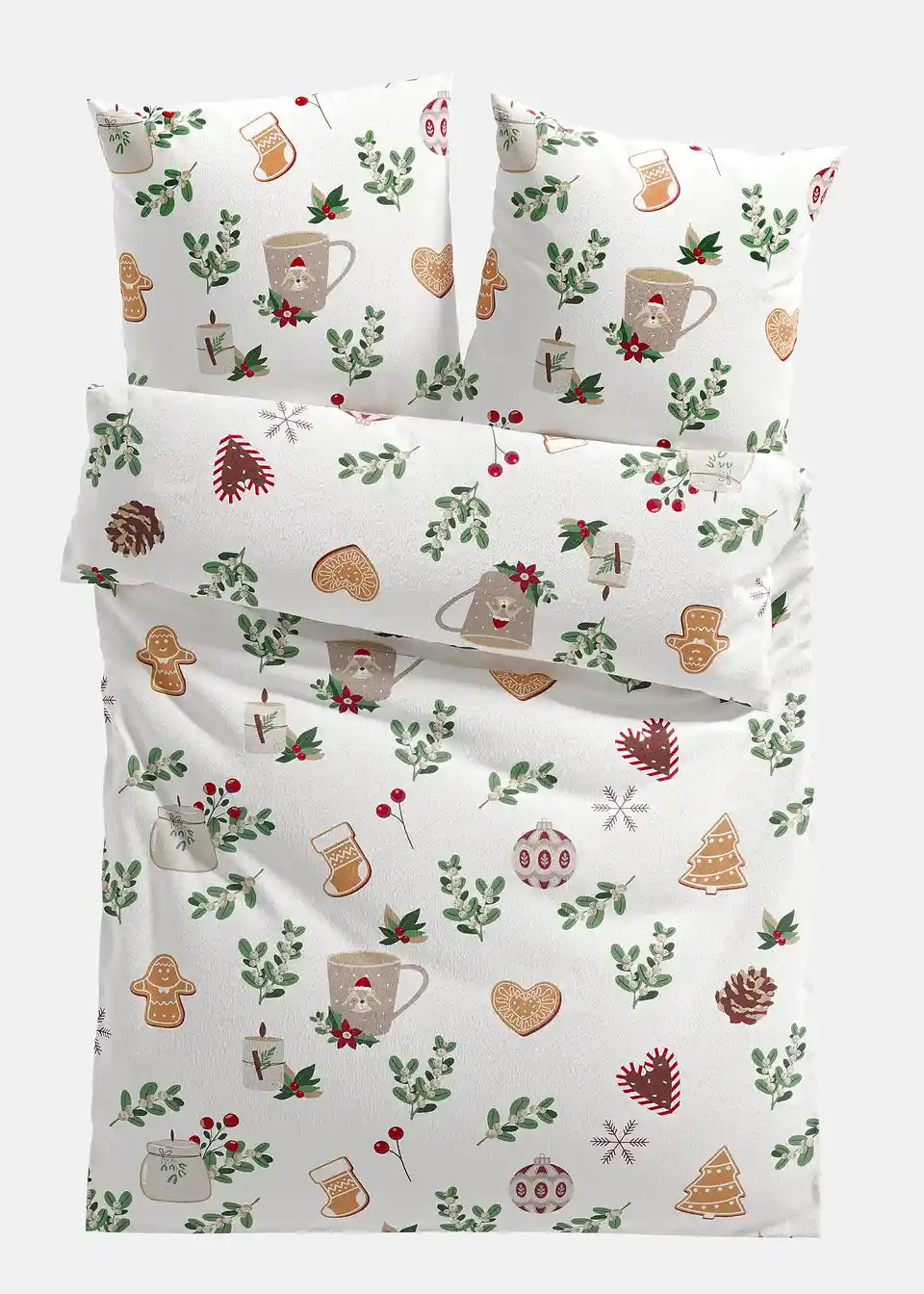 Posteljnina s prazničnim božičnim pecivom za udobno vzdušje