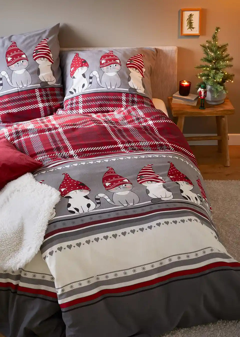 Posteljnina z mucki v božičnih kapah
