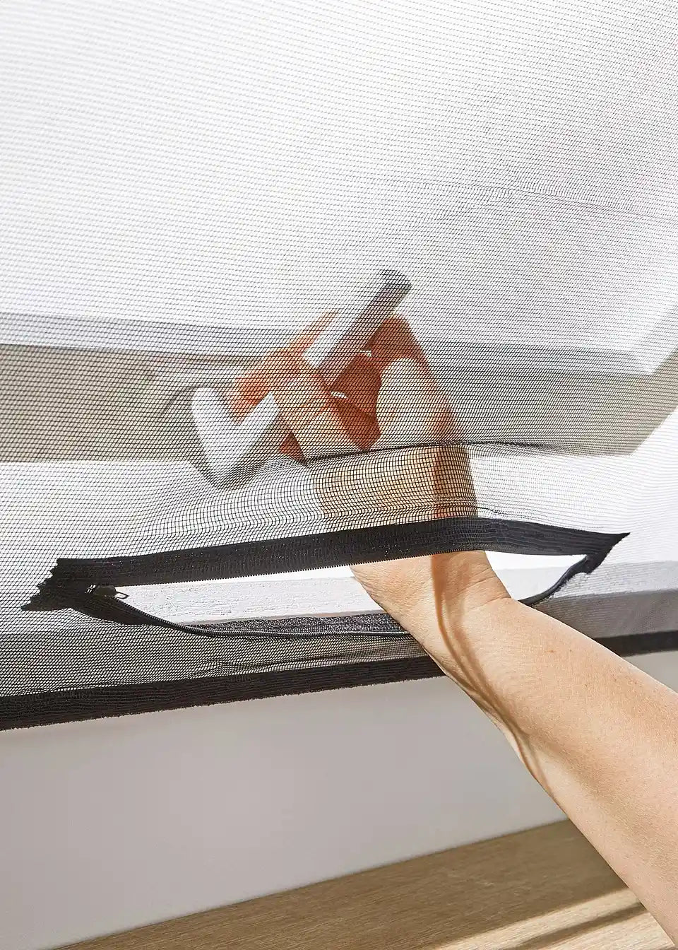 Praktična zaščita proti insektom za tvoje strešno okno. Mreža proti insektom se pritrdi neposredno na okvir okna s samolepilnim ježkom. Ima prehod, ki omogoča enostavno odpiranje ali zapiranje okna. Dimenzije so približno 150 cm višine in 130 cm širine. Mrežo lahko po želji prilagodiš z rezanjem.
