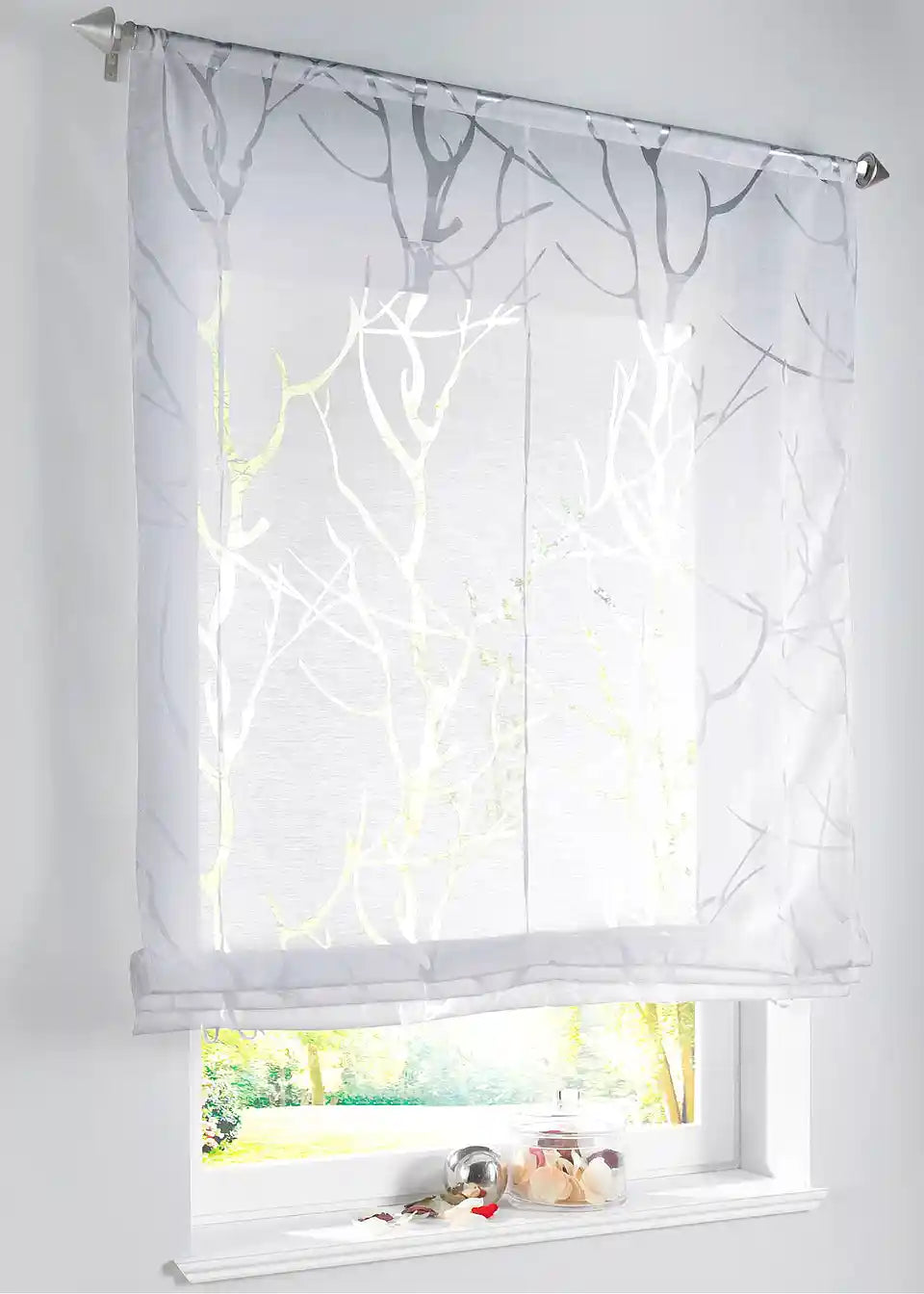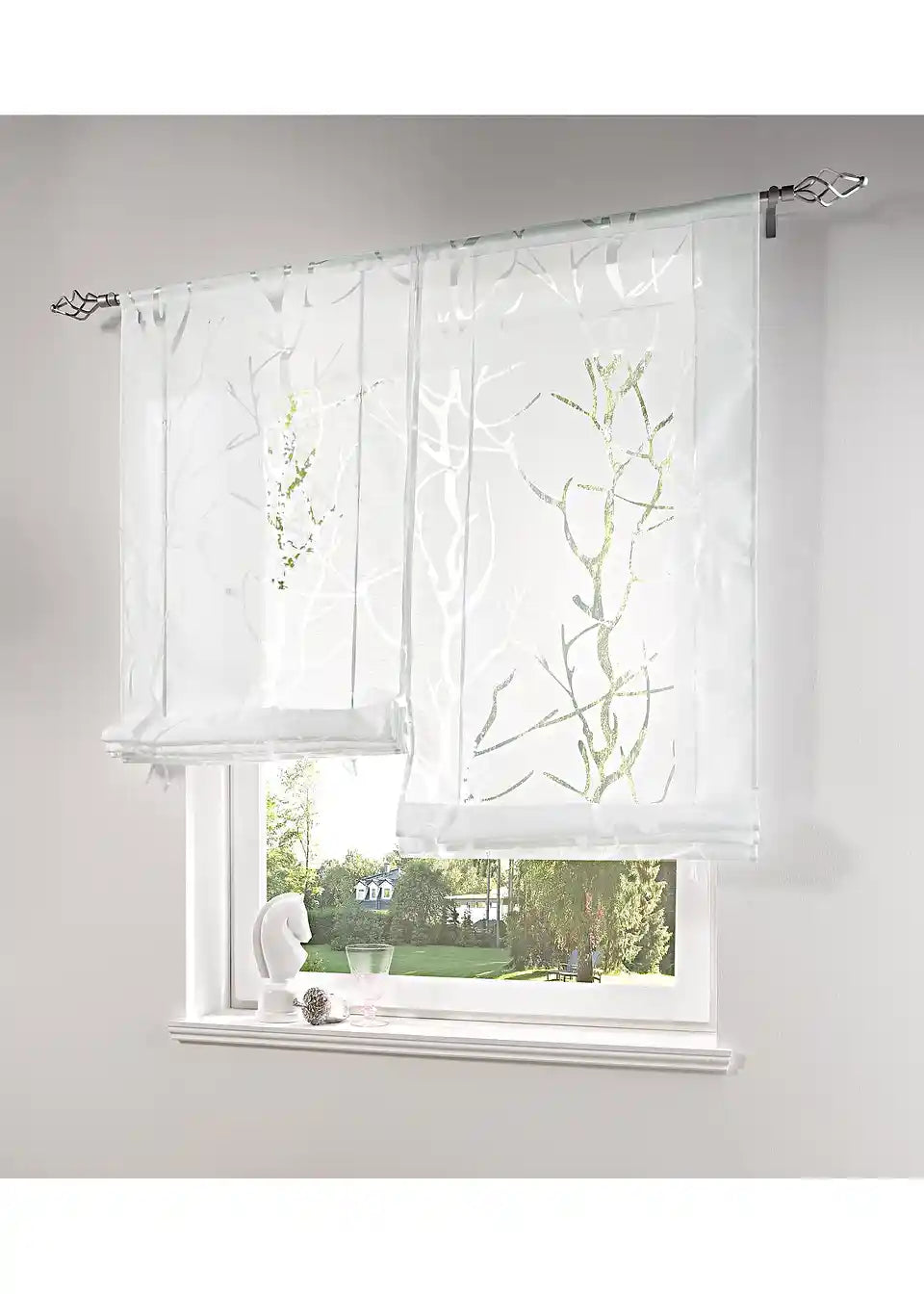 Elegantni bandažni rolo iz polprosojne mešanice materialov, vzorec je izdelan s skrbnim postopkom izžiga, preprosto ga nagubate in pritrdite na želeno višino z vstavljenimi trakovi - končano!