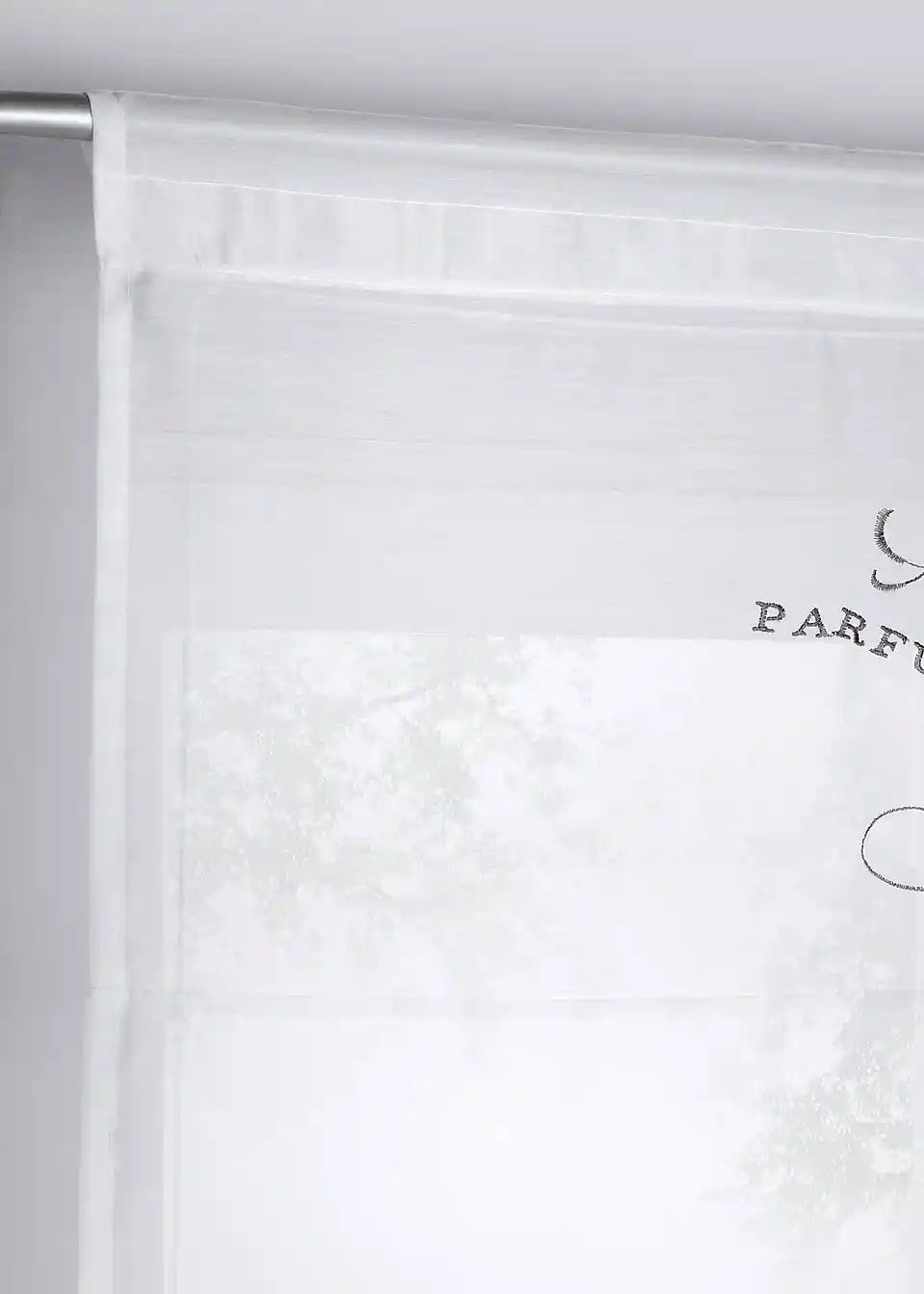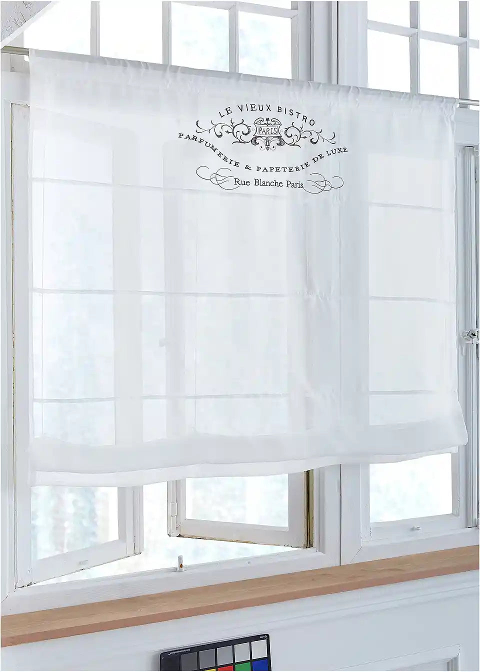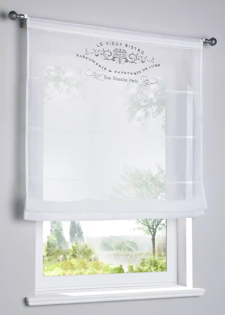 Rolo zavesa se zgoraj ponaša z lepo izvezenim napisom v francoskem jeziku. Zaradi tega preprostega videza je združljiva z mnogimi obstoječimi slogi notranje opreme. V preprosti beli barvi krasil bo tvoja okna na poseben način.