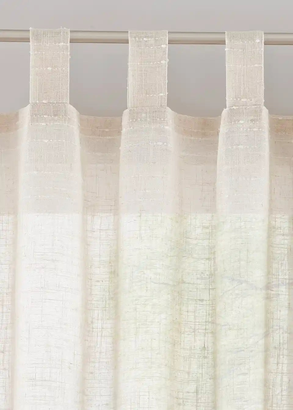 Odličen naravni videz: naša zavesa očara s svojim naravnim lanenim videzom. Svetlejša zadebeljenja poudarjajo čudovito strukturo. Polprosojnost lepo sodeluje z vpadanjem svetlobe, hkrati pa ščiti pred radovednimi pogledi. Naša zavesa, ki je enostavna za vzdrževanje, se odlično poda k različnim konceptom opremljanja in te bo navdušila.